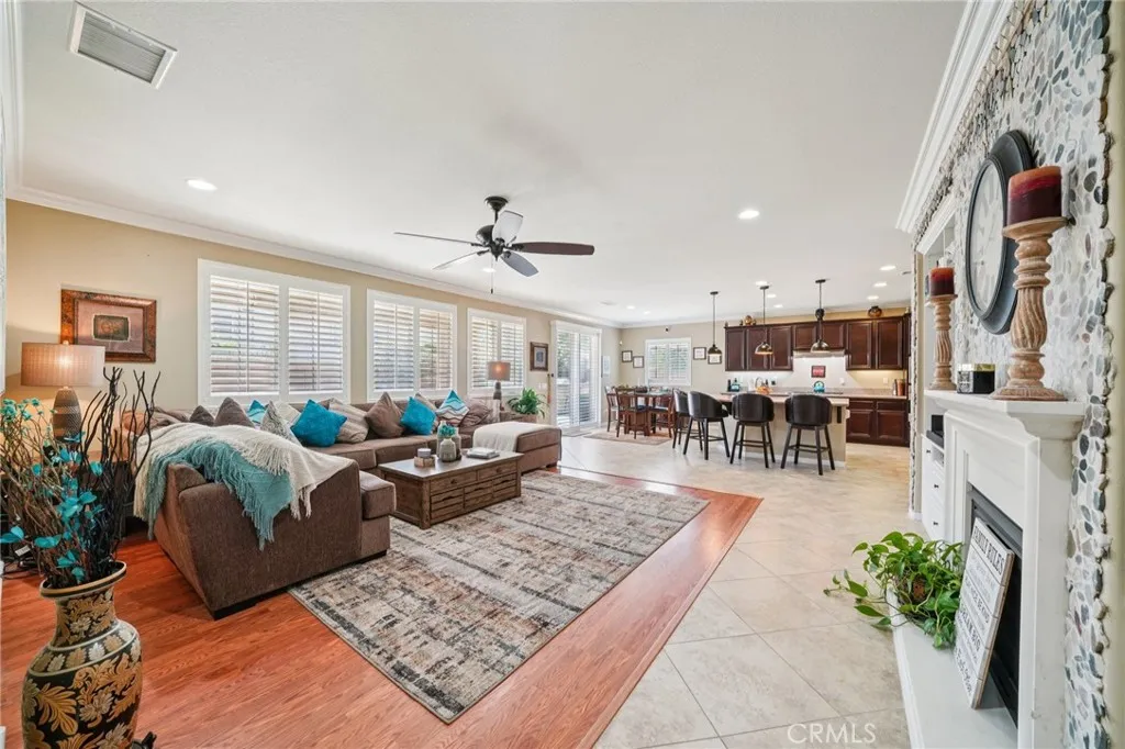 Welcome to this stunning 4-bedroom, 4.5-bathroom two-story home located in the prestigious guard-gated community of The Retreat. Designed with comfort and elegance in mind, this home features an open and spacious floor plan with high ceilings, recessed lighting, crown molding, plantation shutters, and a neutral paint scheme throughout. Upon entry, you are greeted by a formal living room and formal dining room, perfect for hosting gatherings. The heart of the home is the expansive great room that flows seamlessly into the gourmet kitchen, which is equipped with a large center island, dark wood cabinetry, ample counter space, and plenty of storage. The thoughtfully designed layout includes one bedroom with a full bathroom on the main floor, along with a convenient half bathroom for guests. Upstairs, youll find the remaining bedrooms including the luxurious primary suite with retreat area as well as a spa-like ensuite bathroom featuring dual vanities, a soaking tub, and a separate shower. Two more bedrooms as well as a versatile bonus Loft space, and 2 additional bathrooms complete the 2nd floor. Also, step outside onto the large private balcony and enjoy peaceful mountain views. The backyard is designed for both relaxation and entertaining with a covered patio, concrete and grassy areas, and a built-in BBQ bar, creating the perfect outdoor living space! Also there is a 3-Car Garage and the refrigerator, mini fridge, washer, dryer, BBQ, security system, smart thermostat, smart doorbell, and smart lock are all included in the sale of the home! Residents of The Retreat enjoy res