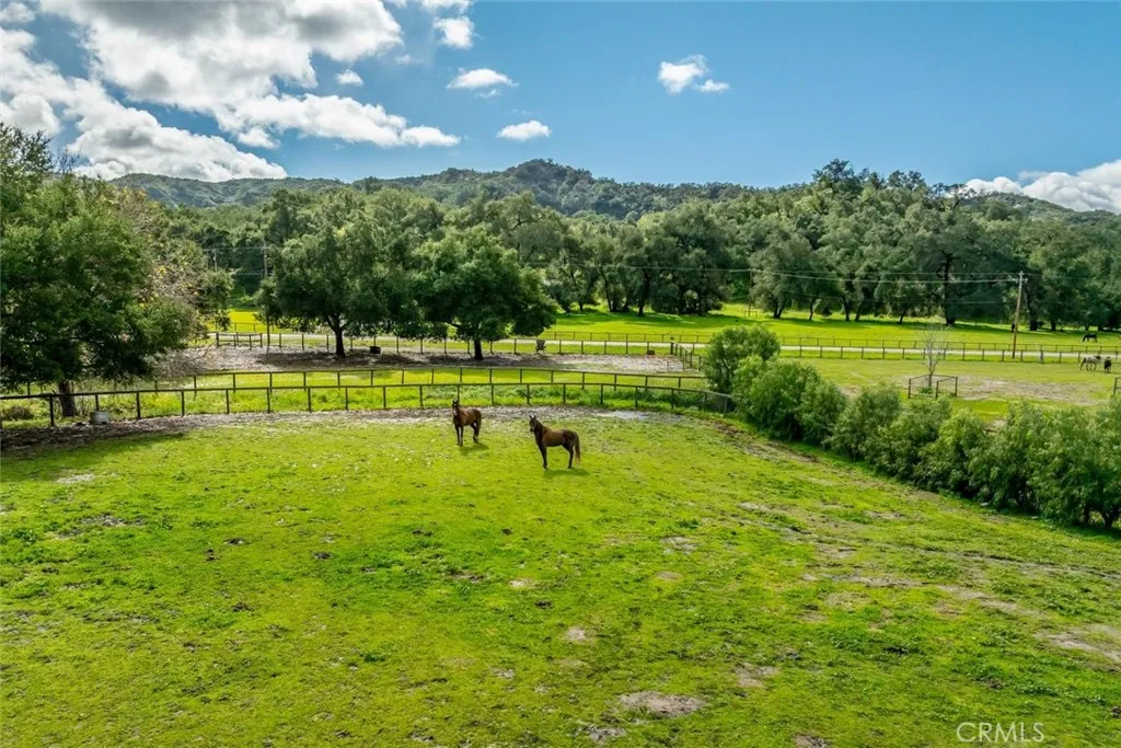 Extraordinary opportunity to own a Ranch in Ranchita Estates offering 53 acres, two residences, and premier equestrian amenities with direct access to private and public horse and hiking trailsaccessible directly from your own property. A rare blend of refined single-level living, multi generational living, functional ranch infrastructure, and breathtaking natural surroundings. The main 3/4 residence is thoughtfully designed on a single level with soaring ceilings, recessed lighting, tile and carpet flooring and functional floor plan. The private primary wing features expansive windows, two walk-in closets, carpet and laminate flooring, dual vanity areas, jetted soaking tub and walk-in shower. From most of the main living spaces, you can sit and enjoy peaceful views of horses grazing in the pastures and the rolling hills beyond. Living and family rooms showcase a fireplace, open-beam wood ceilings, custom built-ins, and sliders opening to a screened and covered patio ideal for alfresco dining. The backyard blends seamlessly into acres of open land, allowing you to ride or hike directly from your property into miles of scenic trails. The home also includes a formal dining area w/ built-ins, kitchen with tile countertops and floors, pantry, casual dining nook surrounded by windows and pasture views, two additional ensuite bedrooms with walk-in showers, a half bath, laundry room with abundant cabinetry and backyard access, and a three-car garage with built-in storage and utility sink. A charming guest house built in 2018 (unpermitted) offers approximately 1,300sq ft (not inclu