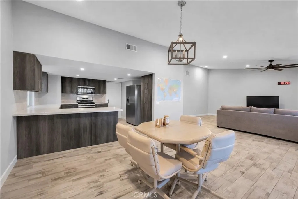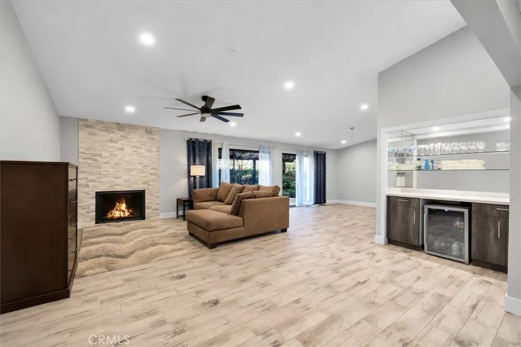 Golf Resort Style Living! Open Floor Plan! Beverage Center! Private Backyard Retreat with Pergola Covered Patio! This fully remodeled townhome for sale in Bermuda Dunes Country Club, located inside a gated golf course community with 24-hour security. This spacious townhome features an open-concept floor plan, vaulted ceilings, a large living and dining area, a built-in wet bar, and a gas fireplace with modern quartz detail. Ideal for buyers searching for a move-in ready desert home or country club living. The updated kitchen features a peninsula layout that opens directly to the main living space and includes quartz countertops, a breakfast bar, and a dedicated dining area, ideal for everyday living and entertaining. Tile flooring runs throughout the home, which is a major advantage in a desert climate. Tile stays cooler underfoot during hot months, is highly durable, easy to maintain, and resists warping or wear from heat and sand. It is one of the most sought-after flooring options for desert homes because it helps keep interiors comfortable while holding up long term. Additional interior upgrades include soft gray paint, newer baseboards, updated ceiling texture, recessed lighting, and modern ceiling fans for improved airflow and energy efficiency. The remodel was completed on 5/16/2022, making this a recent and well-executed update that still feels fresh and current. This home offers two primary suites, each with remodeled bathrooms, glass shower enclosures, natural stone flooring, ceramic tile walls, and double vanities. A powder bathroom is conveniently located near t