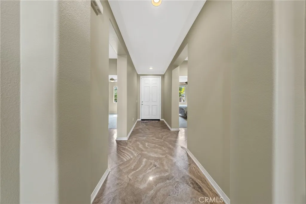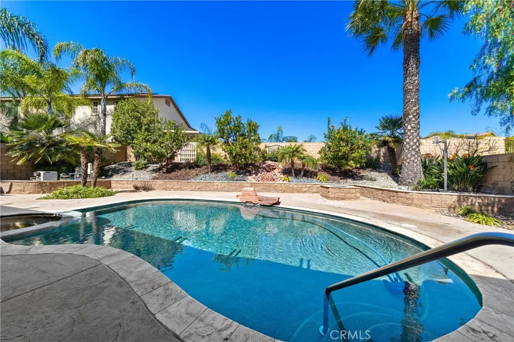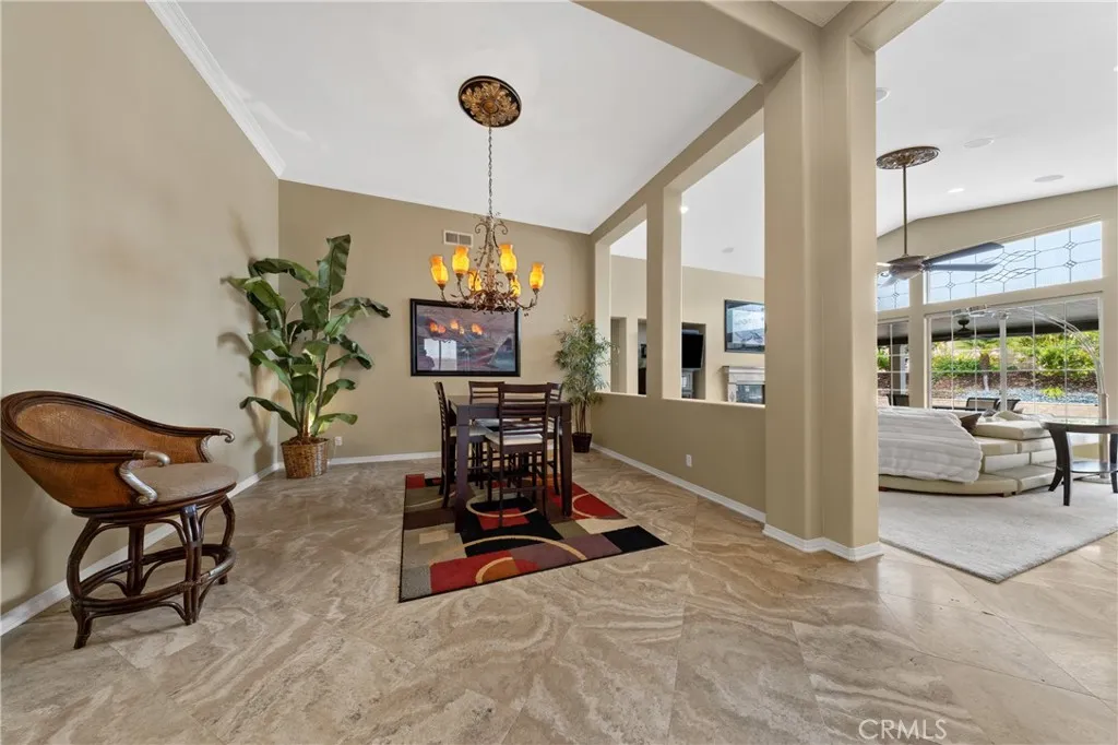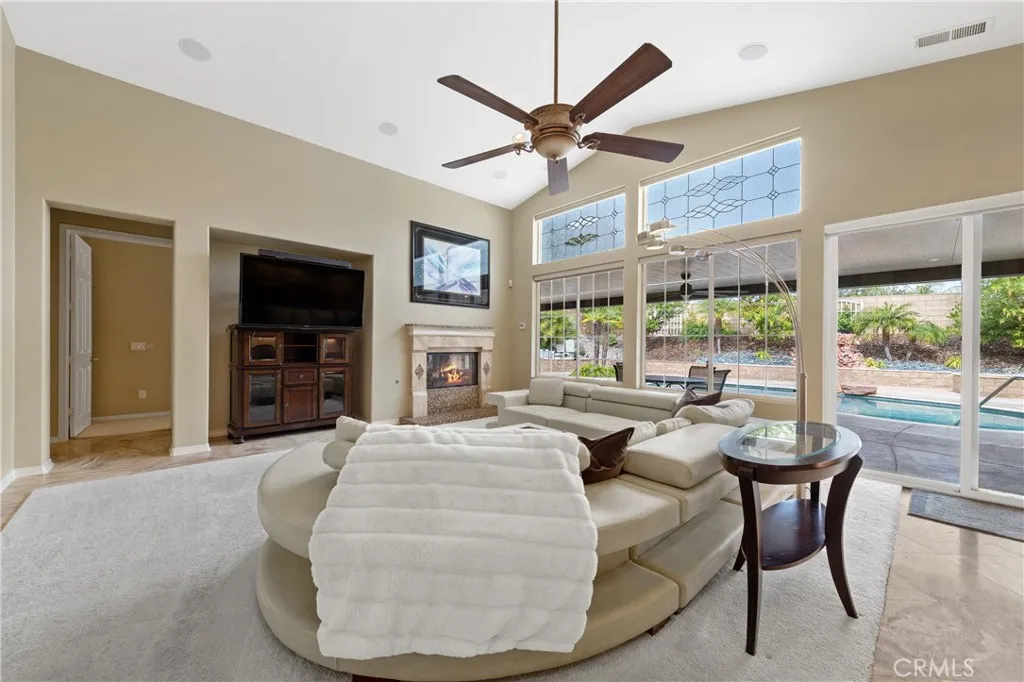 Welcome To 31686 Leather Wood Drive In Winchester A Beautifully Upgraded Pool Home Offering 3 Bedrooms, 3 Bathrooms, Plus A Dedicated Office With Approximately 2,356 Sq Ft Of Living Space On A Spacious 9,147 Sq Ft Lot. This Light And Bright Home Showcases Vaulted Ceilings, Travertine Flooring Laid On The Diagonal With Minimal Grout Lines, Recessed Lighting, Crown Molding, And Large Picture Windows That Fill The Interior With Natural Light. The Open Concept Great Room Features A Custom Gas Log Fireplace, Surround Sound Speakers, And Electronic Blinds, Creating A Comfortable Space For Everyday Living And Entertaining. The Well Appointed Kitchen Offers Granite Countertops, A Large Center Island With Double Sink, Chestnut Cabinetry Including Glass Display Doors, A Custom Diagonal Tile Backsplash, Under Cabinet Lighting, Walk-In Pantry, And Stainless Steel Appliances Including A Four Burner Gas Range With Vent Hood, Oven, And Microwave. The Private Primary Suite Is Located At The Back Of The Home And Features Crown Molding, Sliding Glass Door Access To The Spa, A Spacious Walk-In Closet, And A Large Bathroom With Dual Sinks, Custom Mirror, Oversized Soaking Tub With Armrests, Separate Shower, And Private Toilet Room. Secondary Bedrooms Feature Berber Carpet While The Main Living Areas Showcase Beautiful Travertine Flooring. Additional Interior Features Include Ceiling Fans Throughout, Dimmer Switch Lighting, And A Newer AC And Furnace. Step Outside To An Entertainers Backyard Featuring A PebbleTec Pool And Spa, Stamped Concrete Patio, Artificial Turf, Block And Retaining Walls,