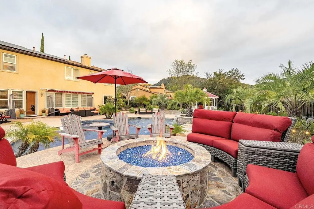 Enchantment in Valley Center! Ideally located in desirable WOODS VALLEY and framed by towering Cyprus trees, the motor court opens to this gorgeous villa and stunning resort like grounds. The fabulous flowing floor plan was built for comfort with large rooms, an island kitchen that is open to the family room and fireplace. Engaging entertainment areas include an elegant formal dining room and social billiards room. The main bedroom is truly a relaxing retreat with distant views of the scenery. Besides the upstairs 3 bedrooms, there is a downstairs bedroom and bath. LIFESTYLE IS KEY HERE! A resort like backyard includes free form pool & spa, raised fireplace deck, lounging areas, barbecue bar, and a charming gazebo, plus winding paths and privacy. Nearby NATIVE OAKS GOLF COURSE is an impeccably maintained public course and offers tournaments, celebrations and unique TRACK-MAN powered driving range. Solar panel system is owned and paid for. Near Native Oaks Golf Club Pool, spa, gazebo, and outdoor fireplace Owned solar system and EV charger Located in the Woods Valley community, this two-story home offers approximately 3,777 sq ft with 4 bedrooms and 3 bathrooms on an approximately 0.49-acre lot. Interior features include an island kitchen open to the family room with fireplace, formal dining room, dedicated game room, and flexible office space. A guest bedroom and full bathroom are located on the main level, with additional bedrooms and loft space upstairs. The primary suite includes views of the surrounding hills and valley landscape. Outdoor areas include an in-ground po