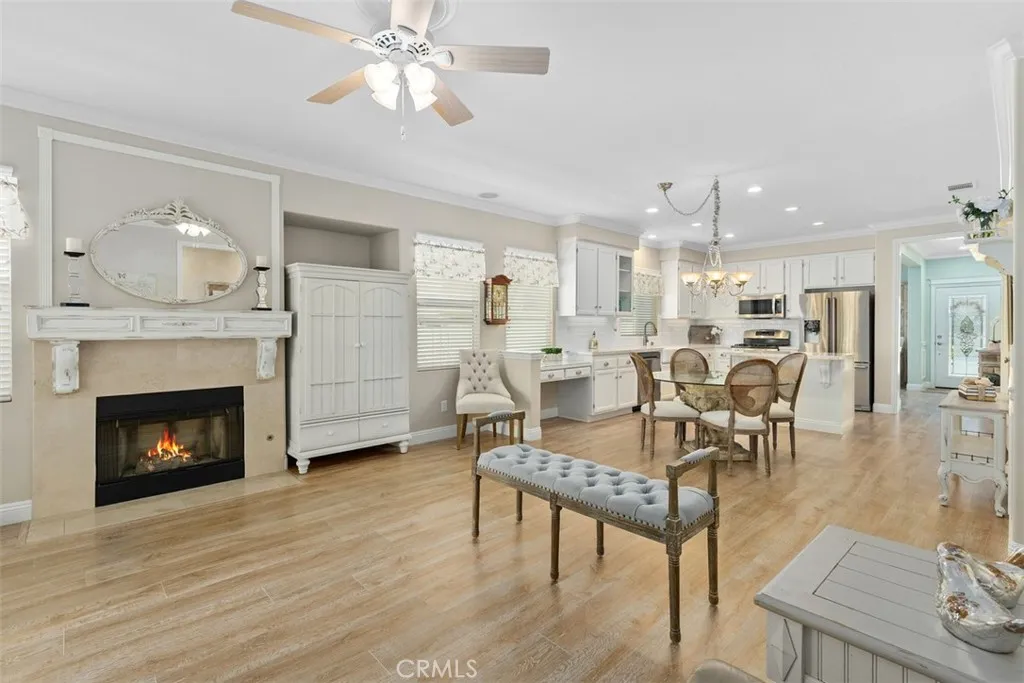 Absolute Beauty!! The attention to detail makes this home a must see in this highly desirable 55+ community, the Oasis. The beautiful, beveled glass door welcomes you into this pristine well-designed home with open floorplan. The front room showcases as a formal living or sitting room with its elegant crystal lighting feature, crown molding, and plantation shutters. The immaculate kitchen features upgraded cabinets, stainless steel appliances including brand new dishwasher, quartz countertops, walk-in pantry with etched-glass door, center island and is open to dining area and the family room with its lovely mantled fireplace. You will find well thought-out, refined features throughout this home which include delicate moulding artfully crafted to enhance the home and architectural corbel and transom windows adding elegance and formality to each space. High-quality laminate flooring with aesthetics of real wood is featured throughout the home. Spacious master bedroom offers sliding glass doors accessing the back yard, plantation shutters, and ceiling fan, with remodeled master bathroom featuring walk-in shower, designer cabinetry, quartz countertops, large walk-in closet with storage space. There are two other spacious rooms, one is an office/craft room and the other a guest bedroom. All rooms have ceiling fans, plantation shutters, base and crown moulding. The backyard is a personalized golfers oasis with mini multi-hole putting greens. The owners put love and care and over $100k in upgrades making this home a treasure. The HOA offers top-notch amenities; a 22,500 sq ft club