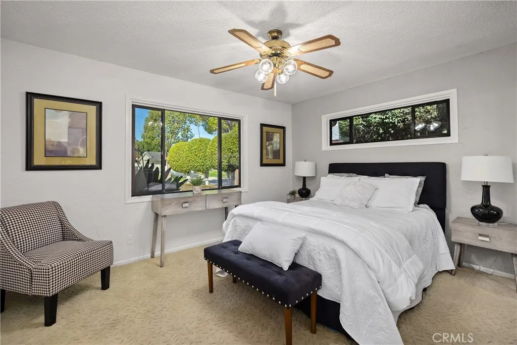 Welcome to this spacious four-bedroom, two-bathroom home designed for comfortable living. Built in highly desirable West Garden Grove as a Garden Park Estates Plan 5 home, the great room and deck were added in 1967. Set on a generous lot, this property boasts vaulted ceilings in the large great room, making it ideal for entertaining and gatherings. Step outside through sliding glass doors to a covered deck, grassy area, stylish concrete and brick patio, and a separate gazebo ready for a hot tub or extra seating. The backyard offers plenty of room for tables and chairs, allowing you to easily extend your celebrations outdoors. Enjoy the warmth of two fireplaces, built-in cabinetry with soffit lighting, and display shelving. The kitchen is equipped with a dinette, two ovens, dishwasher, cooktop, and microwave. An adjacent room, formerly the laundry space, now serves as a thoughtfully redesigned pantry. The primary bedroom offers direct bathroom access and a mini-split cooling system. Another bedroom features a convenient wall bed and sliding doors to the backyard, maximizing space and flexibility. A third includes mirrored closet doors, while the fourth has both a closet and direct garage access, plus it's attached to a bathroommaking it perfect for use as an office. Additional amenities include a two-car attached garage, solar light tube, mini-split cooling in the great room, fruit trees, completely fenced backyard, a large driveway for extra parking, an outdoor sprinkler system, motion sensor lighting, multiple storage closets/cabinets many with organizing inserts, new heat
