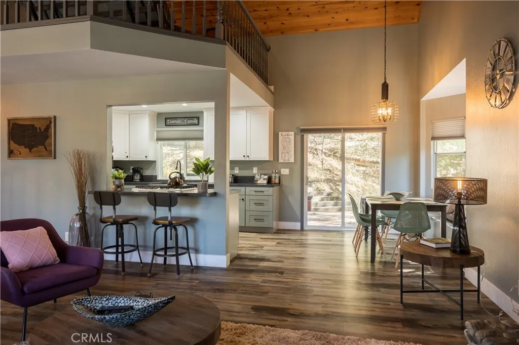 Discover this stunning, modern-style mountain retreat with coveted lake rights! This beautifully renovated gem is tucked away on the sought-after North side of the lake, just minutes from Tavern Bay Beach Club and the Marina. Step inside to find an inviting open layout with soaring vaulted ceilings and abundant natural light pouring in from every angle. The heart of the home is a stunningly updated kitchen, seamlessly flowing into a spacious living room with a cozy fireplace and direct access to the backyard, perfect for effortless entertaining or unwinding after a day of adventure. With three generously sized bedrooms, two stylishly modern bathrooms, and a versatile bonus loft, ideal for game nights or extra guest space, this home is designed for comfort and flexibility. The main level features two large bedrooms and a sleek bathroom, while the upper-level primary suite offers a private sanctuary complete with its own deck. Outdoors, the expansive fenced yard is an entertainers paradise, boasting a large wooden deck, hot tub, barbecue area, and even a horseshoe pit. Whether you're hosting friends or enjoying a quiet evening under the stars, this space has it all. Practicality meets luxury with central heating and air, wood flooring, dual-pane windows, and a 2-car garage equipped with an EV charging outlet, plus two additional parking spaces. Surrounded by hiking trails and close to an elementary school, this home is as convenient as it is charming.