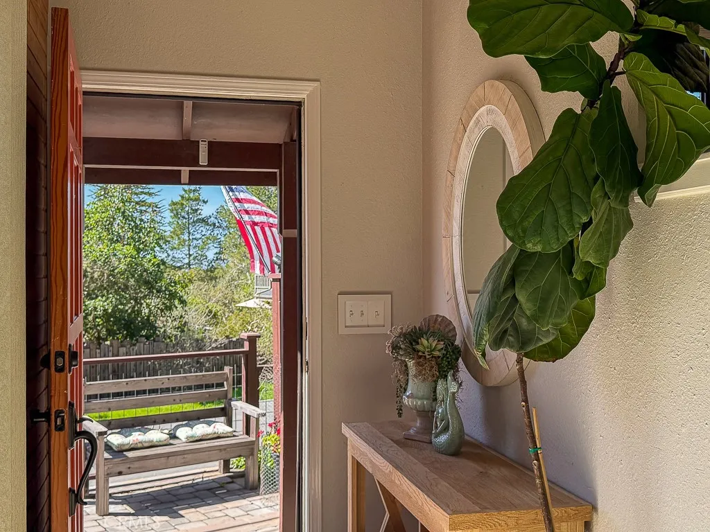 BEAUTIFULLY REMODELED and filled with natural light, this Cambria retreat blends warm wood architectural details, modern updates, and peaceful pine tree views just two blocks from Fiscalini Ranch Preserve. This light, bright, and airy 2-bedroom, 3-bath redwood home offers approximately 1,667 sq ft of thoughtfully updated living space on a large 6,708 sq ft corner lot. Just three steps up from the entry, the home opens into a beautiful light-filled space with warm wood walls, luxury vinyl plank throughout, a gas stove, and windows framing views of the surrounding pine trees. The open-concept living area flows into the dining space and beautifully updated kitchen featuring custom cabinetry, a convenient coffee bar, island with bar seating, and abundant windows that fill the home with natural light. Custom built-ins throughout add both charm and functionality. Upstairs are two spacious ensuite bedrooms, including a primary suite with peekaboo ocean view and beautiful sunsets. Outdoor features include a private fenced patio with spa for enjoying starry Cambria evenings, a greenhouse for gardening enthusiasts, RV parking, and a water catchment system. The property also includes a one-car garage with laundry and workbench plus a separate smaller storage garage. Located just a short distance from the Tipton Street trailhead of Fiscalini Ranch Preserve and miles of scenic oceanfront walking trails, this beautifully renovated home offers the perfect blend of comfort, nature, and the relaxed Cambria coastal lifestyle near the ocean.