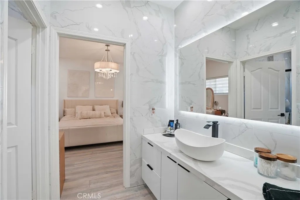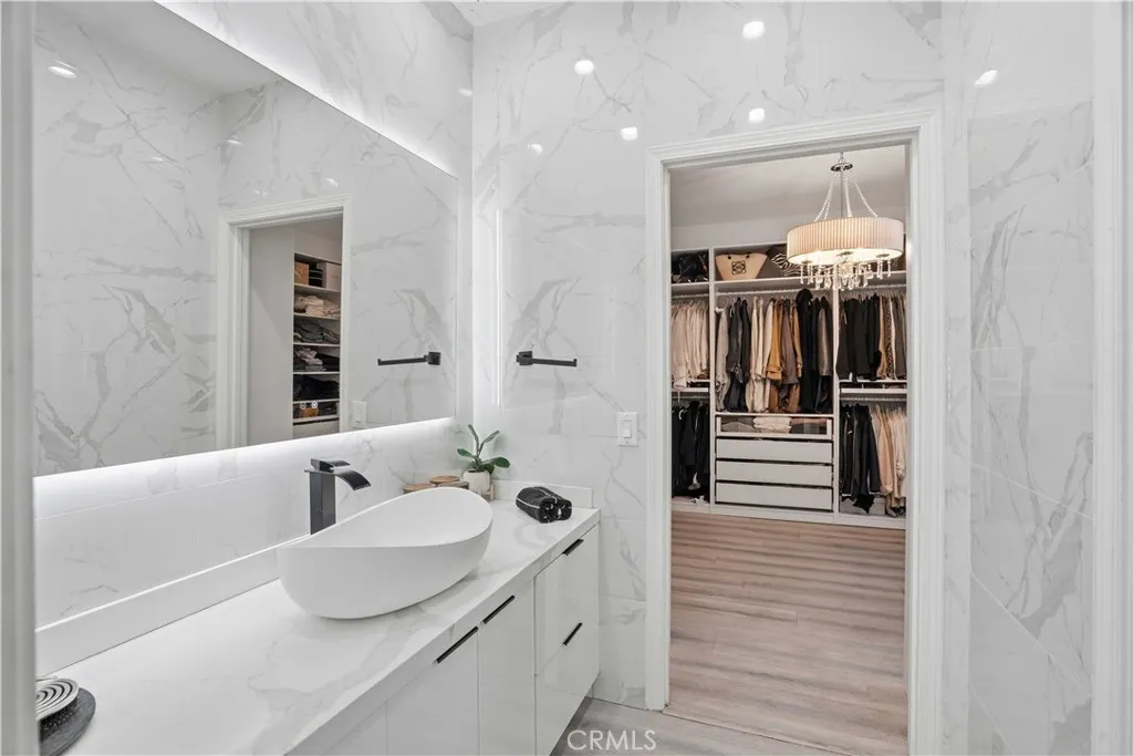 Prime West Hills remodeled estate located in the prestigious Stonegate community. This impressive 5-bedroom, 5-bathroom residence offers approximately 4,400 sq ft of elegant living space with a spacious and convenient floor plan designed for both comfort and entertaining. High vaulted ceilings and abundant natural light create a bright and welcoming atmosphere throughout the home. Custom-built closets throughout the home, including one room thoughtfully converted into a luxurious walk-in closeteasily reversible back into a bedroom. The home has been fully remodeled with a focus on luxury, comfort, and modern living. The expansive chefs kitchen serves as the heart of the home, featuring a massive center island, walk-in pantry, breakfast area, and ample cabinetry, making it perfect for family gatherings and entertaining. Tile flooring downstairs and wood flooring upstairs add warmth and sophistication throughout the home. A grand staircase leads to the enormous primary suite, a true private retreat complete with its own sitting area and a large private balcony overlooking the backyard pool and spa. The luxurious primary suite offers the perfect space to relax and unwind, while spacious secondary bedrooms provide comfort and flexibility for family and guests. Additional highlights include recessed lighting, double-pane windows, vaulted ceilings, an elegant electric fireplace in the family room, abundant natural light, and Spacious 3-car garage offering ample storage and everyday convenience. this exceptional residence blends luxury with comfortable family living. Conveniently
