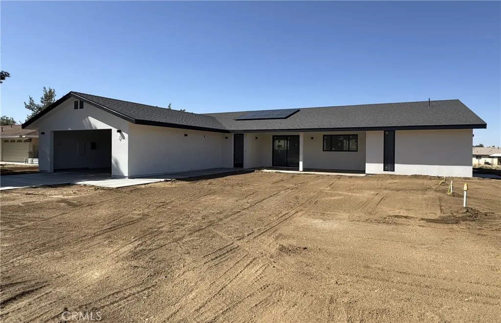 A first-of-its-kind new home by Goodpaster Construction of Yucca Valley. Get your checklist readythis NEW custom-built home is loaded with exceptional features. Located in the highly sought-after Sky Harbor neighborhood, this home offers more than 2,150 square feet of thoughtfully designed living space with three bedrooms and two and a half bathrooms. Step into a massive great room that flows seamlessly into the dining area and kitchen, creating the perfect open-concept living space. The great room features an electric fireplace and abundant windows that fill the home with natural light, creating a bright and airy atmosphere. The kitchen is a cooks dream, featuring name-brand appliances, a large island with plenty of seating, and ample space to gather while meals are prepared. Just off the kitchen is a butlers pantry complete with a prep area and sinkperfect for entertaining and additional storage. The home features a split floor plan, with two bedrooms on the east side and the primary suite on the west for added privacy. Each bedroom includes a large sliding door that brings in natural light and offers convenient outdoor access. The spacious primary suite includes an oversized walk-in closet. The primary bathroom creates a spa-like environment with features including dual sinks, a walk-in shower with dual shower heads, a free-standing tub, and a smart toilet. Additional features include a separate indoor laundry room and an oversized two-car garage designed as a versatile flex space. The fully insulated and finished garage includes a half bath, space for an office or worko
