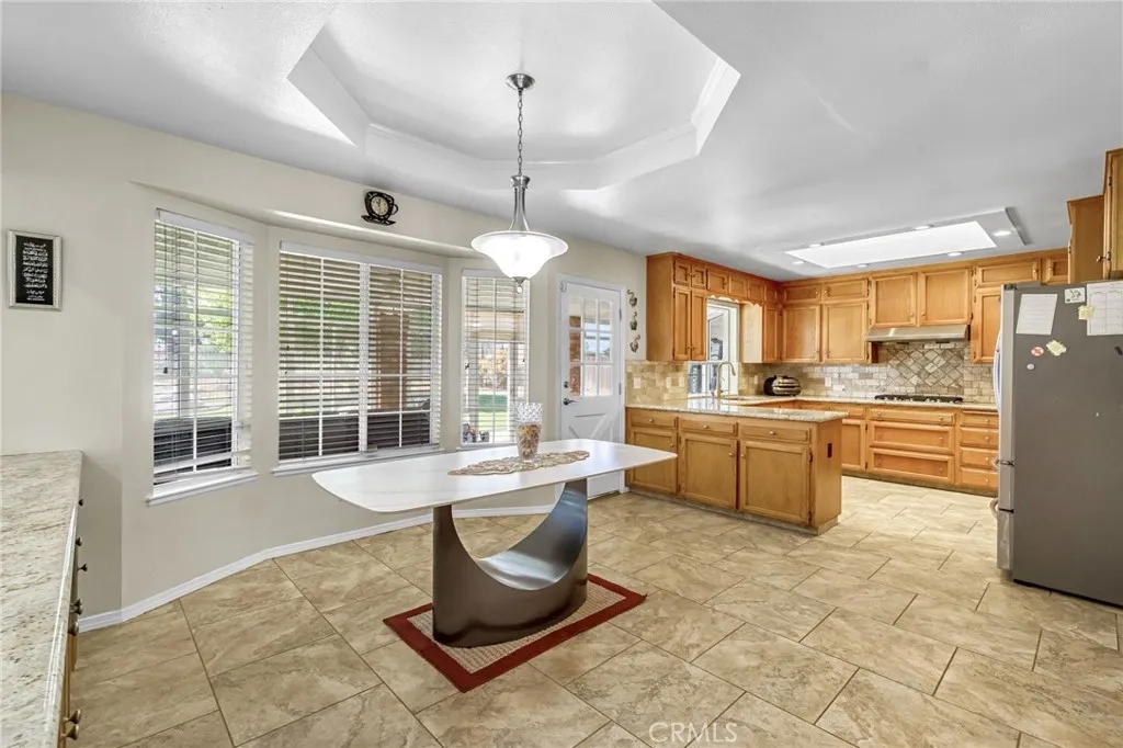 Located at 2436 Trevor Court in Madera, this well-maintained one-story residence offers approximately 3,383 square feet of living space with 5 bedrooms and 3 bathrooms, situated on a large lot with convenient access to nearby shopping, dining, and major roadways. The home features a spacious and functional floor plan with multiple living areas, including a formal living room, formal dining area, and a family room with a fireplace. The main living space showcases vaulted and beamed ceilings, creating an open and expansive feel. A sunroom provides additional flexible living space with natural light. The kitchen is designed for both everyday use and entertaining, featuring granite and travertine countertops, shaker-style cabinetry, stainless steel appliances, double ovens, a breakfast bar, peninsula, skylight, and a walk-in pantry. An informal dining area connects seamlessly to the kitchen and living spaces. The layout includes one isolated bedroom and bathroom with a private entrance, offering flexible use options. Additional interior features include multiple walk-in closets, a dedicated laundry/utility room with built-in storage and sink, two HVAC systems, two water heaters, a whole-house water filtration system, and leased solar. Exterior highlights include a tiled roof, 3-car garage with built-in storage and overhead racks, and a fenced backyard with a pool secured by safety fencing. The property backs to the Fresno River, providing added privacy and open views. Outdoor features also include a patio area, raised garden beds, and a low-maintenance yard layout. Additional f