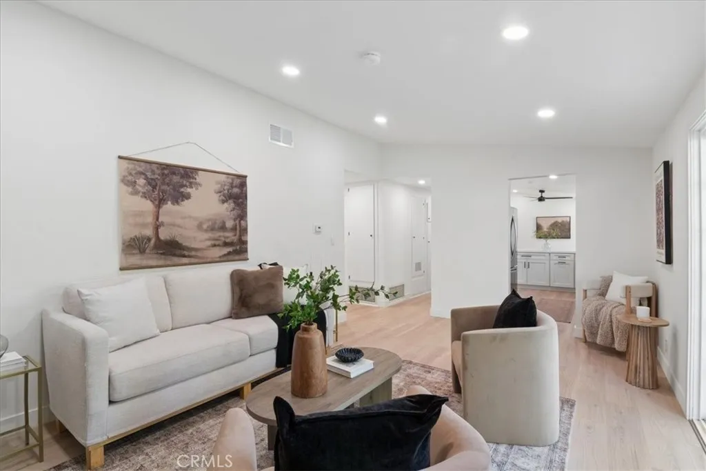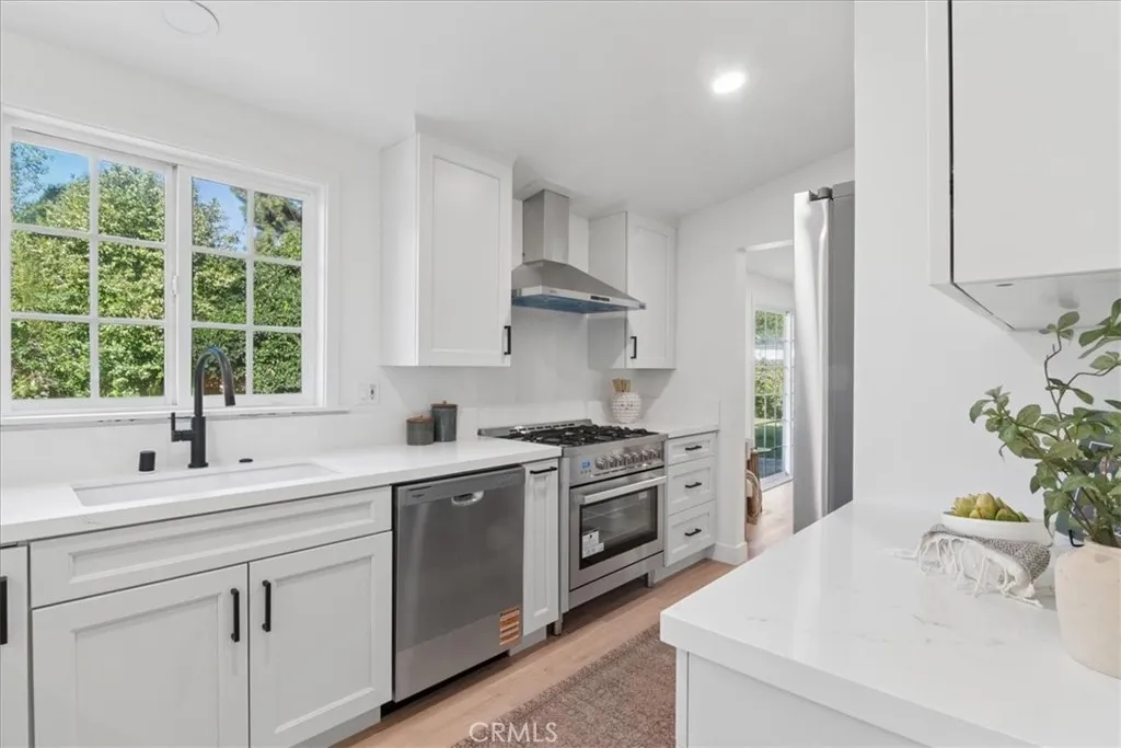 Tucked into a peaceful residential neighborhood in the foothills of Duarte, this light filled home offers an open and airy layout with vaulted ceilings and recessed can lighting throughout. The thoughtfully designed kitchen serves as the heart of the home, featuring new cabinetry, quartz countertops, new appliances, and an oversized chefs range, anchored by a generous peninsula that opens seamlessly to the dining area and family room, creating an inviting space for everyday living and entertaining. Sliding glass doors from both the living and dining areas extend the living spaces outdoors, creating an effortless indoor outdoor connection to the private backyard with a spacious grassy yard and patio. The primary suite provides a comfortable retreat with a large mirrored closet and an ensuite bath featuring a white oak vanity and oversized shower. Two additional bedrooms feature new closet doors and share a Jack and Jill bathroom appointed with a white oak vanity, chrome fixtures, and a deep soaking tub. Additional highlights include an attached two car garage, a well designed floorplan, and a quiet foothill setting near the San Gabriel Mountains with convenient access to parks, trails, and nearby amenities.