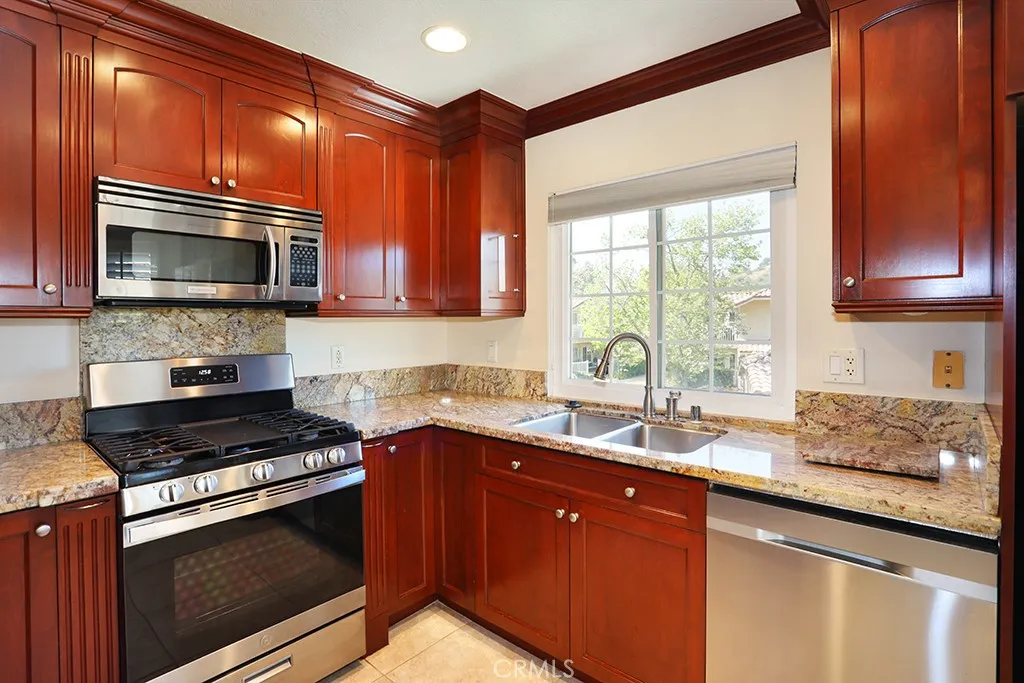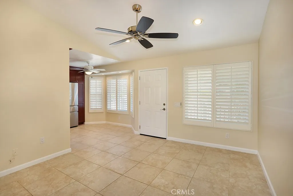 Welcome to this charming 2 bed, 2 bath condo nestled in the sought-after gated community of Meadow Ridge Villas in beautiful Trabuco Canyon. Perched on the second story, this home offers stunning views of iconic Saddleback Mountain and is surrounded by the natural beauty of one of Orange County's most desirable outdoor communities. The entry living room flows seamlessly into the bright kitchen, featuring gorgeous custom cabinetry and stainless steel appliances perfect for everyday living and entertaining alike. The primary bedroom boasts vaulted ceilings, a walk-in closet, and ensuite bathroom. Stay comfortable year-round with a whole house fan and upgraded ceiling fans throughout the home. An inside laundry area adds everyday convenience, while the private patio is the perfect spot to sip your morning coffee and soak in the sunrise views. Additional highlights include a one-car detached garage, all dual-paned windows, and a completely re-piped system with PEX. The community offers a pool, relaxing spa, gym, and playground for residents to enjoy. Located just minutes from award-winning Portola Hills Elementary, miles of hiking, biking, and running trails, plus shopping and dining, this home truly captures the best of the Southern California lifestyle.