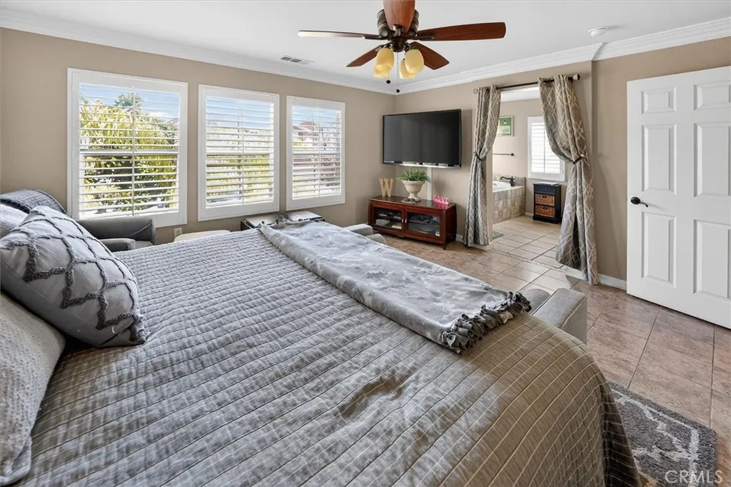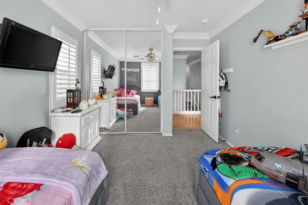 Located on a cul-de-sac in the desirable Tesoro area of Valencia is a charming single family home located on a large corner lot adjacent to lots of guest parking! This home offers over 1900 square feet of living space, a spacious loft along with 3 bedrooms, 2 baths upstairs and a guest bath down. Stunning crown molding and custom shutters throughout, tiled flooring, built-in doggie door, new carpet in 2 of the bedrooms with upgraded padding, ceiling fans, recessed lighting, newer neutral paint downstairs and in the kitchen that compliment the granite counters with breakfast bar and offers access to the beautiful backyard via a sliding glass door with sliding shutters. The garage has storage above and storage cabinets that will stay. The Homeowners Association Amenities are AMAZING! Just to name a few of the highlights include a gorgeous clubhouse with banquet facilities, pool/spa, outdoor cooking and picnic area, playground, tennis & pickle ball courts, gym/exercise room and hiking trails! This property is located near top rated schools, restaurants, (also drive through restaurants), shopping and more. If you're also looking for a clean, well maintained and wonderful community to be apart of this is one to see!