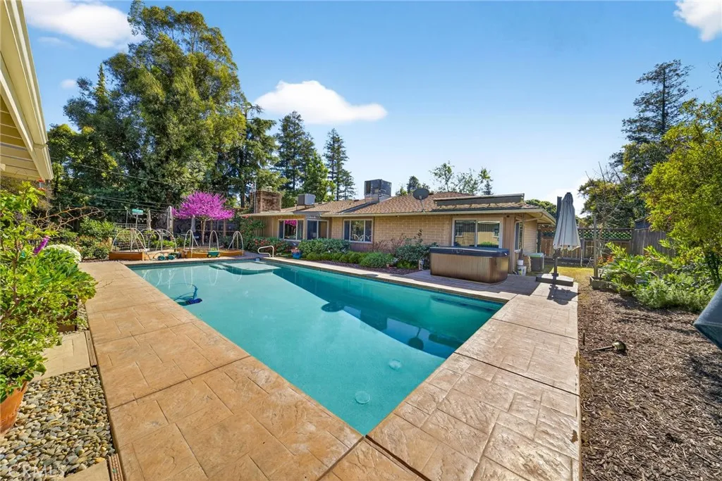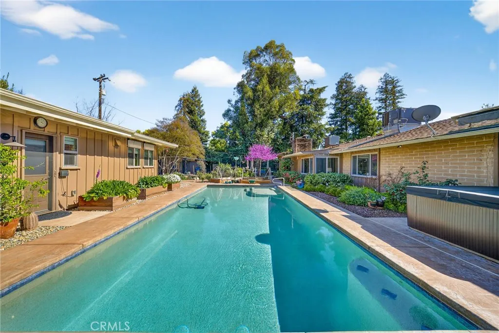 Welcome to this Modern California Ranch home sprawled in the heart of Old Fig Garden Estates. This estate has been held in one family since its construction in 1951. Constructed with Hans Sumpf adobe and Redwood this property offers a rare glimpse into this architectural marvel. Upon arrival you are greeted with an assortment of floral assortment of native California plants and flowers, tucked behind your own modern electrical gate. There is ample parking with a a covered carport, attached garage and roundabout driveway for your guests. As you enter the main home you are greeted with natural hardwood flooring and Sugar Pine interior walls (also in casita), true to its time. There is an array of natural lighting from interior sky lights and updated windows, all outfitted with custom coverings. The kitchen has natural wood cabinetry with endless custom features and granite counters. Each restroom has been tastefully updated with newer tile, shower glass, and unique design features. There has been upgraded lighting, electrical, recessed lighting, HVAC and plumbing in recent years. If you enjoy leisurely outdoor time, this backyard retreat checks all the boxes. Fill your afternoons and weekends with gardening as you have multiple gardening boxes with irrigation and timers. A newly constructed green house sits on the rear end of the lot, in addition to a walk-in tool shed/shop for your weekend projects. If relaxation is more of your thing, lay out by the sparkling pool and hang with your guests under the shaded covered patio. The entire patio decking and walkways include custom