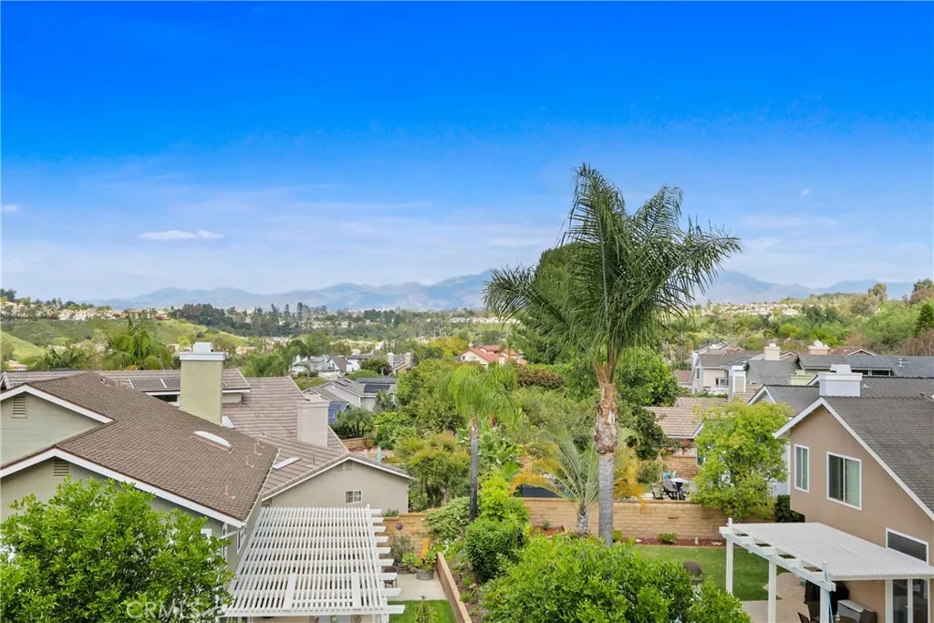 Welcome home! This lovingly maintained 3 bedroom, 2 bath single story home has a spectacular panoramic view of Saddleback Mountain, Valley and city lights. The leaded glass paned front door leads into the light & bright foyer flanked by a living room with vaulted ceiling and fan. The well appointed dining room and kitchen opens to the family room complete with a gas fireplace that provides both warmth and ambience. The clean and efficient kitchen features granite counters, beveled white subway tile backsplash, newer appliances and garden window over the sink affording access to the expansive view. Sliding glass doors give entry to the backyard from both the family room and master bedroom. The master bedroom has a vaulted ceiling and a large walk-in closet. Both bathrooms are tastefully upgraded with quartz counters and tiled bath and showers. Other amenities of this inviting home include engineered hardwood floors, dual paned windows, solid core interior doors and ceiling fans in all bedrooms, living room and family room. 2 skylights in the hall insure that there are no dark corners in this lovely home. The backyard comes complete with a built-in BBQ and above ground secluded hot tub for relaxing entertainment opportunities to take advantage of the incredible views. The neighborhood is conveniently located in close proximity to shopping and dining and offers membership to Lake Mission Viejo. Hurry!! This one won't last long.