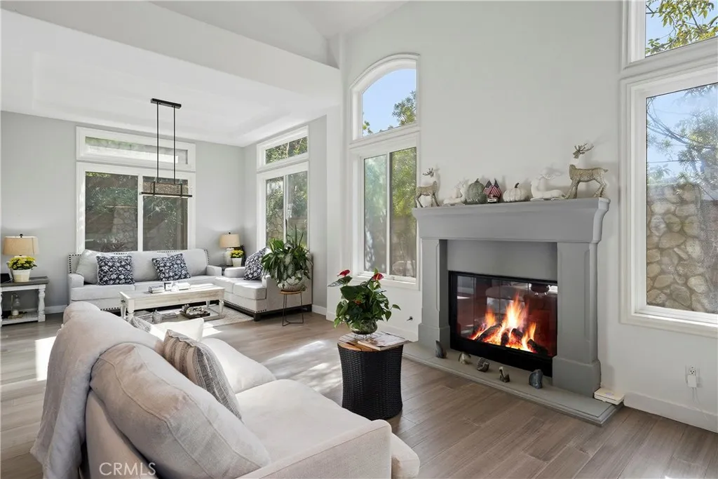 Welcome to the prestigious Edwards Hill Community, where this beautifully updated 4-bedroom, 3.5-bath residence offers an exceptional blend of elegance and comfort. A double-door entry opens to a grand foyer with soaring ceilings, setting the tone for the light-filled living room with fireplace, seamlessly connected to the formal dining room. Hardwood floors and recessed lighting flow throughout the home, enhancing its warm, modern appeal. Beyond the dining room, the gourmet kitchen features KitchenAid stainless steel appliances, a generous quartz island, and abundant cabinetry. The kitchen opens to an inviting family room complete with a wet bar, custom black entertainment center with cabinetry and shelving, wine cooler, and a decorative tile fireplace. Expansive windows flood the space with natural light, creating an ideal environment for both everyday living and entertaining. Step outside to a serene backyard oasis showcasing a built-in barbecue island, brick fire pit with seating, lush landscaping, and two open patiosperfect for hosting gatherings or enjoying moments of quiet relaxation. A stunning staircase with an inviting wine cellar beneath and modern cable railings ascends from the foyer to the second level, where the luxurious primary suite awaits. This exquisite retreat features high ceilings, a dual fireplace, and a spa-inspired bath with soaking tub, separate shower, private water closet, and an expansive walk-in closet plus an additional closet. The upper level also includes a Jack-and-Jill bedroom and bath, along with a third bedroom and adjacent full bath. A