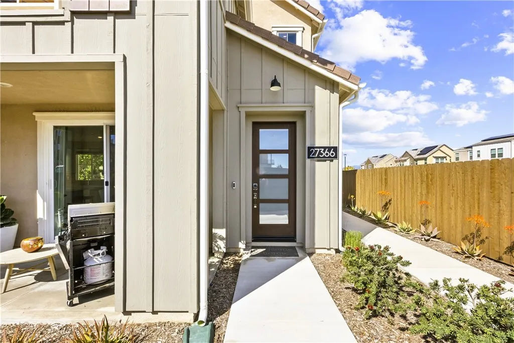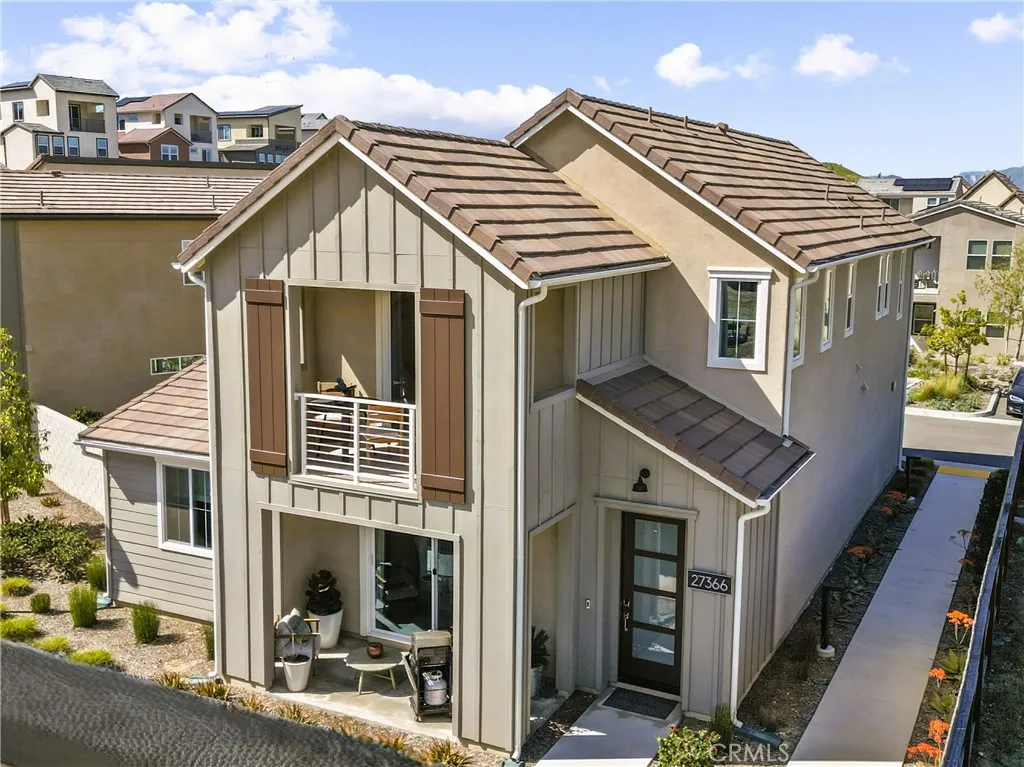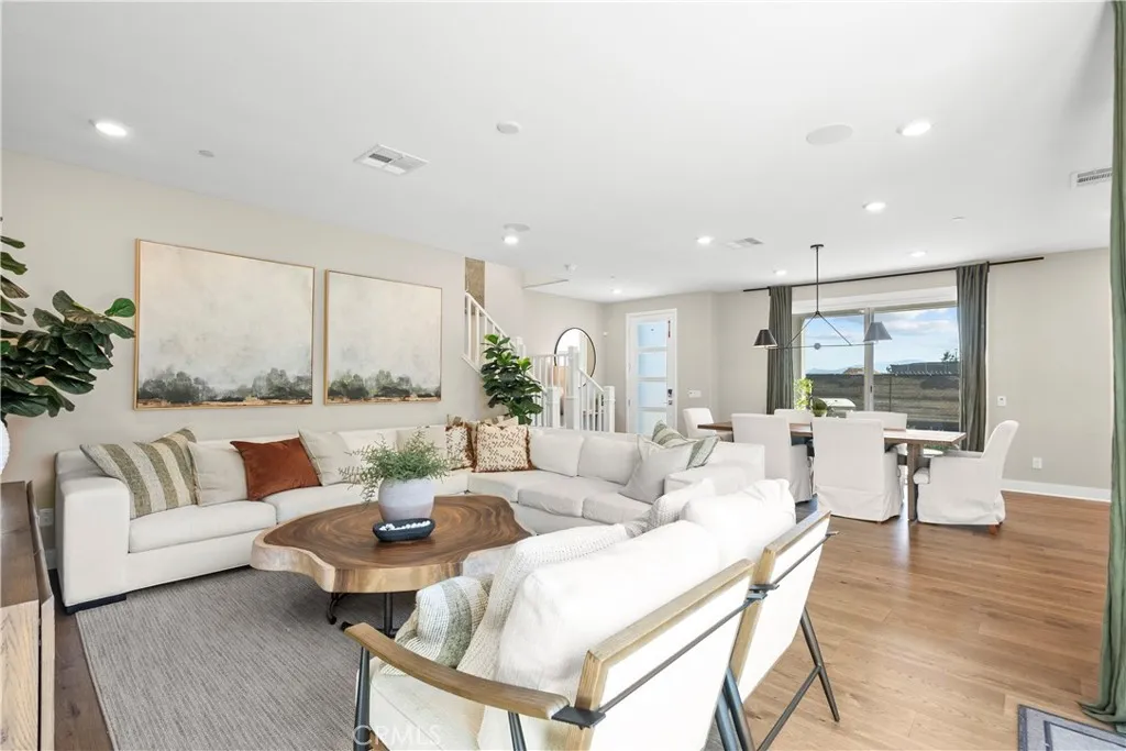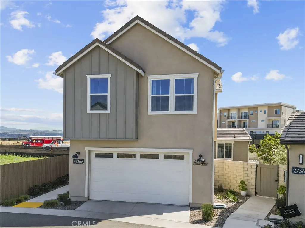 Ready to Move In 4 Bedrooms | 2.5 Bathrooms | Approx. 2,000+ Sq Ft Newer Fully Furnished Model Home with Premium Oversized Lot/Yard. Welcome to this beautifully maintained former model home located in the highly sought-after Solaire neighborhood of Five Point Valencia, one of Santa Claritas most vibrant and thoughtfully designed master-planned communities. Built in 2023 and showcasing professionally designed interiors, this exceptional residence offers modern style, bright open living spaces, and the rare opportunity to purchase a fully furnished home. All model home furniture and designer furnishings are included with the sale, excluding the sellers personal items, making this an incredible turnkey opportunity. Step inside to an inviting open-concept floor plan where the kitchen, dining, and living areas flow seamlessly together, creating the perfect space for both everyday living and entertaining. The stylish kitchen features sleek quartz countertops, a large center island with seating, stainless steel appliances, and abundant cabinetry. Natural light fills the home, highlighting the professionally curated finishes and thoughtful design touches throughout. Upstairs, youll find four generously sized bedrooms including a private and relaxing primary suite complete with a spacious walk-in closet and a spa-inspired bathroom designed for comfort and convenience. Additional highlights include recessed lighting, central HVAC, an upstairs laundry room, and a direct-access two-car garage. The backyard features a premium oversized lot that is beautifully landscaped and perfect for