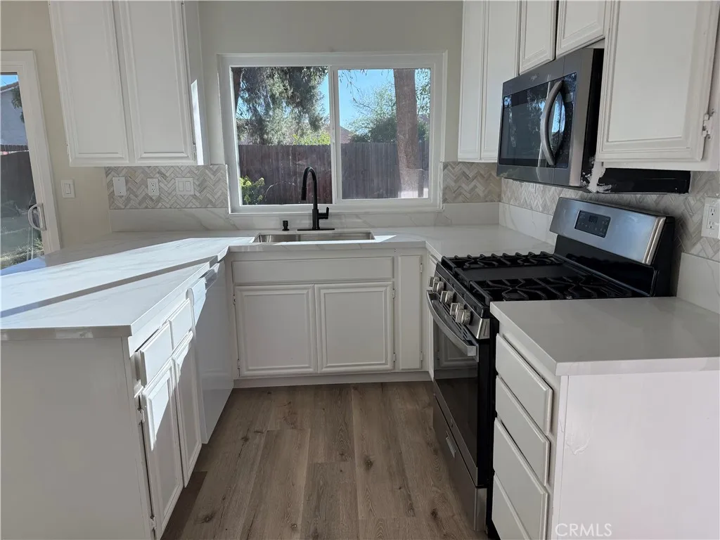 Welcome to this beautifully updated two-story home nestled on a quiet cul-de-sac in Hemet. Sitting on an expansive 8,200 sq ft lot, this property offers both space and comfort, along with stunning mountain views that create a peaceful backdrop to everyday living. Step inside to find a bright, open layout featuring tall ceilings in the living room, fresh interior paint, and brand-new laminate flooring throughout. The heart of the home is the upgraded kitchen, complete with new quartz countertops, modern finishes, and plenty of room for cooking and gathering. The inviting family room includes a cozy fireplace, perfect for relaxing evenings. With 4 bedrooms and 3 full baths, this home offers flexibility for families of all sizes. The downstairs bedroom and full bath make an ideal space for guests, older family members, or a private home office. Outside, the large backyard provides endless possibilitiesgardening, entertaining, or simply enjoying the open space. A 2-car garage adds convenience and storage. Located near stores, schools, and everyday amenities, this home blends comfort, style, and practicality in one perfect package.