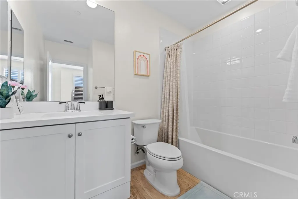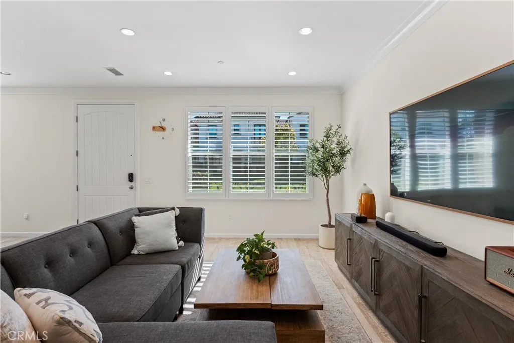 (Major $100,000 price reduction! Exceptional opportunity-seller is highly motivated and ready to make a deal.)Welcome to this absolutely stunning and rarely available Entrata Plan 2 condominium in the prestigious Orchard Hills community of Irvine. Perfectly situated along the picturesque greenbelt, this beautifully maintained 2-bedroom, 2.5-bath residence with a tech loft offers a unique and highly desirable layout with no neighbors above or below, providing exceptional privacy and comfort. As you step inside, you are greeted by a bright and inviting open-concept great room featuring elegant wood-like tile flooring and plantation shutters, creating a warm and sophisticated atmosphere. The thoughtfully designed kitchen is the heart of the home, complete with a spacious center island, upgraded quartz countertops, abundant cabinetry, custom decorative backsplash, and premium stainless-steel appliances, all highlighted by two stylish pendant lights. Step outside to the private outdoor atrium, a peaceful retreat perfect for weekend BBQs, morning coffee, or intimate evening gatherings under the California sky. Upstairs, youll find a generous tech loft, ideal for a home office or study area, along with two spacious en-suite bedrooms and a conveniently located individual laundry closet. The luxurious primary suite offers French doors that open to a large private balcony, where you can enjoy breathtaking mountain and greenbelt views. The spa-inspired primary bathroom features dual vanities, a soaking tub, a separate shower, and a large walk-in closet. Additional highlights include a