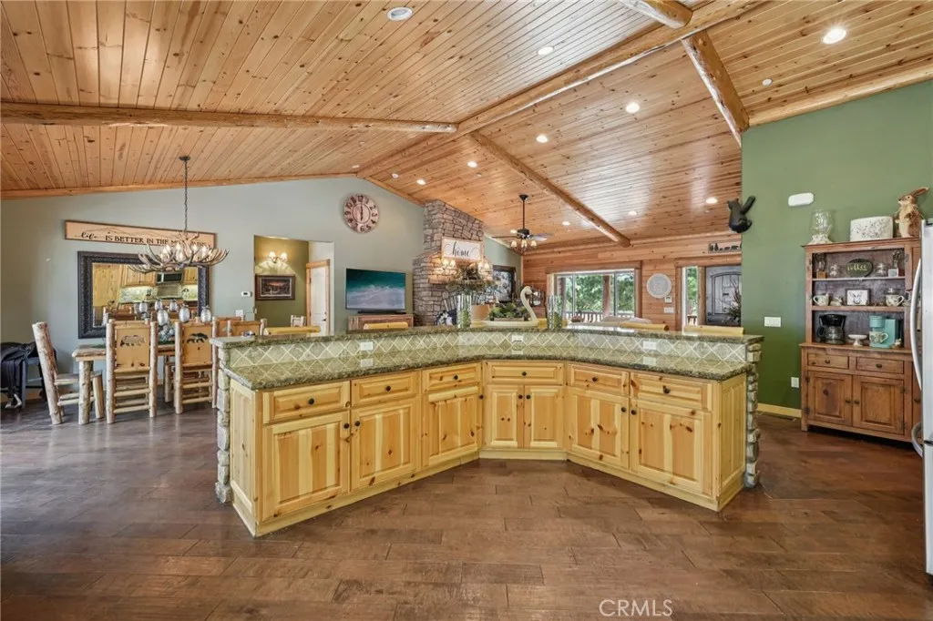 Majestic log-style mountain masterpiece located in the exclusive neighborhood of Meadowbrook Estates! Set on an impressive 1.29-acre lot, this stunning property offers the perfect blend of rustic charm, space, and modern comfortideal for hosting friends, family, and even your furry companions. Featuring 4 bedrooms, 4.5 bathrooms, and approximately 2,980 square feet, this home offers flexibility and thoughtful design throughout. One of the bedrooms is currently used as a play/game room but could easily be converted into an oversized secondary primary suite if desired. Step inside and be greeted by warm mountain elegance, highlighted by vaulted tongue-and-groove ceilings, beautiful engineered wood flooring throughout the main living areas, plush carpet in the bedrooms, tasteful custom touches, and a stunning stone fireplace that creates the perfect cozy ambiance. The spacious kitchen is truly a chefs delight, featuring gorgeous granite countertops, a walk-in pantry, and plenty of seating with a generous bartop where friends and family can gather while you prepare your favorite meals. After dinner, wander over to the play/game room for endless entertainmentcomplete with a fun indoor slide that adds a unique and playful touch to the home. Its the perfect spot for guests of all ages and makes this home truly one-of-a-kind. Whether you're hosting holidays, family gatherings, or festive mountain weekends, this home is designed for making memories. When its time for a little peace and quiet, the opposite wing of the home offers three comfortable ensuite bedroomseach with its own pr