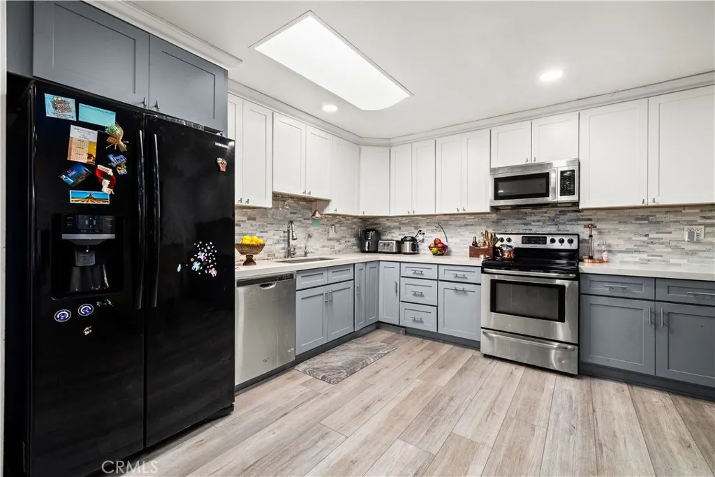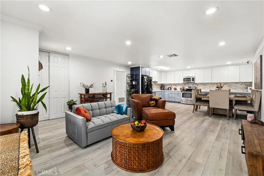 Welcome to this beautifully updated single-level corner lot home in the highly sought-after community of Aliso Viejo. Offering 3 bedrooms, 2 bathrooms, and approximately 1,240 square feet, this rare residence combines comfort, privacy, and thoughtful upgrades. Inside, the open floor plan is enhanced by vinyl flooring and recessed lighting throughout, creating a bright and modern living space. The completely updated kitchen features one of the largest layouts in the community, providing excellent space for cooking and entertaining. The guest bathroom has also been recently remodeled, adding to the homes fresh, updated feel. One of the homes standout features is the rare, oversized enclosed private patio, offering exceptional outdoor living including a large pomegranates producing tree, and a year-round producing lemon tree. The patio also provides a private entrance to the home, adding convenience and privacy. Additional highlights include air conditioning, a hallway laundry closet, and a detached two-car garage close by. The home is also just a short walk to the community pool and nearby park, making it easy to enjoy the best of Aliso Viejo living.