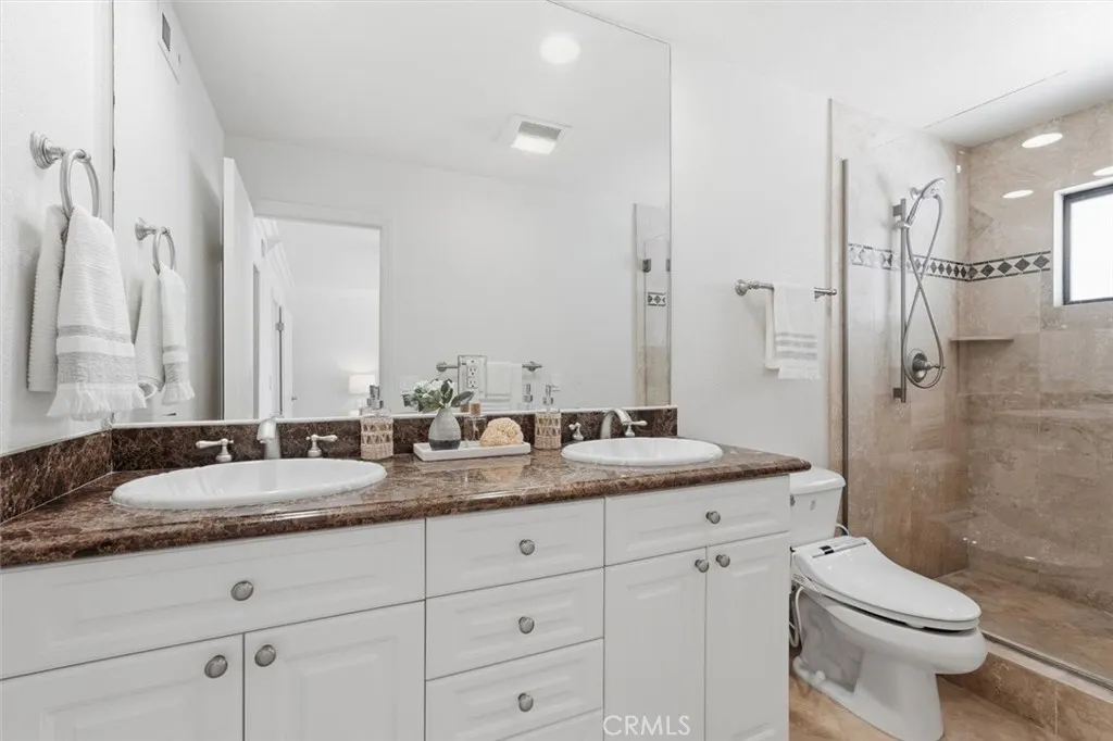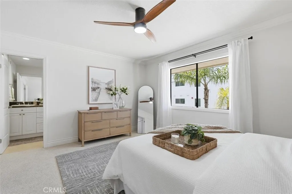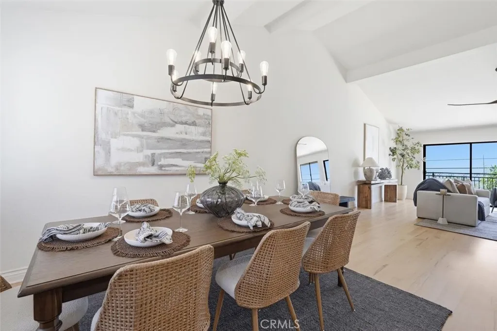 Set on one of South Redondo Beachs most iconic streets just one block from the ocean, this home offers a wonderful opportunity to enjoy the beach lifestyle with bright interiors, inviting outdoor spaces and a layout that lives beautifully day to day. Fresh paint and brand-new carpet give the home a crisp, move-in-ready feel, while thoughtful details throughout add warmth and character. The entry level features two en-suite bedrooms, creating flexibility for guests, family or a home office setup. One of the suites opens through sliding doors to a large private patioan ideal extension of the living space with plenty of room for a seating area or morning coffee. The second suite is the spacious primary, complete with a walk-in closet and a well-appointed bathroom featuring dual sinks, a stone vanity and a large glass-walled shower. Upstairs, the main living spaces are filled with natural light. Vaulted ceilings and freshly refinished wood floors enhance the bright, welcoming feel, while the fireplace creates a comfortable focal point for the living room. A built-in beverage area with drink refrigerator and cabinetry adds convenience for entertaining, and sliding doors open to a large deck that truly captures the essence of coastal living. With ocean views, a retractable awning, and ample room for a grill and seating area, this is the perfect place to dine outdoors, unwind after the beach or enjoy the fresh sea air. The upper level also includes a formal dining area that connects easily to the kitchen, making the space ideal for both casual everyday living and entertaining. The