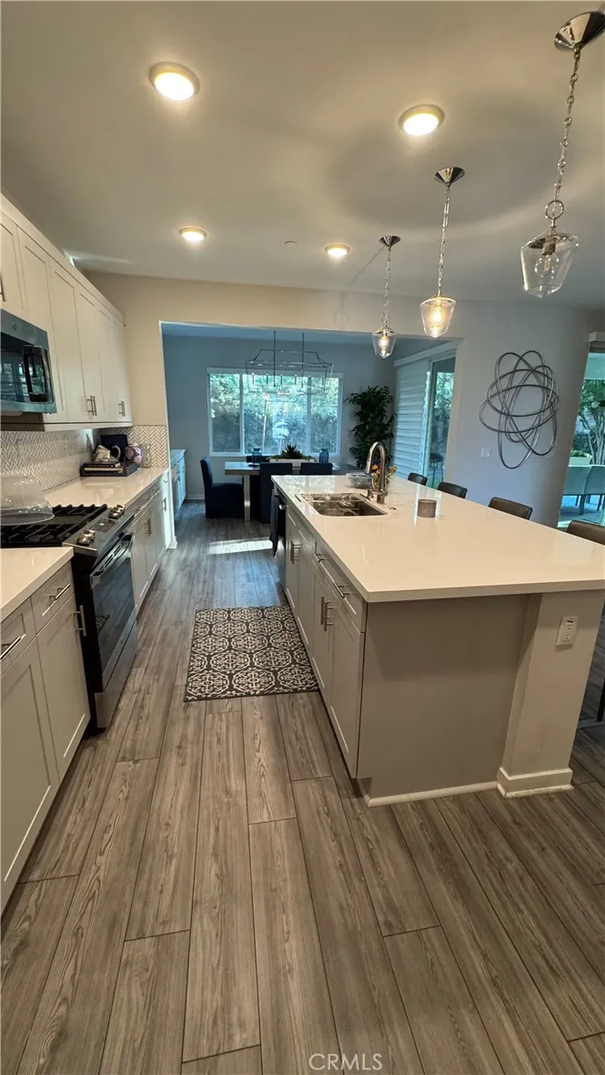 **Move-In Ready Model Home Fully Furnished & Upgraded! Step into luxury with this stunning 5-bedroom, 3-bathroom that was a new builder close out model. Thoughtfully designed and fully furnished for immediate move-in. Located in a desirable neighborhood on a corner lot, this two-story residence showcases an open-concept layout with soaring ceilings and elegant finishes throughout. Enjoy designer-selected upgrades including premium flooring, custom window coverings, and stylish wall dcorall included. The heart of the home features a gourmet kitchen with upgraded quartz countertops, pendant lighting, and a spacious island perfect for entertaining. Double sliding doors open to a beautifully landscaped backyard and a California Room complete with outdoor furnishings for seamless indoor-outdoor living. Relax in the great room with a cozy fireplace and custom lighting, or retreat to one of the spacious bedrooms. All bathrooms are upgraded with quartz countertops, adding a touch of sophistication. The laundry room is fully equipped with upper and lower cabinetry, a large sink, and modern appliances. Additional highlights include: Open staircase with elegant railing, Washer, dryer, refrigerator, and television included, Prewired alarm system for added security. This home is a rare opportunity to own a professionally designed model with every detail curated for comfort and style. Lightly used as a seasonal vacation retreat, this home has been meticulously maintained and occupied only twice a year by the original owner - offering a like-new living experience. Don't miss your chance