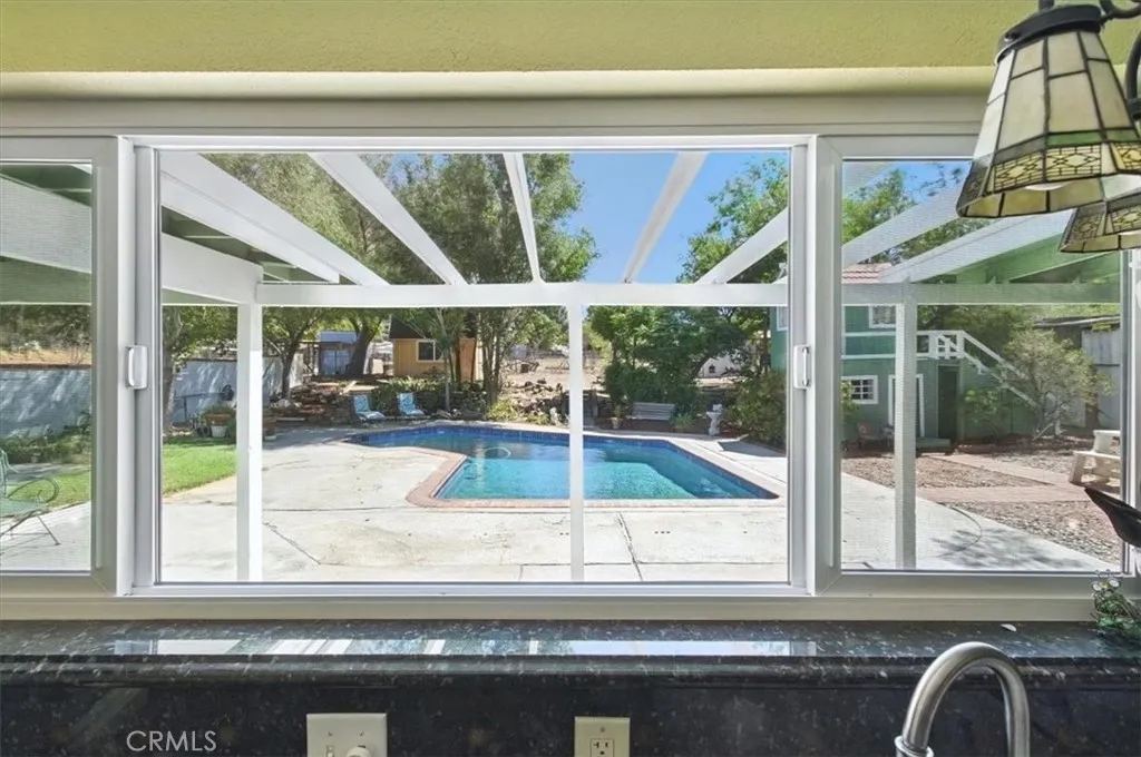 Welcome to this beautifully updated single story 3 bedroom 2 bath home featuring a large pool in the heart of the highly desirable Quartz Hill community. Located in one of the best school districts in the AV. Situated on a generous third of an acre lot. This1,980 sqft home offers a perfect mix of comfort, style, and functionality, Freshly painted inside and out. Brand new windows throughout the entire property. The gorgeous kitchen is a standout with rich cherry cabinets, granite counter tops, plus granite backsplash and windowsill that over looks the pool. Kitchen has recessed lighting, bamboo hard wood floors run through the living room, dining room, hallway, and large bedroom. The living room also boasts a cozy wood- burning fireplace, while the family room stands out with a custom fabric accent wall and more recessed lighting. The full bath has a relaxing jacuzzi tub. Four rooms offer views of the pool and the open space backyard. Recently painted playhouse in backyard as well as two generous sheds that are each 10 x12 and one with loft. Pressed concrete driveway and six fool pool fence. This is a very well take care of property with pride of ownership of over 20 years throughout.