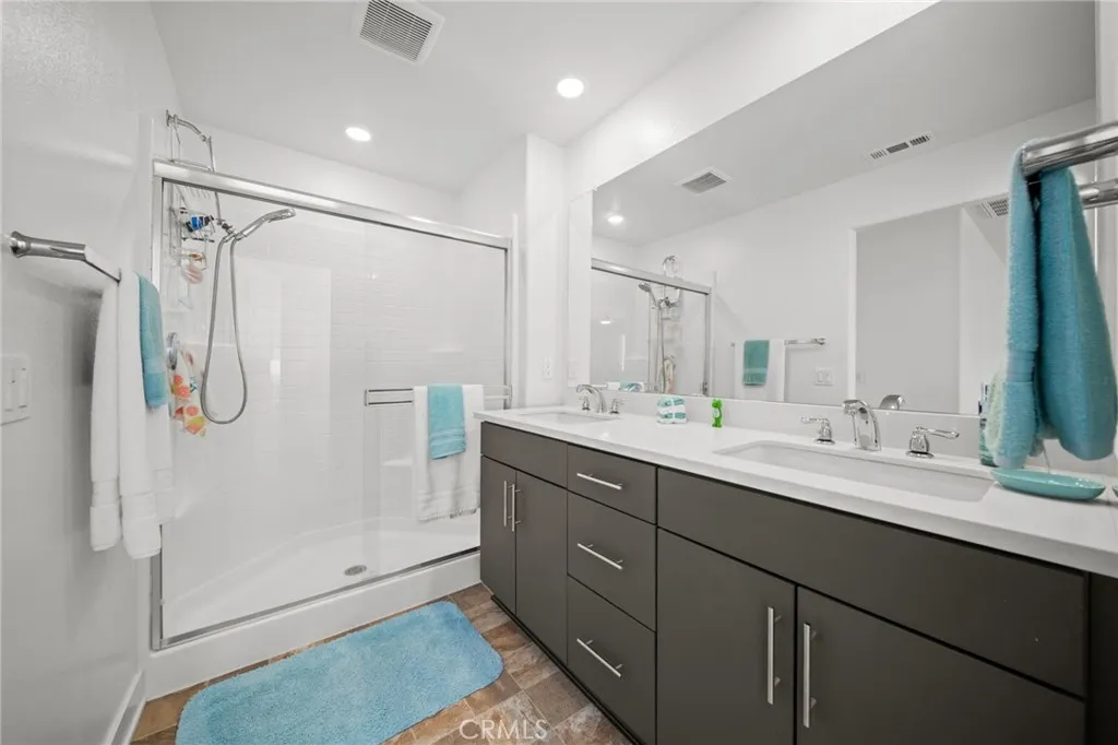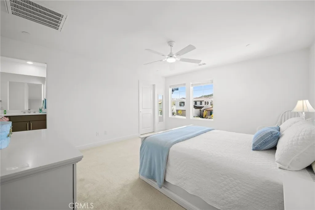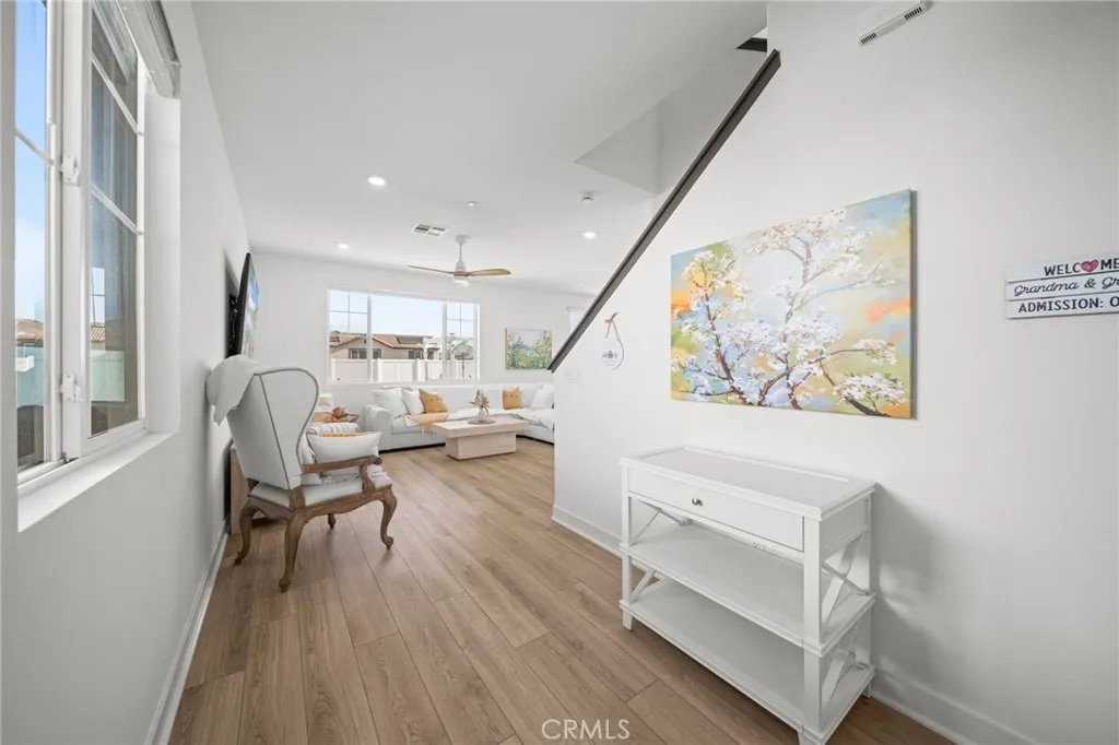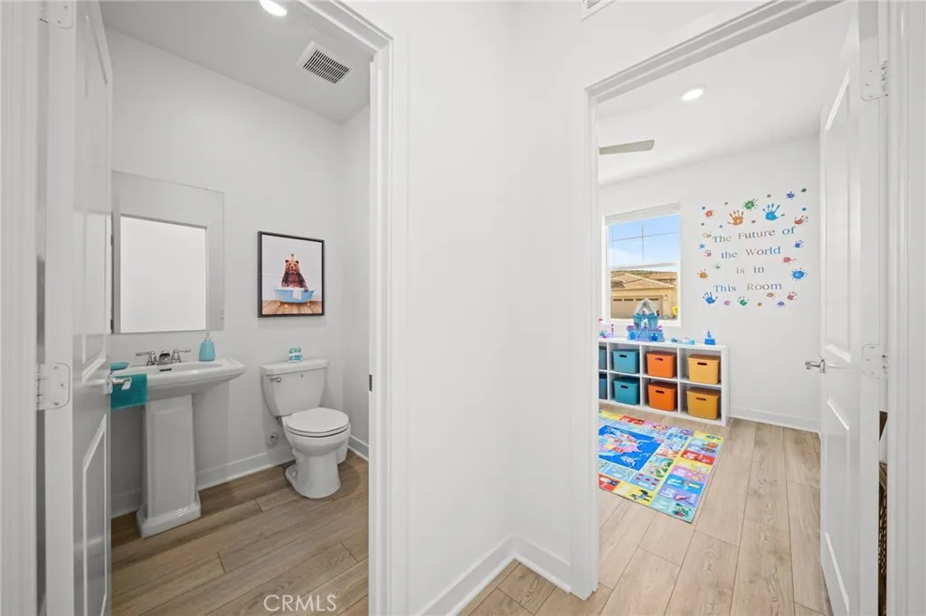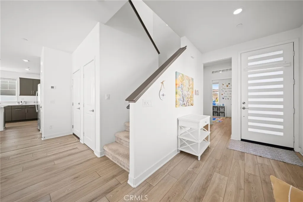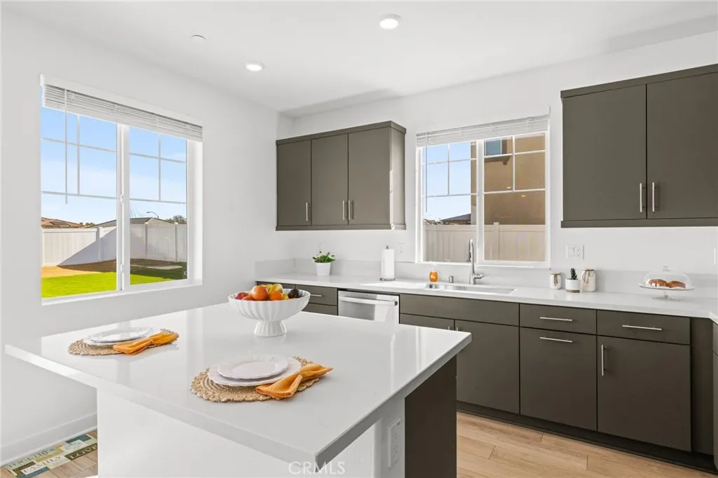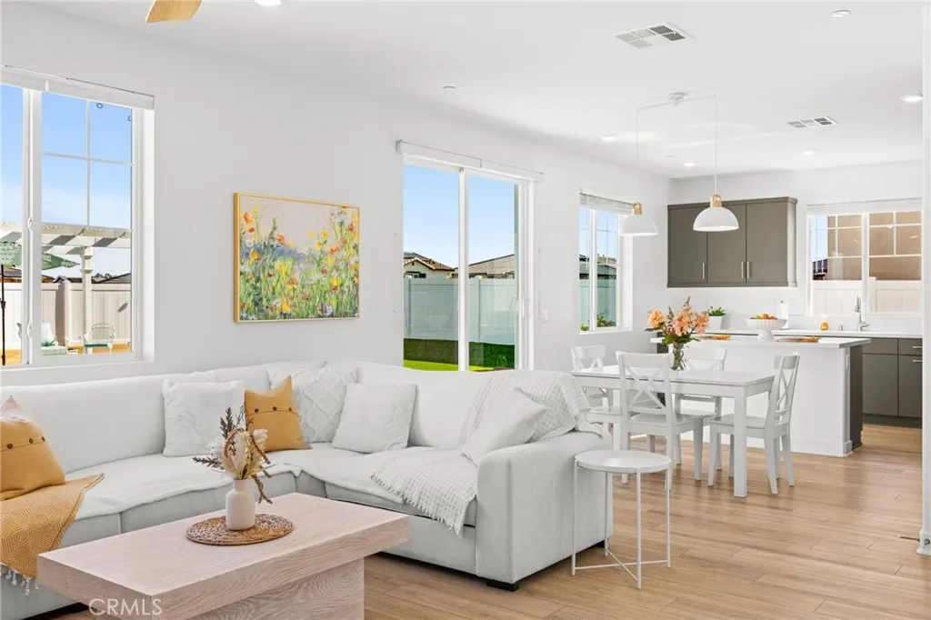 Welcome to this Desirable Quartz Ranch Spectacular Light Bright 1+year New Modern Farmhouse in the highly sought City of Menifee. Built in Nov 2024 this contemporary home offers 1824sq ft of thoughtfully designed living space. Located on a gorgeous oversized 7784 sq ft FLAT LOT, Fully Landscaped, White Vinyl fenced yard. Bask under the gorgeous white vinyl 12 x 12 Pergola on a 14x14 concrete island. All the yard is done in TURF, DG, and drought resistant plants. A gorgeous, beautiful EPOXY 3 CAR GARAGE, with OVERSIZED DRIVEWAY fitting up to 6 Cars. An additional beautiful Front Courtyard to enjoy the Sunsets and Breezes. LOW $56/mo LEASED SOLAR panels to be transferred to new owner Making Electric bill almost Nonexistent! Super LOW HOA $33/mo ! Tankless Water Heater for continuous nice hot showers. Step inside to an inviting Open-Concept floor plan filled with natural light, where the spacious great room flows seamlessly into the dining area and chef-inspired kitchen. The kitchen is the heart of the home, complete with center island, quartz countertops, stainless steel large sink and appliances, abundant cabinetry, pantry, designer ceiling fan and a designer lamp, perfect for everyday living and entertaining. All downstairs is done in Luxury VINYL PLANK FLOORS, And RECESSED LIGHTING throughout the home! A versatile downstairs office/den offers the flexibility to function as a fourth bedroom, guest room, or private workspace, conveniently located near a half bathroom on the main floor. Upstairs, youll find 2 secondary bedrooms, a full bathroom. A separate luxurious primary s