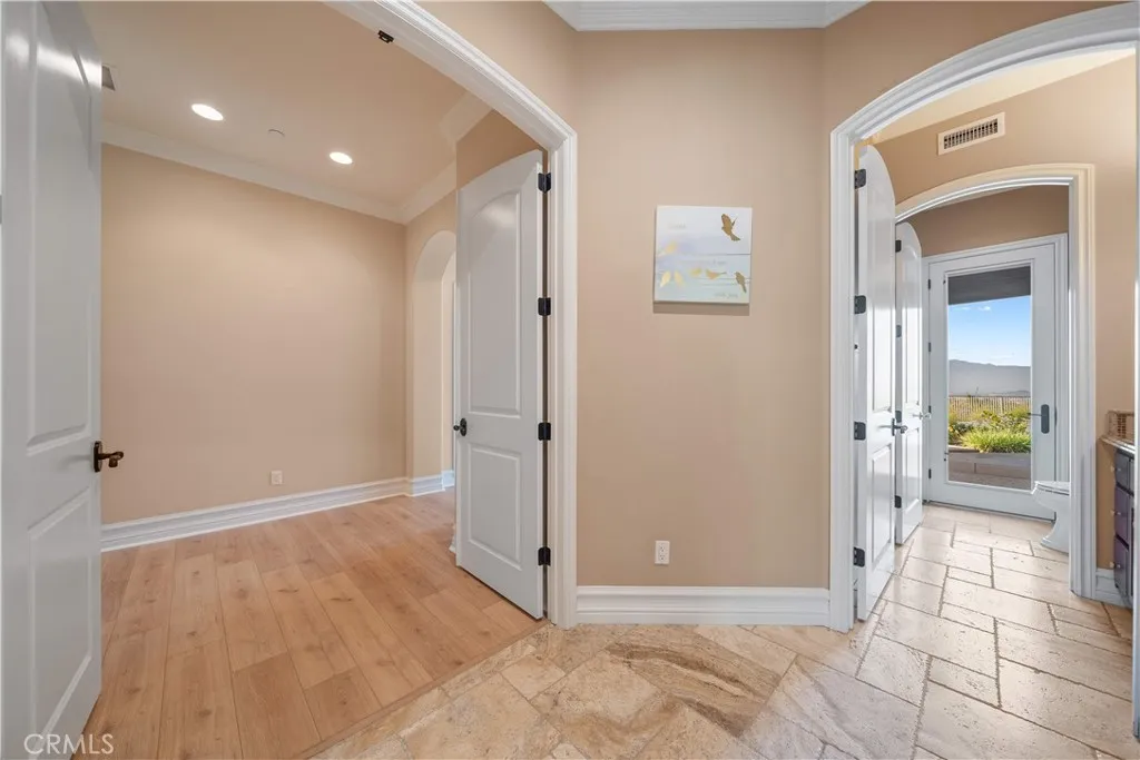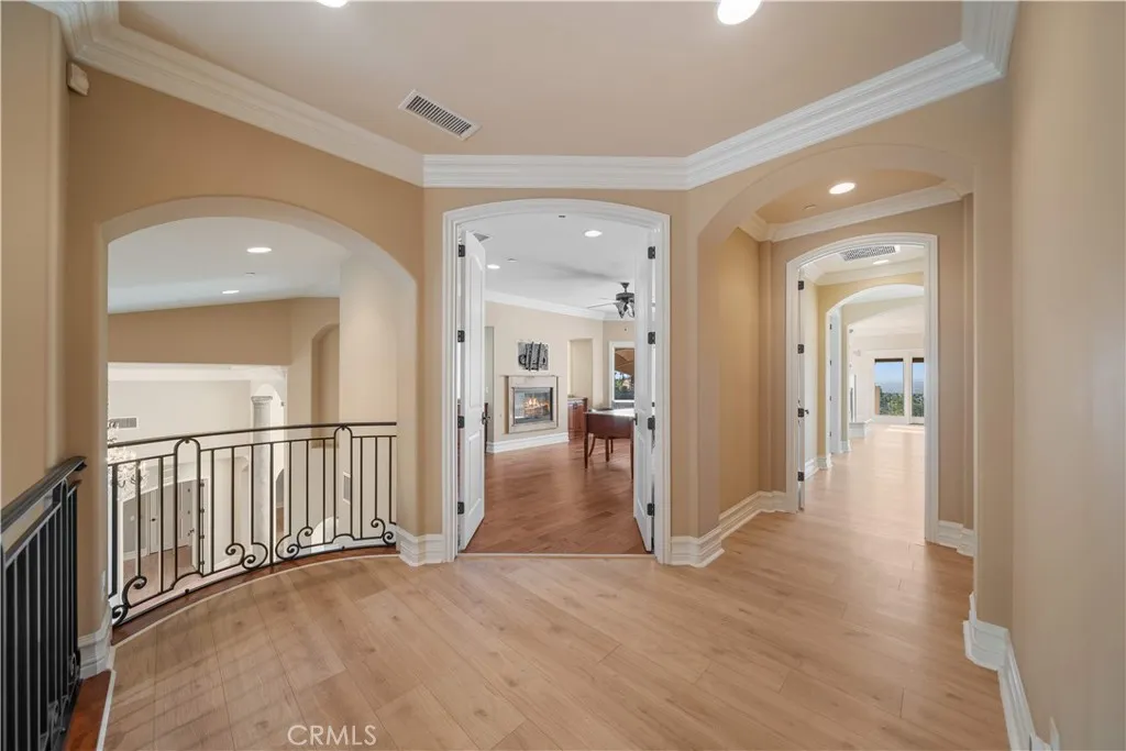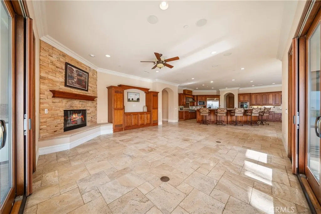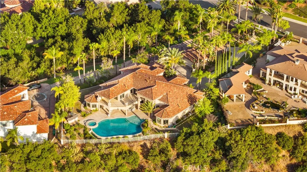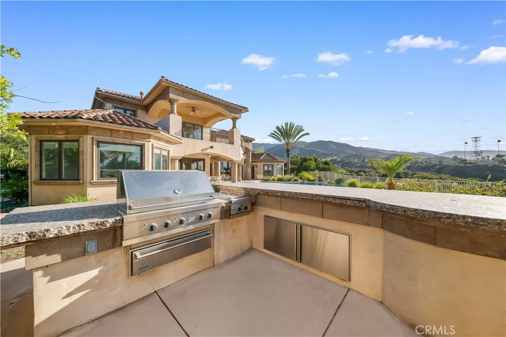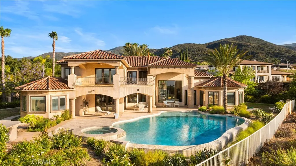 Welcome to your own private resort paradisean extraordinary custom-built estate where every day feels like a luxury five-star getaway while enjoying complete privacy and tranquility. Hidden behind private gates, this architectural masterpiece is a rare offering, meticulously designed with uncompromising craftsmanship, refined elegance, and exceptional attention to detail. Unlike any semi-custom homes in Corona, this residence stands in a class of its own. Upon arrival, dramatic floor-to-ceiling glass walls immediately reveal breathtaking panoramic views of the city skyline and surrounding mountains, creating a stunning visual experience that carries throughout the home. Designed for both luxury living and grand entertaining, the estate offers five generously sized en-suite bedrooms, A private office on the second floor captures sweeping city views, providing an inspiring and peaceful environment for work or reflection. At the heart of the residence is a spectacular chefs kitchena true showpiece for culinary enthusiasts. Outfitted with top-of-the-line stainless steel appliances, elegant granite countertops, an expansive center island, and a large walk-in pantry, the space is both sophisticated and highly functional. The kitchen opens seamlessly to the spacious family room, creating a perfect setting for both intimate gatherings and large-scale entertaining. Step outside and experience resort-style living at its finest. The outdoor living spaces are thoughtfully designed with built-in eaves providing shade over the surrounding deck areas, all centered around a breathtaking ov