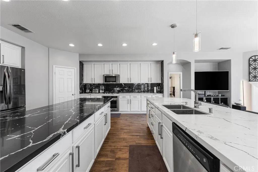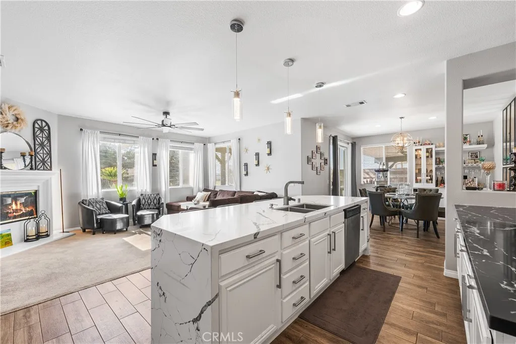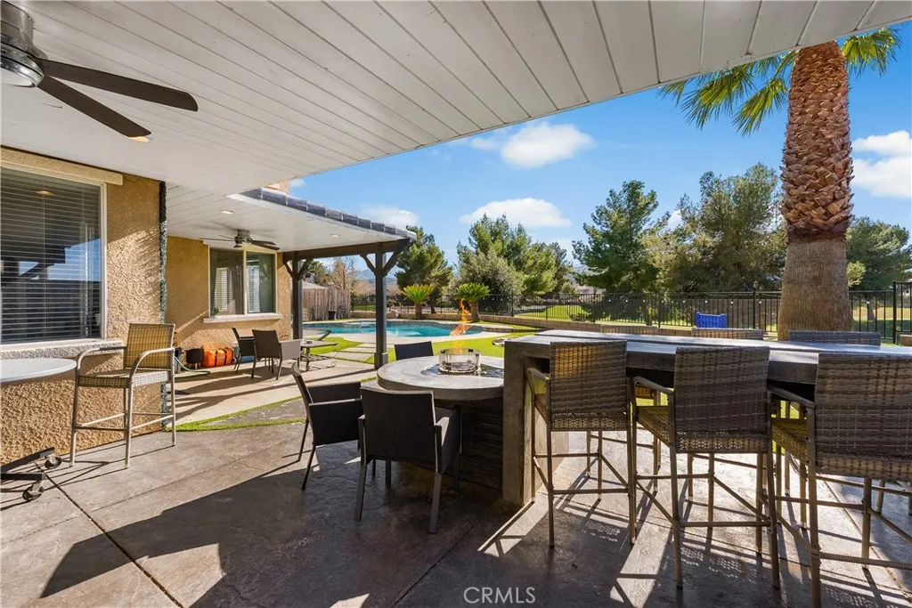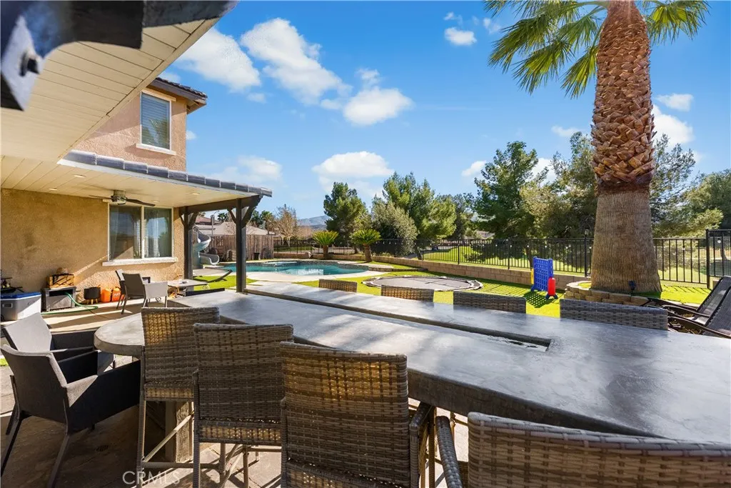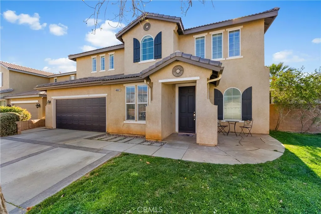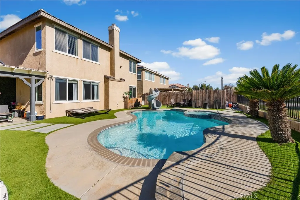 ***LUXURY POOL & SPA HOME LOCATED IN GOLF COURSE COMMUNITY*** Nestled on a serene cul-de-sac with a premium view lot overlooking the 7th hole, this stunning West Palmdale home offers the perfect blend of luxury, flexibility, and resort-style living. As you approach, a charming front porch greets you, setting the tone for this exceptional property. Inside, soaring ceilings and a formal sitting room lead to a versatile flex space, currently a sports roomeasily adaptable as a downstairs bedroom, guest suite, or office. The main floor also features a full bedroom and a full bathroom, along with a convenient powder roomperfect for guests. The heart of the home is the open-concept chefs kitchen, dining, and family room, featuring double islands with upgraded quartz countertops, a walk-in pantry, and a coffee/buffet station. This seamless layout flows directly to the backyard, creating a perfect indoor-outdoor entertaining experience. Upstairs, youll find spacious guest bedrooms, a flexible loft office space, and a large primary suite with dual vanities, a soaking tub, and a separate shower. The home offers the possibility of up to 6 bedrooms and 4 bathrooms, ensuring room for every need. Step outside to a backyard oasis designed for year-round enjoyment. The resort-style pool with a waterslide, spa, fire pit, outdoor fireplace, and barbecue area all converge around two covered spaces: one a cozy lounge, the other a movie or TV areaperfect for relaxing or entertaining. A stunning fire and water feature, along with low-maintenance turf, completes this dream backyard. Located in a s