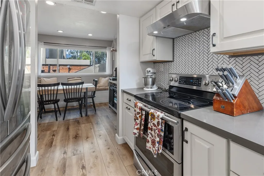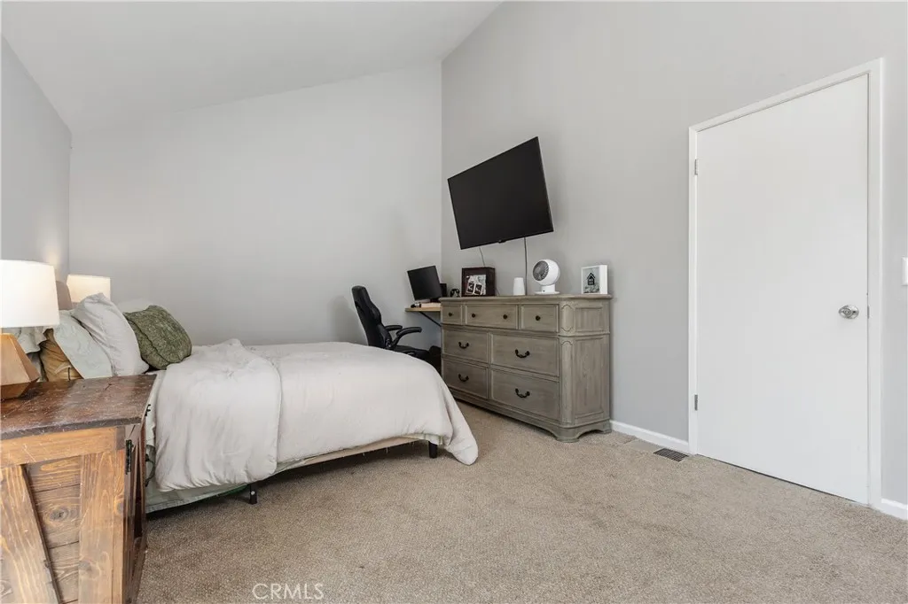 Welcome to this beautifully updated residence in the highly sought-after North Towne Park community, where modern design and everyday comfort come together in one inviting space. This 2-bedroom, 1.5-bath home offers 1,146 square feet of thoughtfully curated living with stylish finishes and a light, airy ambiance throughout. Step inside to a bright and inviting living room featuring soaring vaulted ceilings, a cozy fireplace, and updated vinyl flooring that flows seamlessly through the main living areas. Sliding glass doors from the living room lead to a private patio accented with string lights, creating an inviting outdoor space perfect for relaxing or entertaining. At the heart of the home, the upgraded kitchen showcases quartz countertops, stainless steel appliances, white shaker cabinetry, and a striking white and black herringbone backsplash that adds the perfect designer touch. Upstairs, both bedrooms are generously sized and filled with natural light, each featuring vaulted ceilings that enhance the homes open feel. The primary bedroom offers a comfortable retreat, complete with an ensuite bathroom, a spacious closet with built-in organizers, and a private balcony. Downstairs, a convenient powder room includes an updated vanity along with an in-unit washer and dryer. Additional highlights include a one-car attached garage plus an additional covered carport space for added convenience. Residents of North Towne Park enjoy access to community amenities including a pool, spa, clubhouse, and lush greenbelts. Ideally located within the award-winning Claremont School Distri