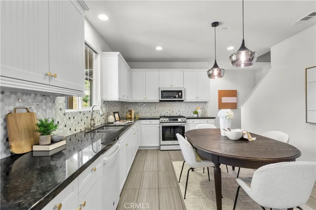Located in the gated community of River Village, this spacious 4-bedroom, 4-bathroom tri-level townhouse offers flexible living, mountain views, and thoughtful upgrades throughout. The entry level welcomes you with a formal foyer that opens to a generous living roomperfect for relaxing or entertainingalong with a full bathroom and a private patio featuring a small turf yard, ideal for outdoor lounging, pets, or a bit of greenery without the maintenance. Laminate flooring and recessed lighting create a clean, modern feel. The second floor features a bright open-concept layout with 9-foot ceilings. The kitchen includes granite countertops, white shaker cabinetry, stainless steel appliances, and ample prep space, flowing easily into the main living and dining areas. This level also offers a bedroom and full bathroom, plus a long balcony with mountain viewsperfect for morning coffee or evening sunsets. Upstairs, the third floor hosts three additional bedrooms and two bathrooms, including the spacious primary suite with custom closet organization. A temperature-controlled wine cellar adds a unique and unexpected feature thats perfect for wine lovers and entertaining. Additional highlights include direct access to a two-car garage with built-in cabinets for extra storage. Residents enjoy River Village amenities including a gated pool and spa, barbecue and picnic areas, and a playground, creating an easy, community-oriented lifestyle. Move-in ready with wonderful pride of ownership, this home offers the comfort, flexibility, and location todays buyers are looking for.