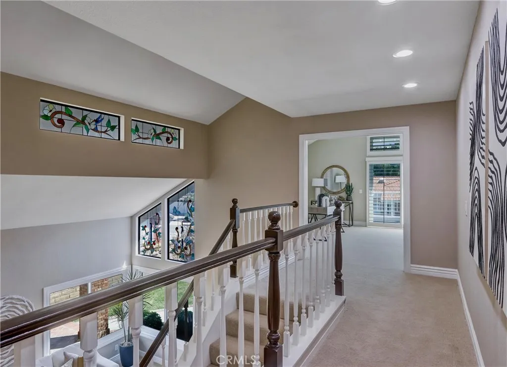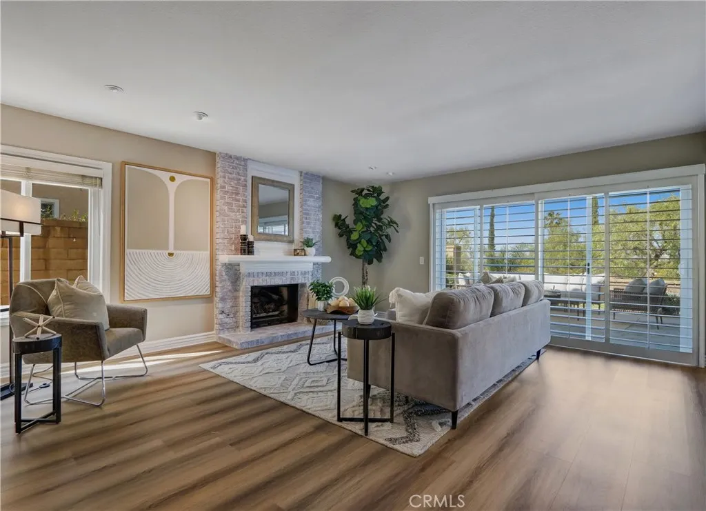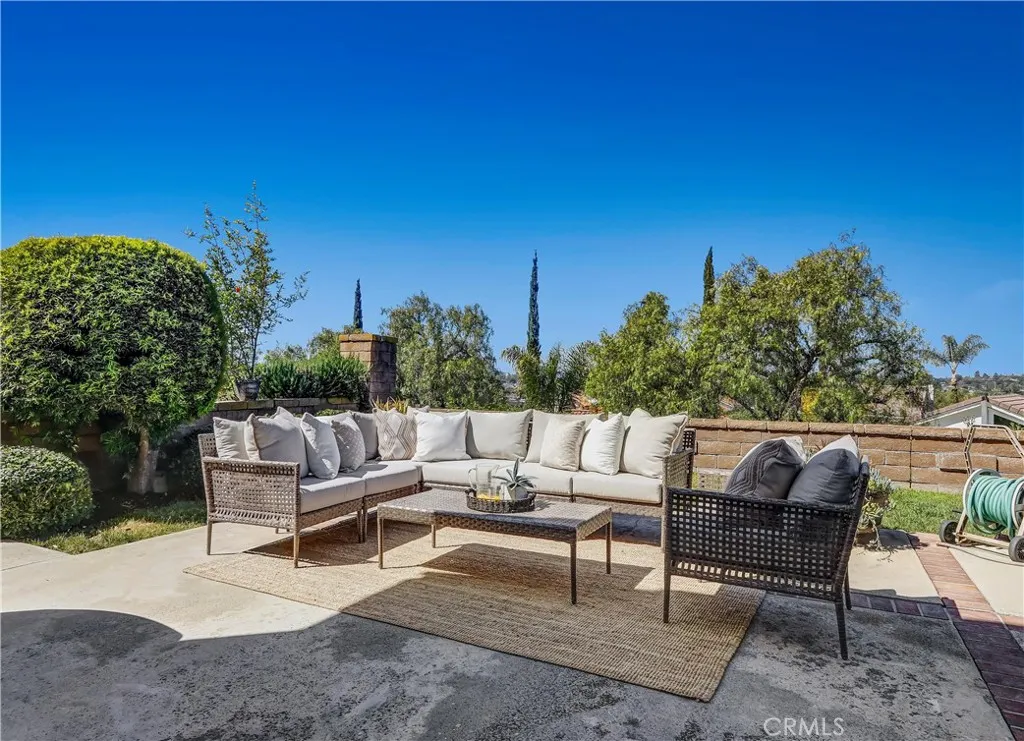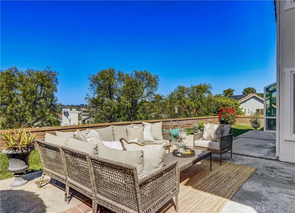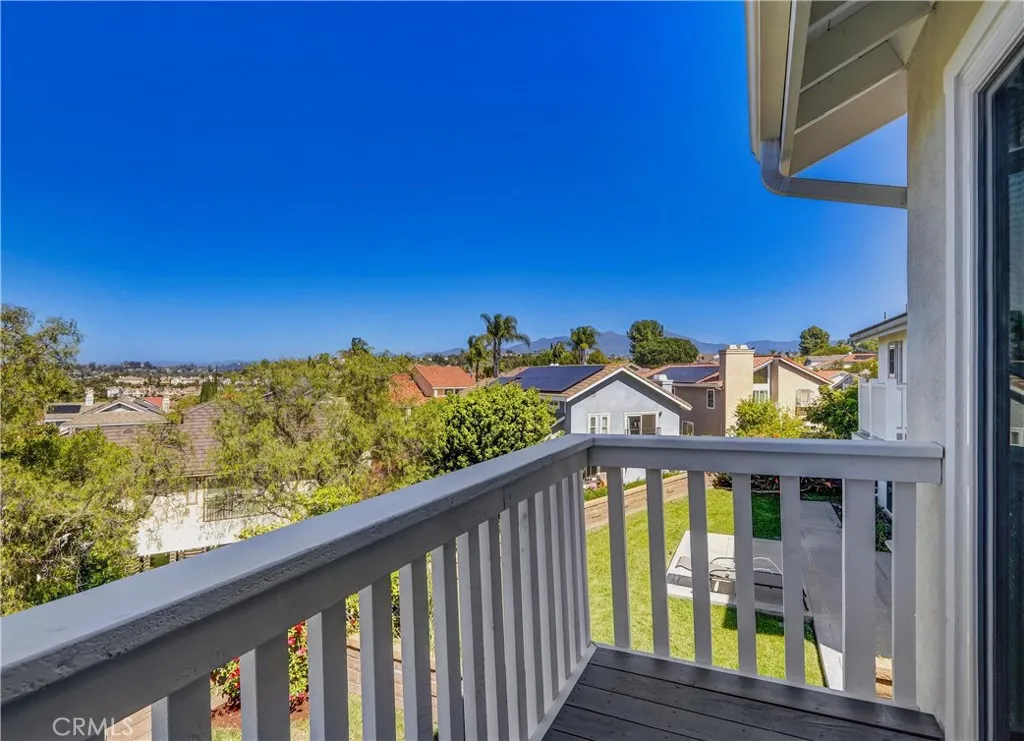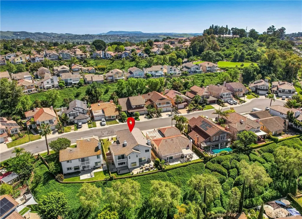 Welcome to your Forever home! Superbly located perched high on a cul-de-sac street, backing to a lush greenbelt, and blessed with panoramic Saddleback Mountains and City Lights views, this turnkey beauty has been thoughtfully updated and improved and is move in ready! Improvements include remodeled and updated kitchen and baths, new LVP floors, freshly painted inside and out, reglazed showers and tubs, updated LED lighting, new carpets and more! The classic exterior features and Herringbone brick walkways create a welcoming first impression. Pass through the vibrant double door entry and soak in the freshly painted interior, sleek Luxury Vinyl Plank flooring, charming stained glass accent windows, and soaring cathedral ceilings all creating a graceful living environment. Boasting the largest Galicia floorplan, this home provides ample space for modern families of all sizes. The light filled formal living room with its soaring ceilings is an impressive gathering space. The formal dining room with custom chandelier is perfect for elegant dining and entertaining. The completely remodeled kitchen has been beautifully updated with Granite countertops, glass tile backsplash, timeless Shaker cabinetry, Stainless-Steel appliances including a highly desirable double drawer dishwasher, upgraded pulls and fixtures, recessed lighting, with a sunny breakfast nook overlooking the backyard and an open pass through to the family room. The separate family room has a cozy fireplace and direct access to the backyard patio, a perfect indoor-outdoor living space for entertaining friends and fam