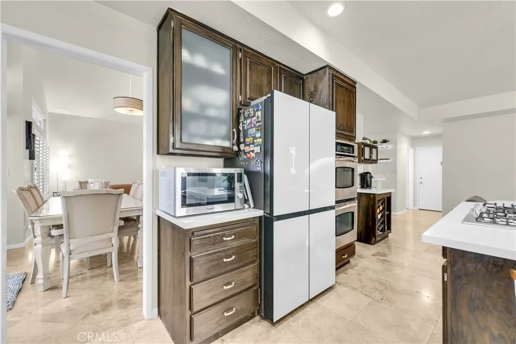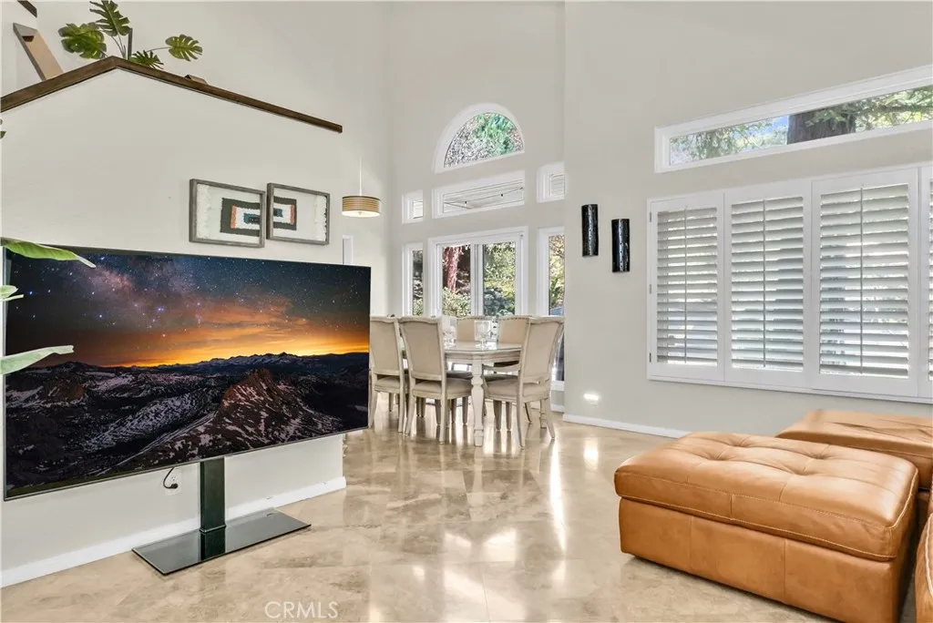Welcome to this beautifully updated home featuring a freshly painted exterior, newer roof, newer windows and owned solar which reduces the electric bill. As you arrive, you're greeted by a large front yard and covered patio, perfect for relaxing. Inside, the home offers 4 spacious bedrooms, the first floor bedroom which is being used as an office can easily be made back to a bedroom and the first floor nearby remodeled bathroom offers a bidet and modern floating vanity. The primary suite is filled with natural light from numerous windows and features a stylishly updated contemporary bathroom and walk in closet. Step into the main living space with travertine flooring and soaring vaulted ceilings, creating an open and inviting atmosphere. The kitchen is designed for both everyday living and entertaining, featuring beautiful quartz countertops, a large island with cooktop, double ovens, and a spacious pantry closet. An entertaining bar with quartz countertop provides the perfect gathering space for family guests. The backyard is truly an entertainers dream. Enjoy a covered patio with surround sound speakers, multiple fruit trees, and a stunning waterfall into the saltwater pool and spa with a lagoon-style color. Additional highlights include a newer pool pump, large fire pit, and outdoor bar area, making it ideal for hosting gatherings year-round. Tall pine trees and beautiful backyard views complete this private outdoor retreat. Conveniently located close to schools, shopping, restaurants, and easy freeway access, this home offers the perfect blend of comfort, style, and con