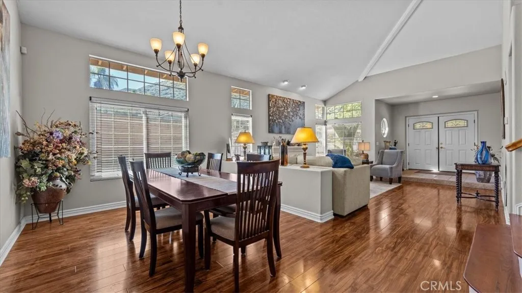 Located in the highly sought-after Sierra Del Oro community of Corona, this corner lot home offers generous living space, natural light, and neighborhood, hillside, and mountain views, with a prime location between Riverside and Orange County. This 4-bedroom, 3-bathroom residence offers 2,394 sq ft of living space, featuring a main-level primary bedroom and bathroom, along with spacious living and family rooms with a fireplace and a formal dining area. The primary suite includes a walk-in closet and a separate tub and shower. Additional highlights include new flooring upstairs, new carpet, cathedral ceilings, indoor laundry, a 3-car attached garage, solar, low HOA, and low property taxes. Ideally located in a commuter-friendly area near the 91 and 71 freeways with convenient access to toll roads, offering an easy commute to Orange County, as well as close proximity to parks, schools, restaurants, grocery stores, and everyday amenities.