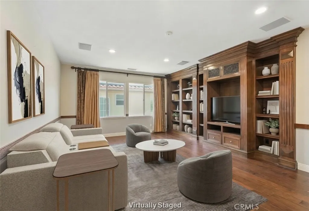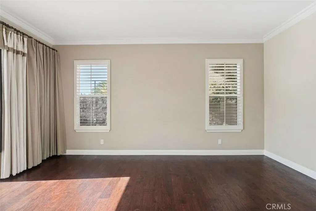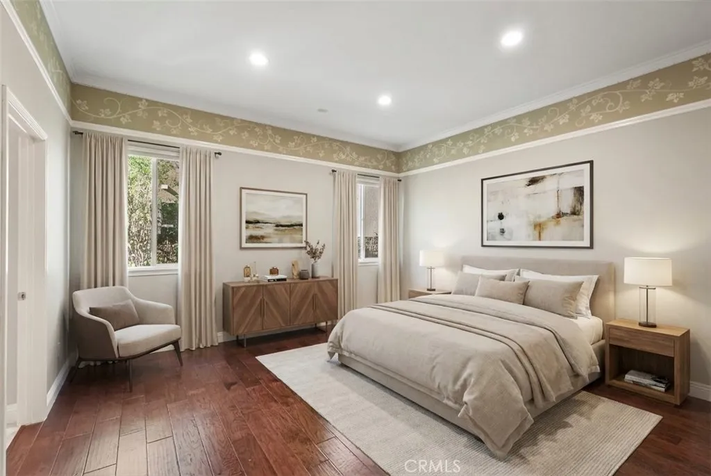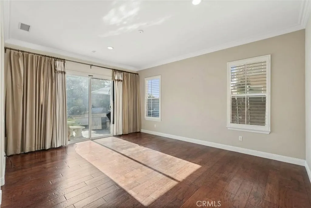 Welcome to this Renaissance Estate located in a highly sought-after guard-gated community. Originally built as a former model home, this residence showcases refined upgrades and one of the neighborhoods most desirable and limited floor plans, only a handful were ever built. Offering the versatility of a two-story layout with the rare convenience of a primary suite on the main level, the home lives comfortably as either a single-story or a spacious two-story retreat. Step through elegant glass entry doors into a light-filled open floor plan featuring gleaming marble floors, crown molding and soaring ceilings. Just off the entry, a versatile bedroom /office with custom built-ins, wainscoting and wood flooring makes an ideal home office or guest suite, complemented by an adjacent guest bath with a custom-tiled walk-in shower. The bright and inviting chefs kitchen features modern cabinetry, upgraded quartz countertops, stainless steel appliances and additional storage within the breakfast nook. Open to the family room, the space is enhanced by custom built-ins, a beautifully detailed fireplace mantel and sliding doors that frame peaceful backyard views. Privately situated, the spacious main-level primary suite is filled with natural light and offers direct backyard access through sliding doors. The spa-inspired ensuite includes a soaking tub, oversized separate shower, dual vanities and a generous walk-in closet. A third downstairs bedroom with its own private bathroom and separate vanity area provides comfortable accommodations for guests or multigenerational living. Upstairs,