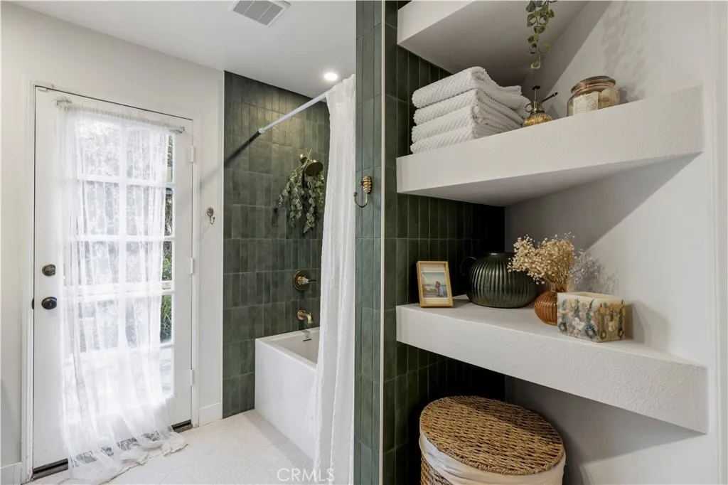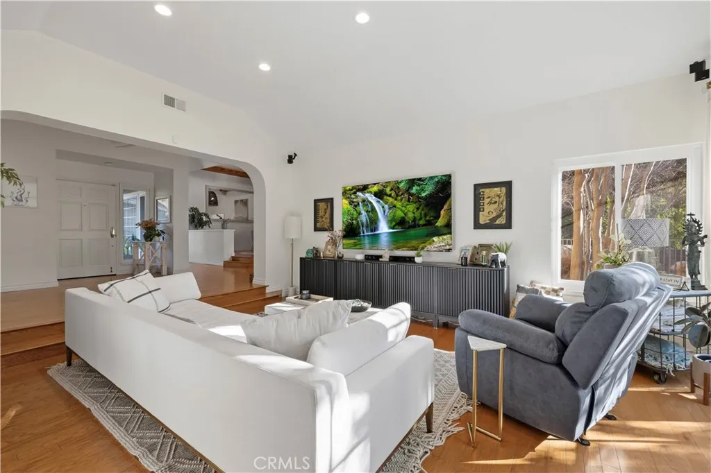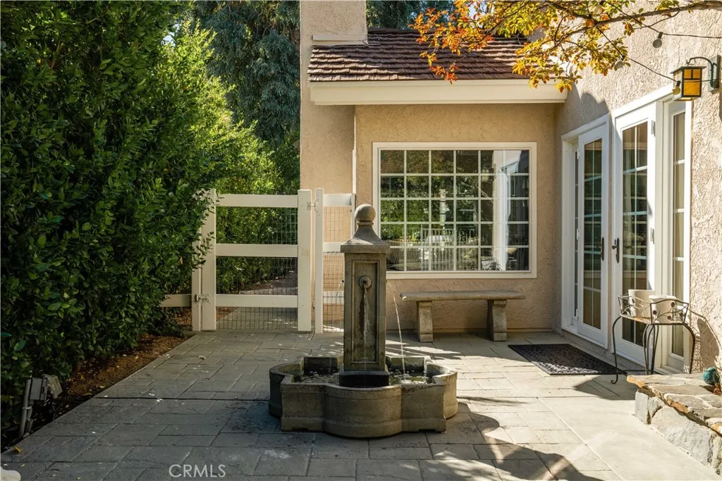 This stunning single-story home sits on a flat one-acre lot and offers rare privacy and natural beauty. Anchored by a massive mature oak tree and surrounded by lush greenery, including a striking eucalyptus tree whose branches are used for the fresh eucalyptus in the guest bathroom shower, the setting feels peaceful and almost storybook-like. The home features 4 bedrooms, 3 bathrooms, and 3 fireplaces, including one in the primary suite, one in the guest bedroom, and another near the entertaining bar area. The primary suite offers dual walk-in closets with custom shelving. The expansive driveway and oversized front yard create an impressive arrival with plenty of parking. Inside, the home has been upgraded with engineered red oak hardwood flooring, new high-end lighting fixtures throughout, and new ceiling fans and lighting installed within the last two years. The den/bedroom includes custom built-in cabinetry with a rift-sawn white oak countertop, and a large dual-pane window was added to the front bedroom for natural light and greenery views. Two bathrooms were remodeled within the last year. The guest bathroom features a deep soaking tub, porcelain tile surround, custom shelving, terrazzo tile flooring, quartz countertops, soft-close cabinetry, and high-end knurled hardware. All shower and faucet fixtures are new with a champagne brass finish. The home includes two Nest-controlled HVAC systems, a whole-home water softener and filtration system, and alkaline reverse osmosis at the kitchen sink. Storage is plentiful with two large attic spaces. The temperature-controlled w