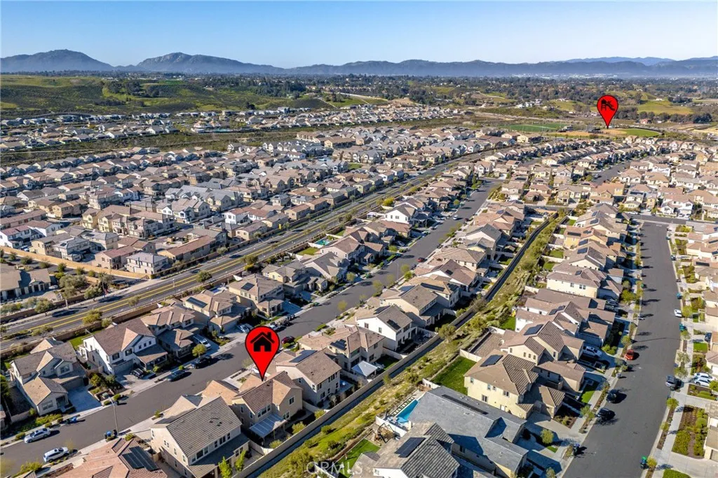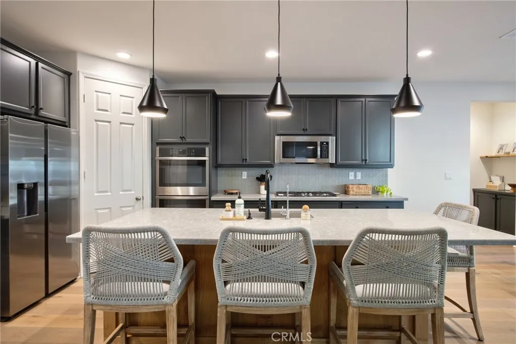 Welcome to the beautiful Sommers Bend community in the heart of Temecula. This spacious 4-bedrooms home, with a den that can easily serve as a 5th bedroom, offers the perfect combination of comfort, style, and everyday functionality. Even better, the home comes with paid-off solar panels, helping you enjoy energy efficiency from day one. As you enter the home, youll immediately notice the warm and welcoming feel created by the gorgeous white oak wood flooring throughout the downstairs and the abundance of natural light that fills the space. The thoughtfully designed floor plan includes a convenient downstairs bedroom and full bathroom, perfect for guests or multi-generational living. The den provides flexible space that can be used as a home office, playroom, or additional bedroom depending on your needs. The heart of the home is the open and inviting kitchen, featuring stainless steel appliances, a double oven, walk-in pantry, quartz countertops, and a large center island that doubles as a breakfast bar. Its a wonderful space for cooking, gathering, and entertaining family and friends. Upstairs, youll find three additional bedrooms, including the spacious primary suite with a walk-in closet and a relaxing en suite bathroom with dual sinks, a soaking tub, and a separate shower. One of the secondary bedrooms even includes its own walk-in closet. The upstairs also offers a large laundry room with sink and cabinetry, adding convenience to your daily routine. Step outside to your private backyard retreat, where you can relax under the covered patio or host gatherings around the