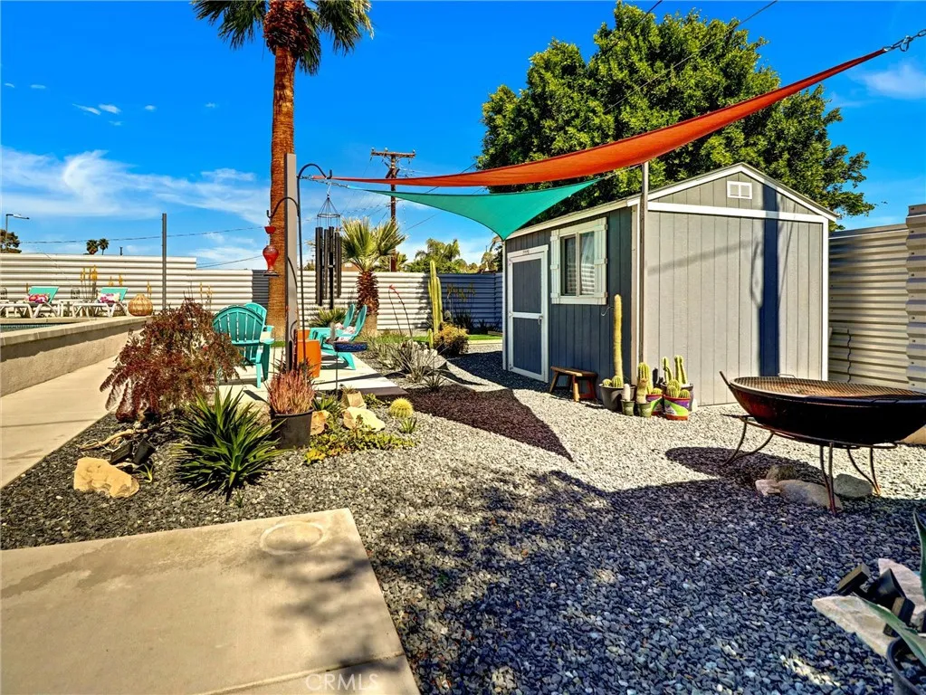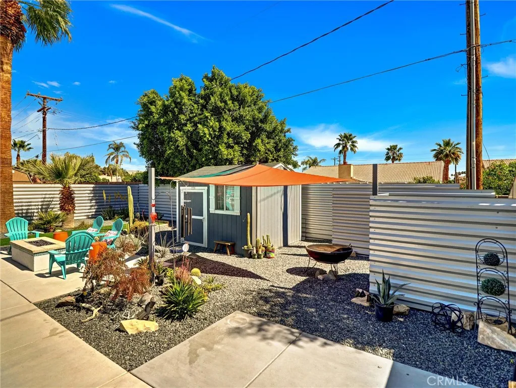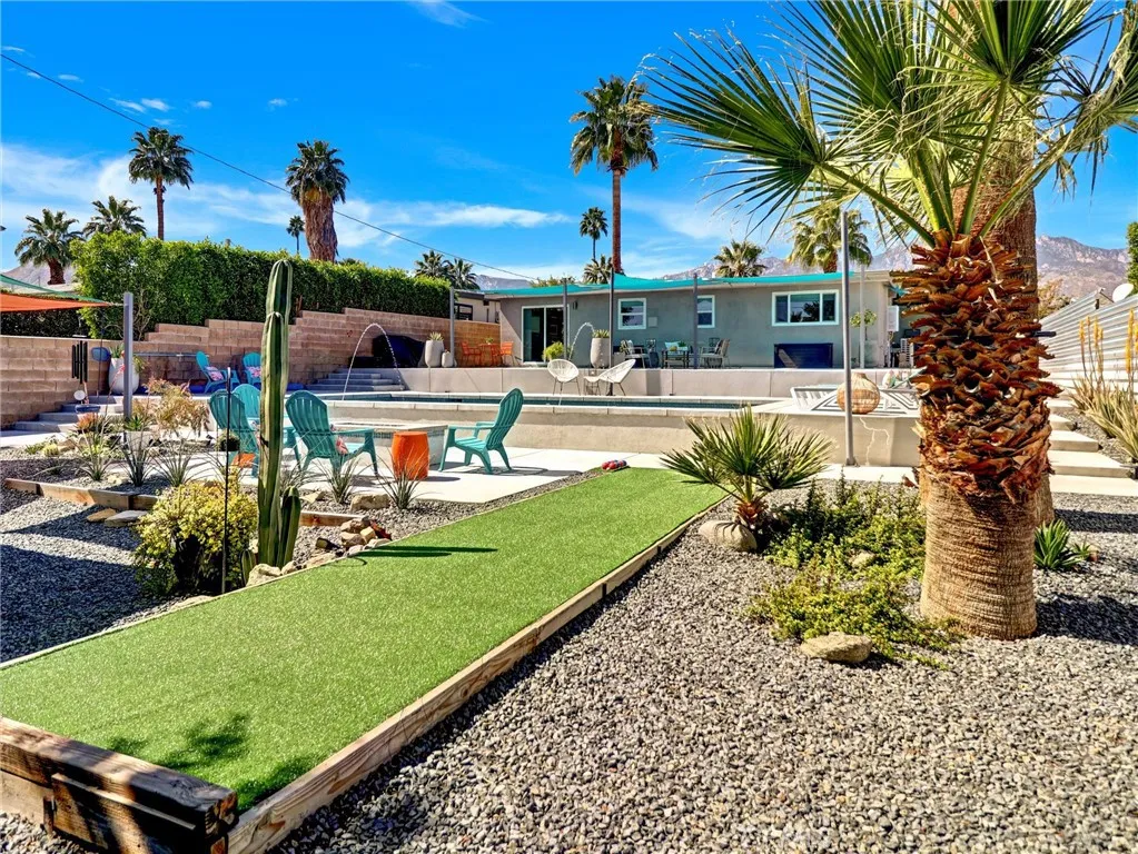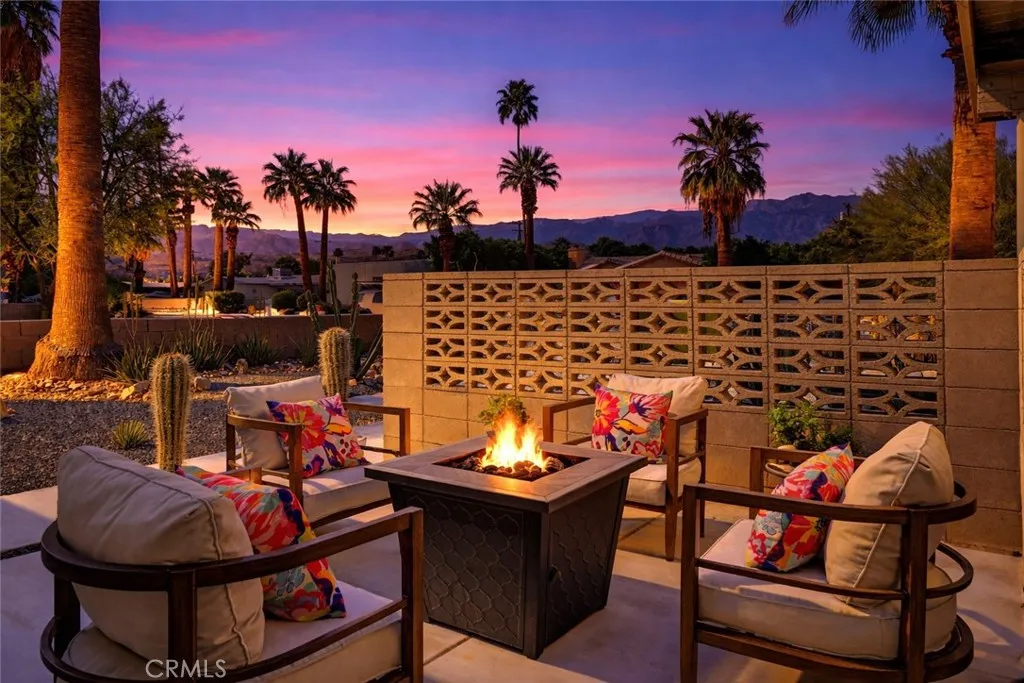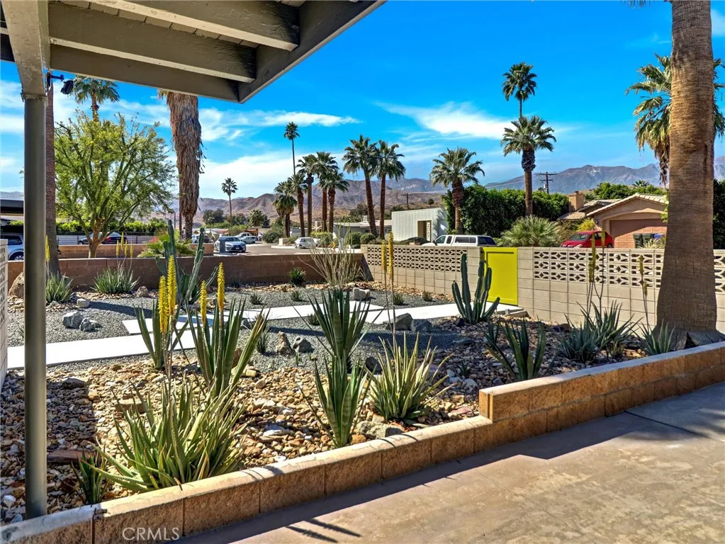 Welcome to 2020 Lawrence Street, a beautifully upgraded mid-century modern home in Palm Springs offering mountain views, thoughtful improvements, and the relaxed lifestyle the desert is known for. With no HOA and low taxes, the property sits just a short walk away from the Tahquitz Creek Golf Resort. Also a short distance from shopping, restaurants, and Palm Springs International Airport. The CV Link trail system is steps away, providing miles of pathways for biking, walking, and golf cart access across the Coachella Valley. The homes outdoor spaces are designed for enjoying the desert climate year-round. The backyard features a Pebble Tec saltwater pool with waterfall and fountain features, custom lighting, shade sails, and a gas fire pit that creates a welcoming space for relaxing evenings or entertaining guests. Multiple seating areas and low-maintenance desert landscaping take advantage of the surrounding San Jacinto and Little San Bernardino Mountain views. Inside, the layout is open and bright with windows that bring in natural light and connect the indoor living areas to the outdoor spaces. Porcelain tile flooring runs throughout main living areas, and the kitchen features quartz countertops and modern finishes that complement the homes architectural style. Both bedrooms include private bathrooms, offering comfort and privacy for residents or guests. A separate utility room with washer and dryer provides additional convenience. Numerous upgrades have been completed to improve efficiency and comfort, including energy-efficient windows, high quality insulation for heat