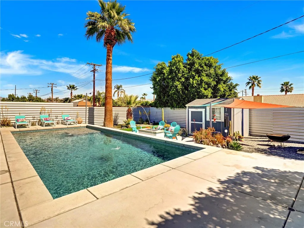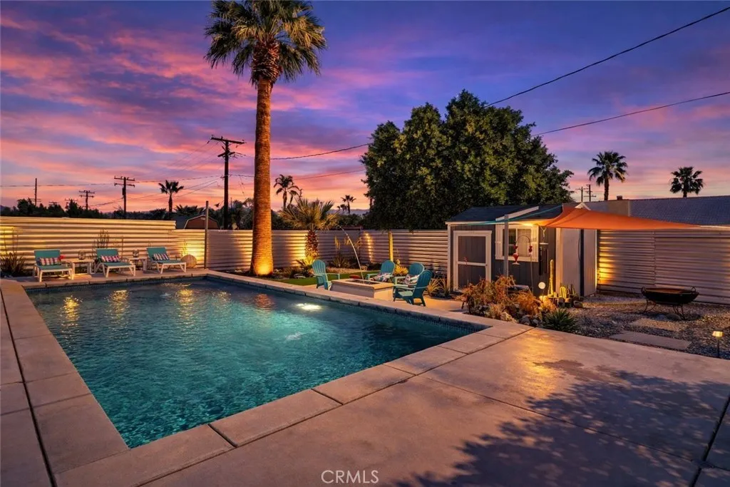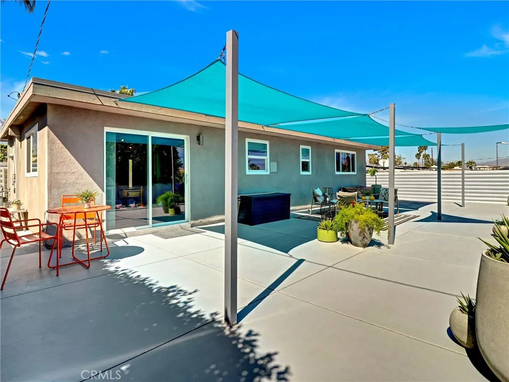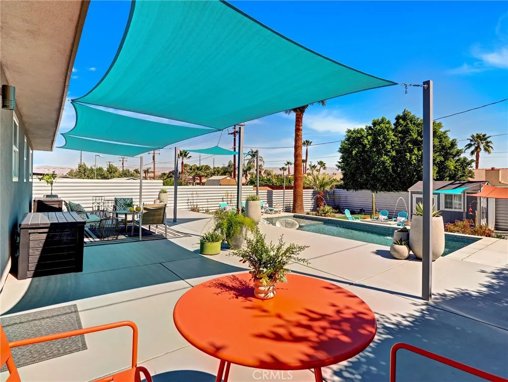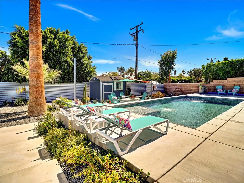 Welcome to 2020 Lawrence Street, a beautifully upgraded mid-century modern home in Palm Springs offering mountain views, thoughtful improvements, and the relaxed lifestyle the desert is known for. With no HOA and low taxes, the property sits just a short walk away from the Tahquitz Creek Golf Resort. Also a short distance from shopping, restaurants, and Palm Springs International Airport. The CV Link trail system is steps away, providing miles of pathways for biking, walking, and golf cart access across the Coachella Valley. The homes outdoor spaces are designed for enjoying the desert climate year-round. The backyard features a Pebble Tec saltwater pool with waterfall and fountain features, custom lighting, shade sails, and a gas fire pit that creates a welcoming space for relaxing evenings or entertaining guests. Multiple seating areas and low-maintenance desert landscaping take advantage of the surrounding San Jacinto and Little San Bernardino Mountain views. Inside, the layout is open and bright with windows that bring in natural light and connect the indoor living areas to the outdoor spaces. Porcelain tile flooring runs throughout main living areas, and the kitchen features quartz countertops and modern finishes that complement the homes architectural style. Both bedrooms include private bathrooms, offering comfort and privacy for residents or guests. A separate utility room with washer and dryer provides additional convenience. Numerous upgrades have been completed to improve efficiency and comfort, including energy-efficient windows, high quality insulation for heat