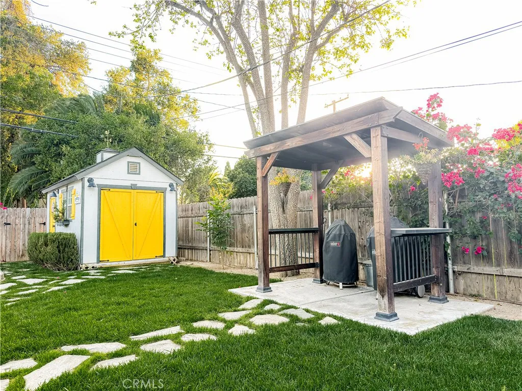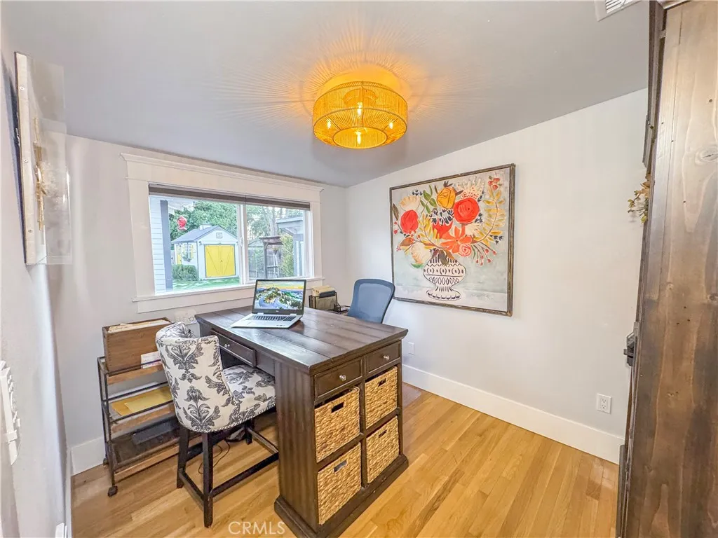 Located in the heart of Riverside's highly coveted Wood Streets Historic District, this stunning 1923 Craftsman bungalow home has been comprehensively reimagined every major system replaced, every surface thoughtfully elevated while preserving the timeless character that makes it a true jewel of one of Riverside's most treasured neighborhoods. Mature Juniper Canopy trees frame the front of the property, a long paver driveway welcomes you home, and the iconic yellow front door makes a statement before you even step inside. The open floor plan flows beautifully, anchored by rich 3/4" solid white oak hardwood floors, craftsman-style 7" baseboards, original doors and hardware, and period-appropriate window casings that honor the home's century-old roots. The kitchen is a true centerpiece featuring custom designer cabinetry with soft-close drawers and pull-out pantry, quartz countertops, a farmhouse sink, chimney-style vent hood, and a full KitchenAid stainless steel appliance suite including double oven, gas cooktop, dishwasher, and refrigerator. The third bedroom is currently used as an office with a garden view and no closet. Both bathrooms have been fully remodeled with double vanities, and the primary suite offers an ensuite bath and a walk-in closet. A cozy fireplace with gas logs anchors the living area with warmth and charm. The home's mechanicals and plumbing is fully renovated: full PEX plumbing throughout including the main line to the meter, updated electrical throughout with recessed lighting and ceiling fans, a complete HVAC system with ductwork installed from s