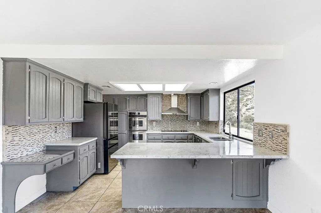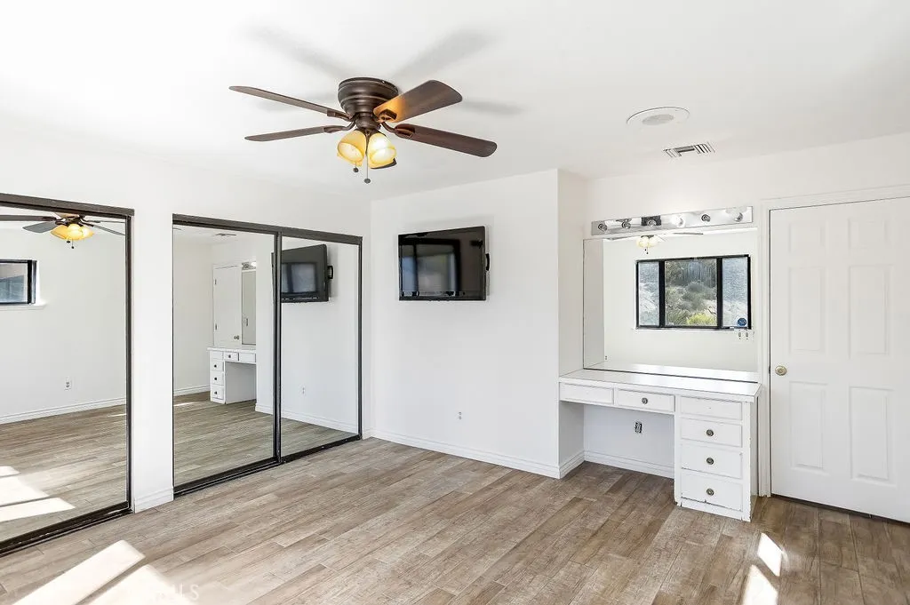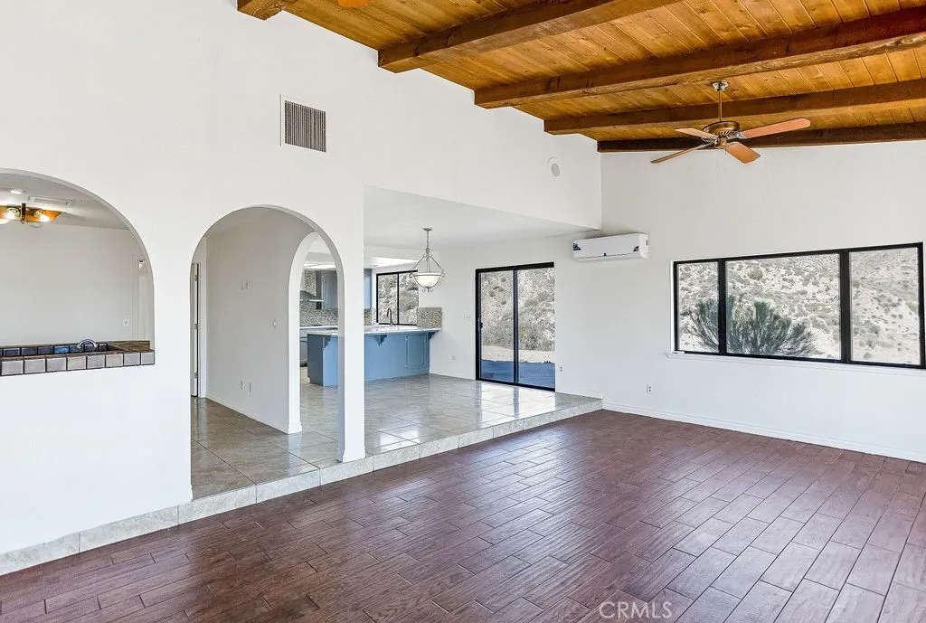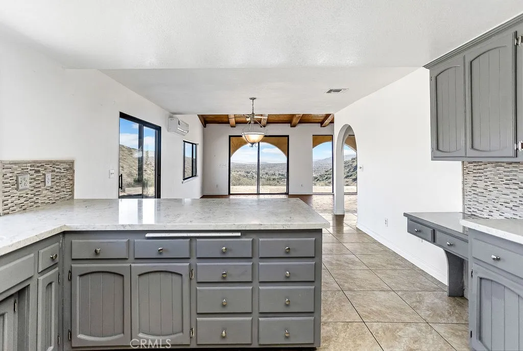 Price Reduced! ** Honey Stop The Car! ** The Mount Ridge Estate Is Finally Available! This stunning three-bedroom, two-bathroom Santa Fe home boasts over 2,335 square feet of living space, nestled atop your own private mountain and surrounded by 2.7 acres of prime high desert real estate! The drive to this unique property sets the mood. As you travel through one of the most sought-after neighborhoods, youll see well-cared-for homes adorned with lush desert flora and majestic mountains in the backdrop. As you pull up the private driveway, youre greeted by beautiful boulders, thoughtful landscaping, and a character-driven Santa Fe Adobe aesthetic. Walking through the double-gated courtyard, youll realize this is no ordinary home. Inside, youll be impressed by the modern open floor plan! Tile flooring, open wood beam high ceilings, and abundant natural light flow through oversized floor-to-ceiling windows, creating an airy feeling throughout. A beautifully designed dual fireplace featuring elegant tile and mid-century rock faades splits the den and large living room. Designed for entertaining, the remodeled kitchen opens to the dining and living areas. It boasts quartz countertops, a mosaic backsplash, stainless steel appliances, a double sink, and plenty of cabinetsperfect for culinary delights! Youll also find a spacious dining room with a luxurious wet bar outfitted with display cabinets and wraparound tile countertops. Each guest bedroom feels like a primary room and includes ample closet space, built-in desks, ceiling fans, and windows with a view! The guest bathroom feat
