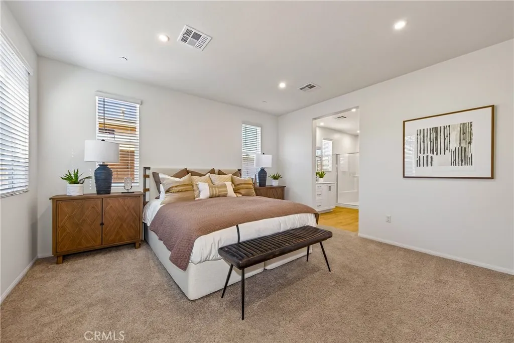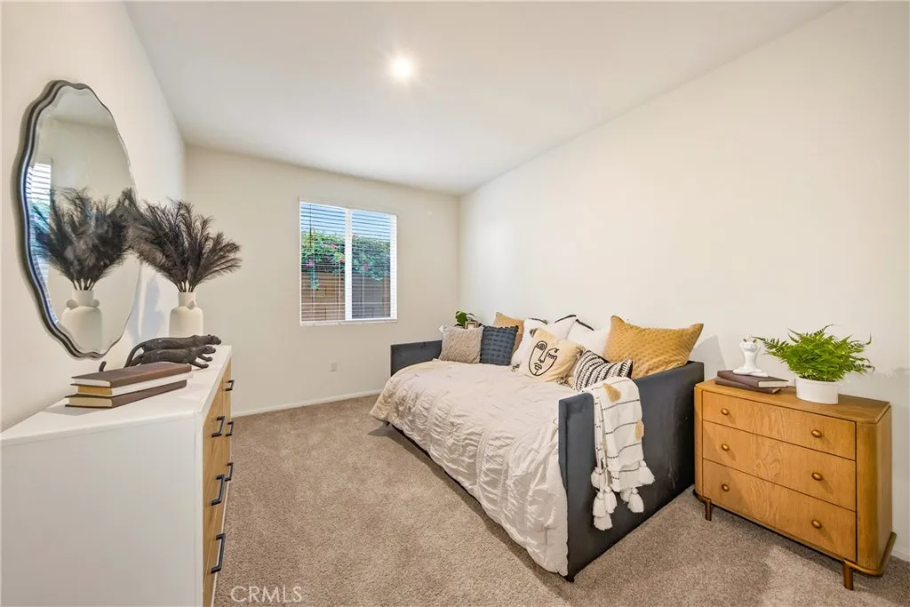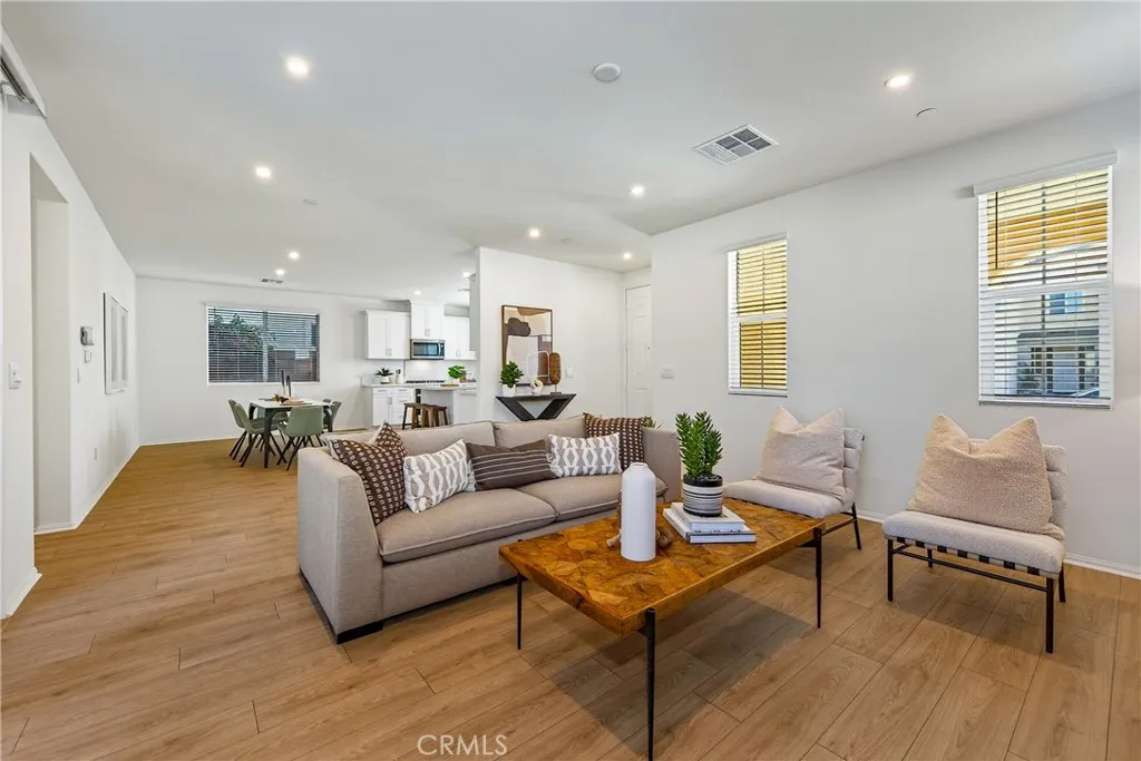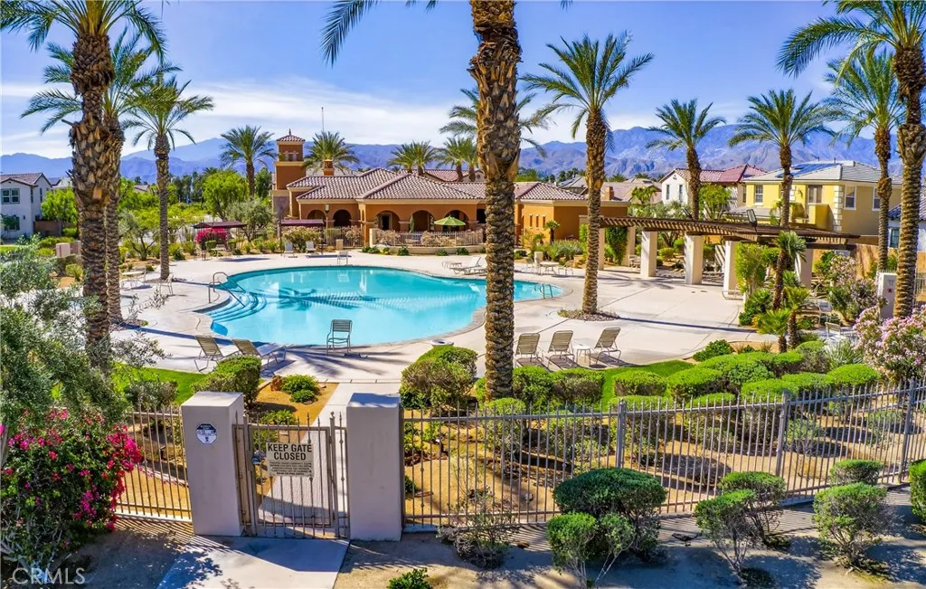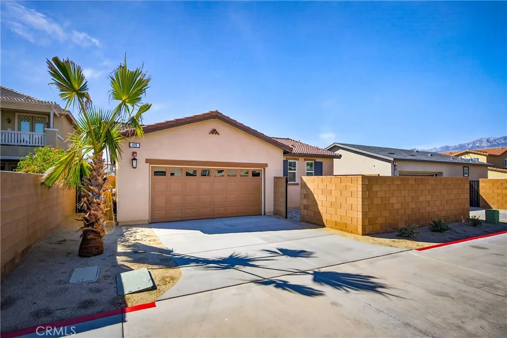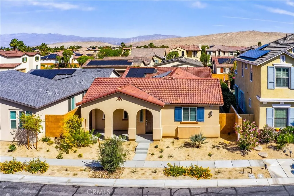 Desert elegance and relaxed resort living come together in this beautifully upgraded Spanish-inspired single-story home located in the gated community of Campanile in the heart of Cathedral City. A charming covered front porch with a beautiful arched design creates a warm architectural welcome and the perfect place to enjoy peaceful desert mornings. Showcasing 3 spacious bedrooms, 2 baths and approximately 1,913 sq. ft., this open concept residence with plenty of natural light blends style, comfort and effortless indoor-outdoor living. Thoughtfully designed with desirable upgrades, the interior showcases luxury vinyl plank flooring, recessed lighting and sleek white thermofoil cabinetry accented with custom hardware. The kitchen serves as the centerpiece of the home with stainless steel appliances, and kitchen island ideal for entertaining with a generous sized pantry. The expansive family room flows seamlessly to the covered patio where you can relax, host gatherings and enjoy the desert ambiance along with gorgeous desert and mountain views. Spacious bedrooms, window coverings throughout and a well-designed laundry room with upper and lower cabinetry plus dual folding counters enhance everyday convenience. Washer, dryer and refrigerator are included, creating true move-in ready appeal. Adding to the homes distinctive design, the property features a rear alley-loaded garage with windows that invite natural light while maintaining an attractive elevation and welcoming approach. Modern Home is Connected smart features and resort-style community amenities including pool, spa