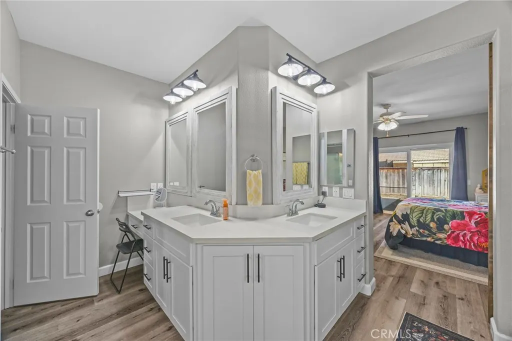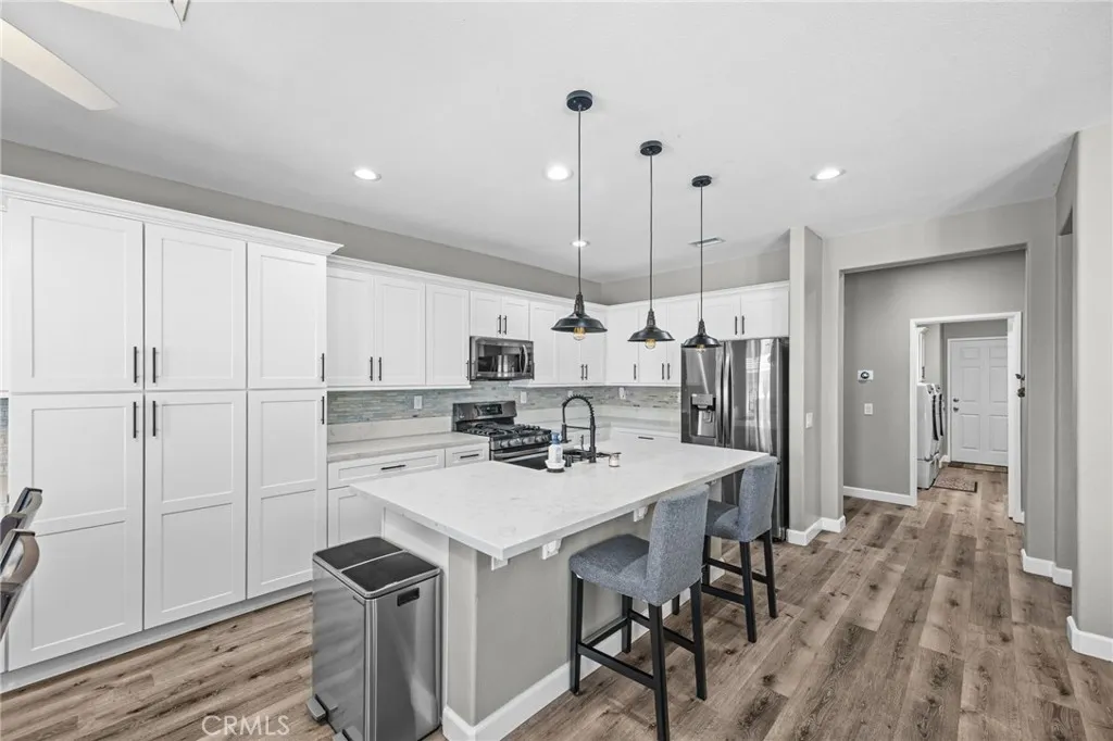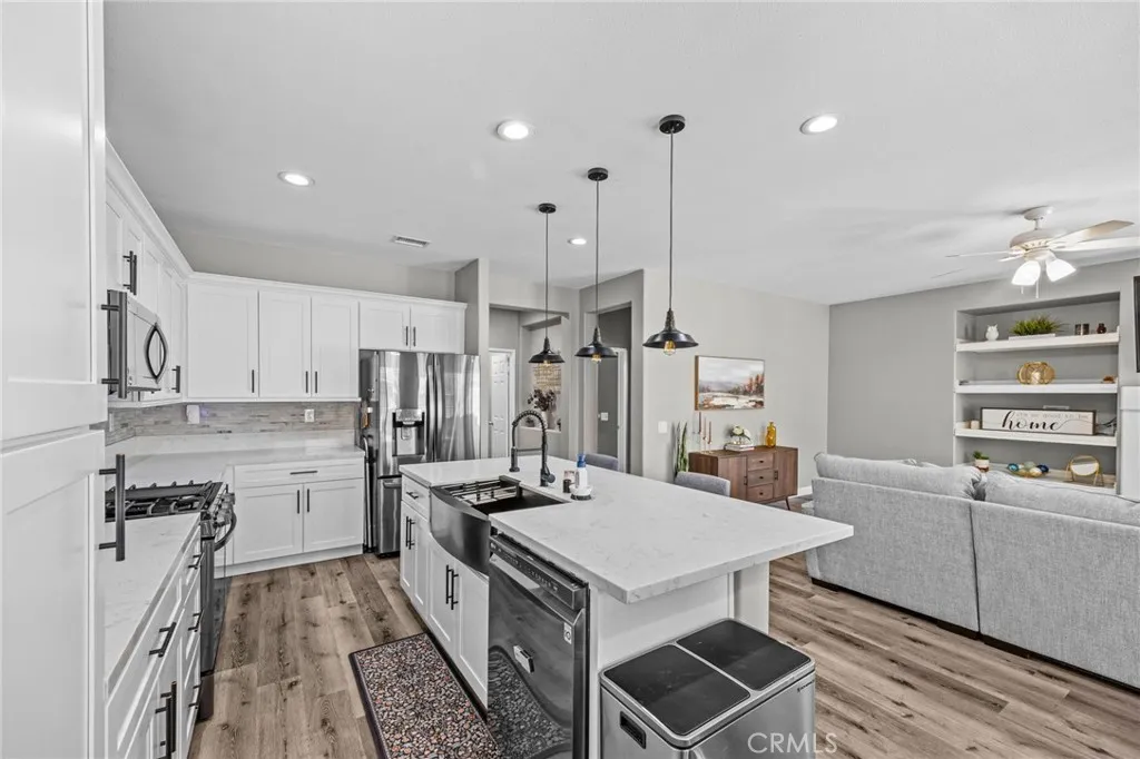 Highly upgraded throughout, this highly sought-after single-story ranch-style home offers 5 spacious bedrooms, 3 bathrooms, with 2470 square feet and RV parking. The home features luxury wood like flooring throughout, along with beautifully upgraded kitchen and bathrooms that add both style and functionality. The open-concept floor plan includes a large kitchen island overlooking the spacious family room, creating the perfect setting for entertaining and everyday living. In addition, the home offers a versatile bonus space at the front of the house that can easily be used as an office, sitting area, playroom, or flex space to fit your needs. Enjoy the charm of the covered front courtyard, ideal for relaxing or welcoming guests. Step outside to a landscaped backyard featuring a newly installed covered patio, perfect for outdoor gatherings and enjoying Southern California living. The property is equipped with leased solar systems to be assumed by the buyer. Roughly 3035 minutes to Lake Skinner and close to Temecula Wine country. Don't miss the opportunity to own this exceptional homeschedule your showing today!
