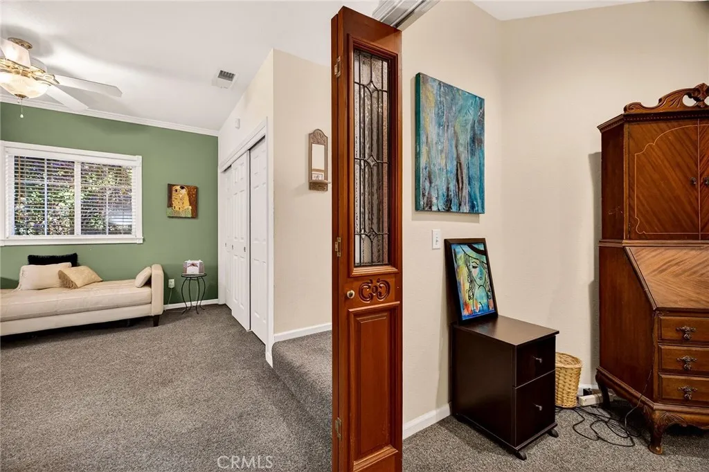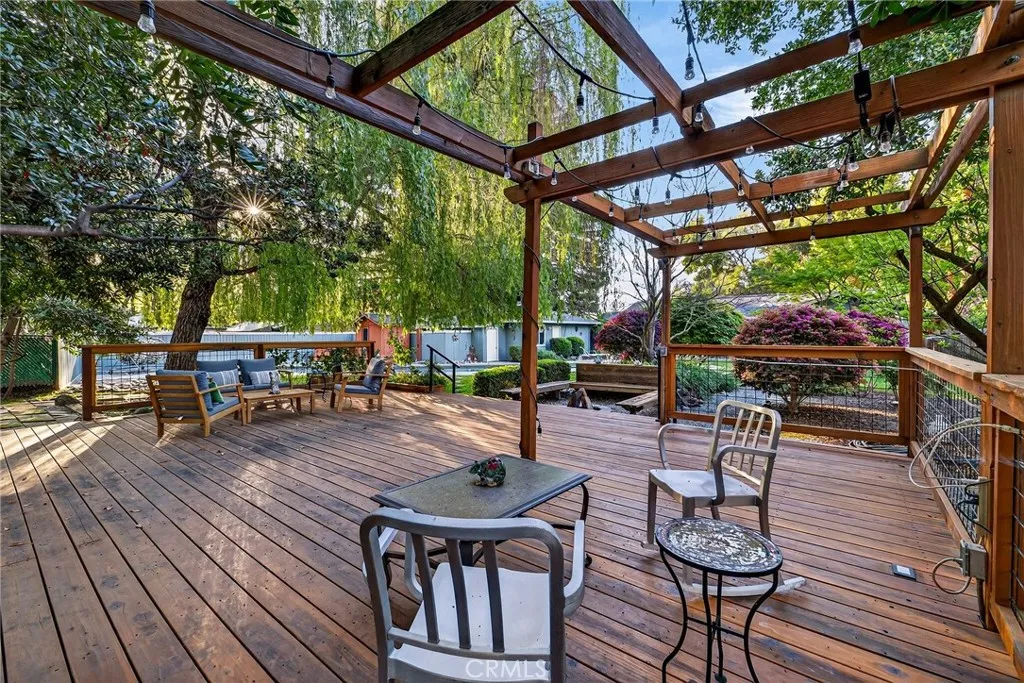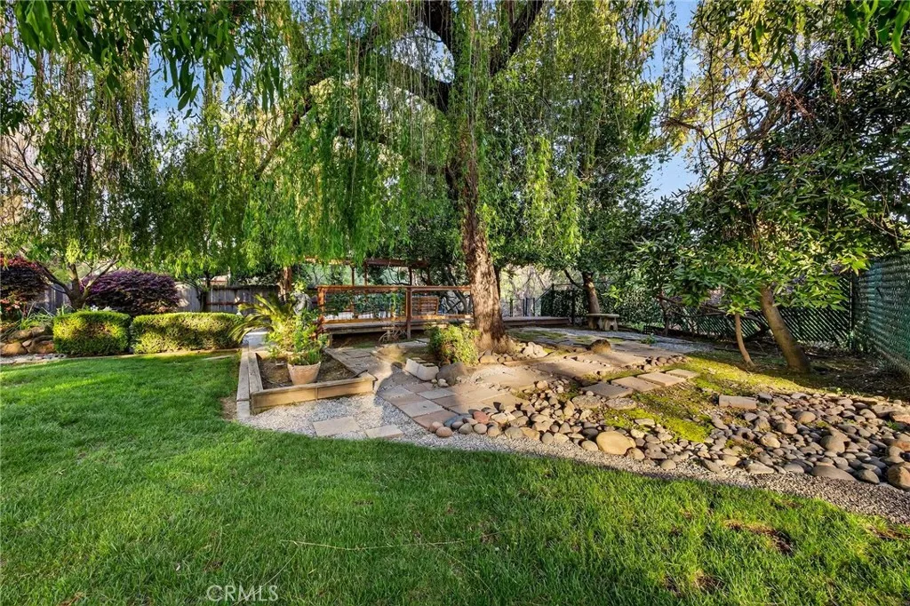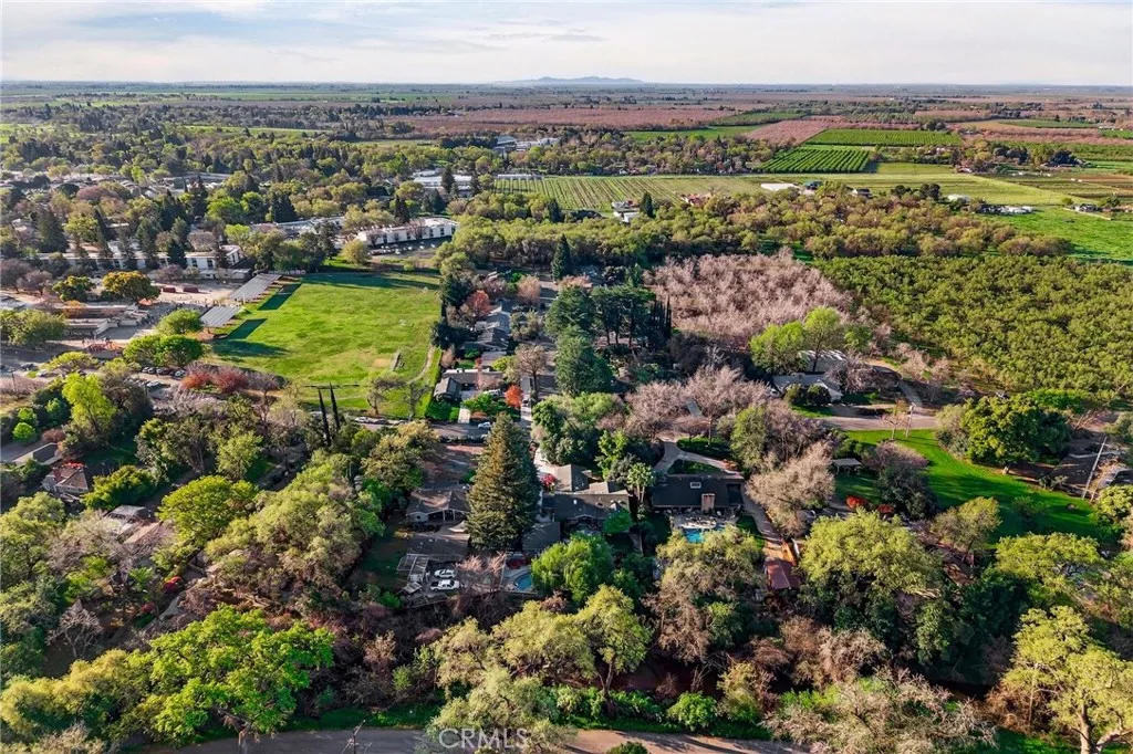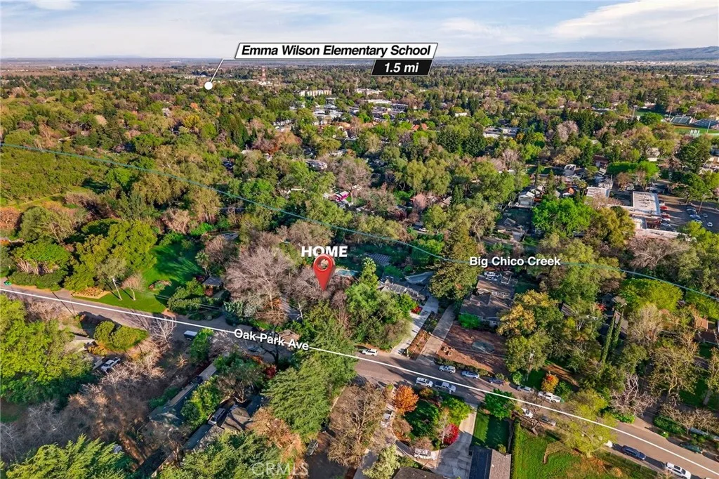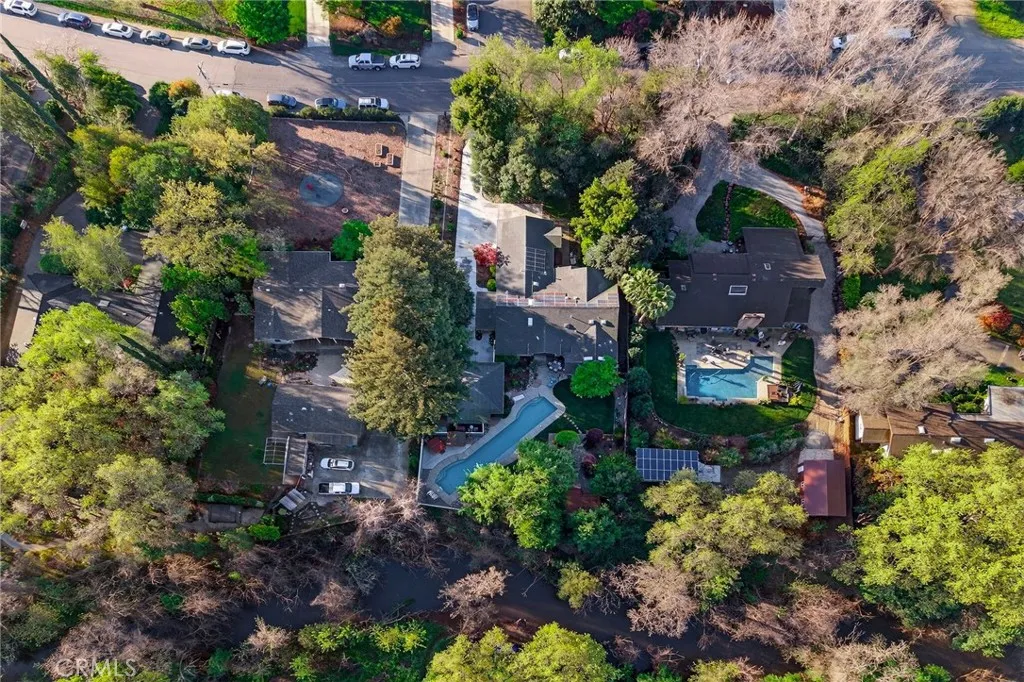 Large House, lot, 75 foot full-length lap POOL with swim-outs. This 3284 square foot custom house is TURN KEY and REMODELED with a leathered granite chef's kitchen .72 acre CREEK FRONT parcel in a premium established neighborhood. RV and BOAT PARKING, detached 2 car GARAGE with SHOP, shed and sauna. Private and fully landscaped yet walking distance from downtown restaurants, galleries, year-round Farmer's Market and Chico State University. House has 2 wings offering a perfect in-law floor plan. A MASSIVE PRIMARY SUITE on one-side has its own sitting area, walk-in closet with built-ins, several other closets, coffered ceilings, skylights and a lush secluded patio. It also has a sunny little office or perhaps Nursery/play room just off the primary suite. On the other side of the home you will find a second living room/family room, a lovely guestroom and another primary bedroom with ensuite bathroom. This primary has a door to the pool and sauna. The formal dining room has views of the beautiful lawn and fig trees. The spacious open great room has multiple sitting areas and a cozy gas fireplace, newer LVT floors and views of the pool, weeping willow and fruit trees in the big back yard. A beautiful redwood deck over-looks Big Chico Creek, firepit, multiple covered patios and porches. Freshly poured concrete driveway with several parking areas. Fresh exterior paint. Owned solar array is older but PG&E bills are still very reasonable. Whole house fan adds to efficiency. New 50 year roof in 2018. 16 skylights make this home glow with natural light. Rich loamy soils in the area ha