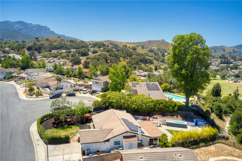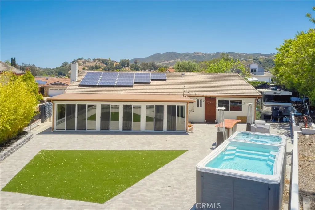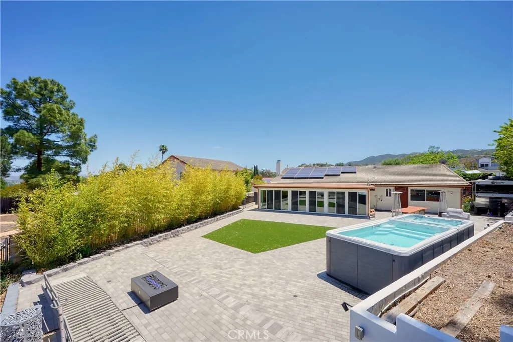 VIEWS VIEWS VIEWS!! Dont miss out on this private, beautifully renovated 4-bedroom, 2-bath home located on a quiet hilltop cul-de-sac overlooking the serene mountain scape in Newbury Park. Enjoy incredibly beautiful sunsets and entertain in the spacious remodeled backyard featuring an outdoor bar and grill made by a local blacksmith, stunning pavers with drainage system and turf for low maintenance. Get some exercise in your 21ft Tidal Fit swim spa, relax in the hot tub and then rinse off under the custom Ip outdoor shower. Let your guests stay overnight in the 21ft Terry Classic retro-style camper and enjoy the private succulent garden while sipping coffee on the deck by the fire pit. The house was fully renovated in 2017 and has had many upgrades throughout the years. Have peace of mind with a whole house water filtration system from Flagship, installed in 2024. Save on energy bills with the transferable solar panels. Kitchen appliances were recently updated with Z Line gas range, oven and microwave. Renovated primary ensuite in 2022 with floor to ceiling tiles, custom live edge wood vanity with a beautiful Moroccan vessel sink and LED mirrored medicine cabinet. Custom primary suite accent wall and built-in headboard with bed frame conveys. The entire house has a fresh coat of paint and is awaiting your personal touches. The 406 square foot sunroom has been fully enclosed with sliding doors all around, adding an extra living space and is currently being used as a gym. RV parking and side storage for all the extras.