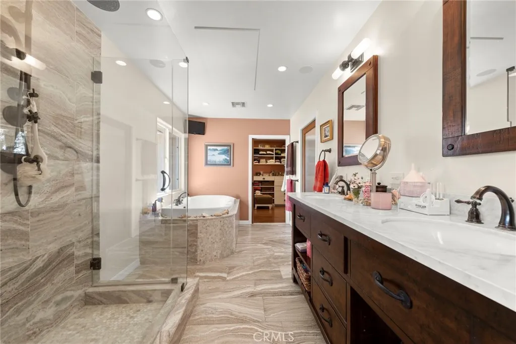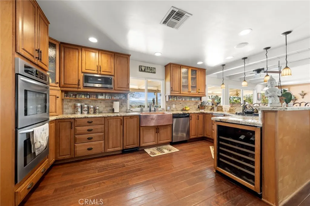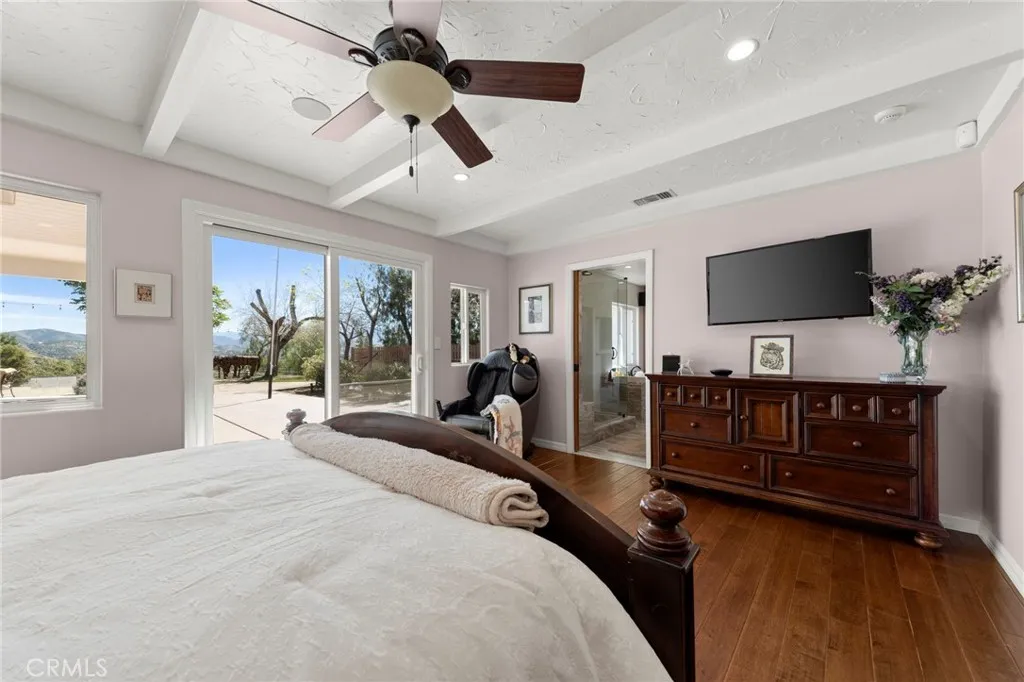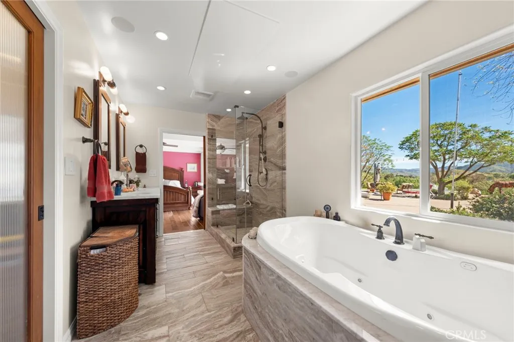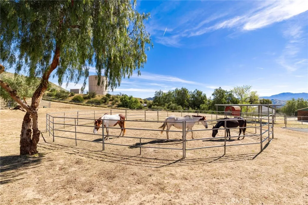 Experience the ultimate equestrian lifestyle on this exceptional 3-bedroom, 4-bath ranch estate located in the scenic community of Agua Dulce. Set on 3.7 fully fenced and gated acres, this property combines privacy, functionality, and breathtaking natural beauty. The main home features a large primary suite with a walk-in shower and a Aquatic Serenity Drift Bath, massive walk in closet, two additional bedrooms and three additional bathrooms, including one outside for pool guests with a walk in shower. Entertainers gourmet upgraded kitchen complete with a walk-in pantry, beverage fridge and modern appliancesperfect for family living and entertaining. Don't forget the hand hammered custom copper farm sink. Modern comforts include engineered wood flooring, Custom tile and stone work in primary bath, a lighting control system, network Wi-Fi coverage throughout the main house, garage/studio, and gate, a CCTV security system with six cameras, and a Sonos music system with built-in indoor and outdoor speakers for seamless audio throughout the property. Designed for horse enthusiasts, the ranch includes two (2) Castlebrook barns, each with three stalls, two tack rooms, large turnouts. Also included are a spacious riding arena, and a round pen, ideal for training and daily equestrian care. Ride your horse right off the property to many established trails nearby. Additional highlights include a large detached shop/garage with a 500 sq ft studio apartment above complete with mini split HVAC unit, perfect for guests, rental income, gym, meditation retreat or a private office. The prope