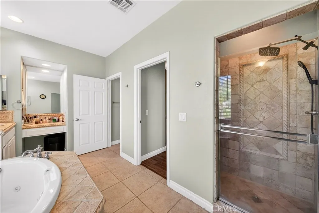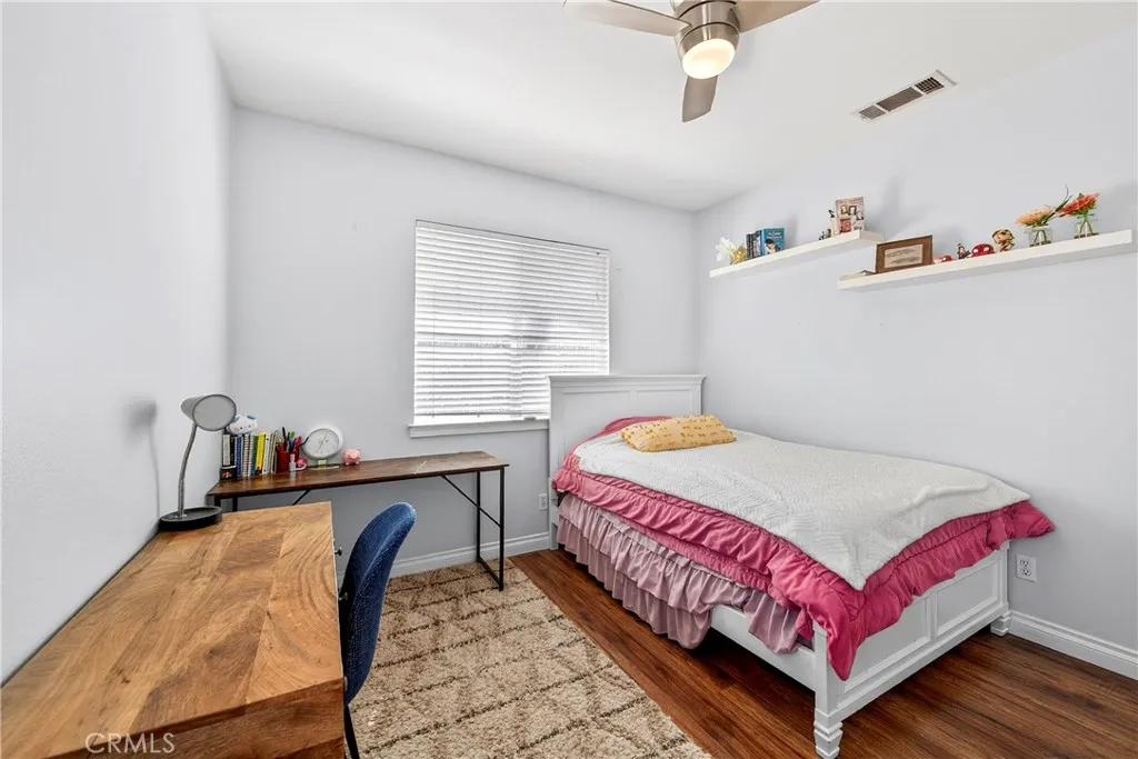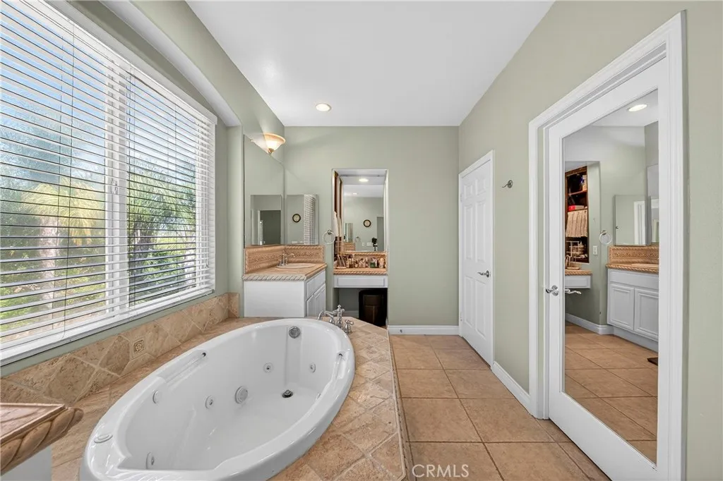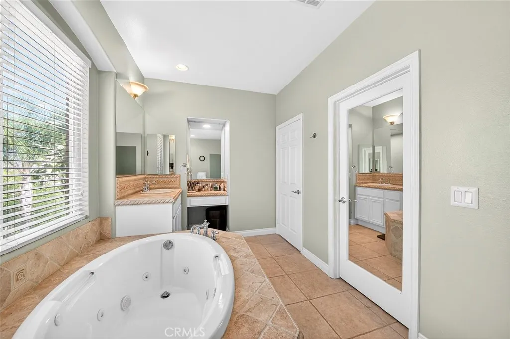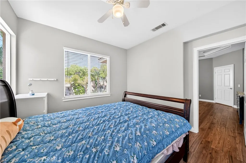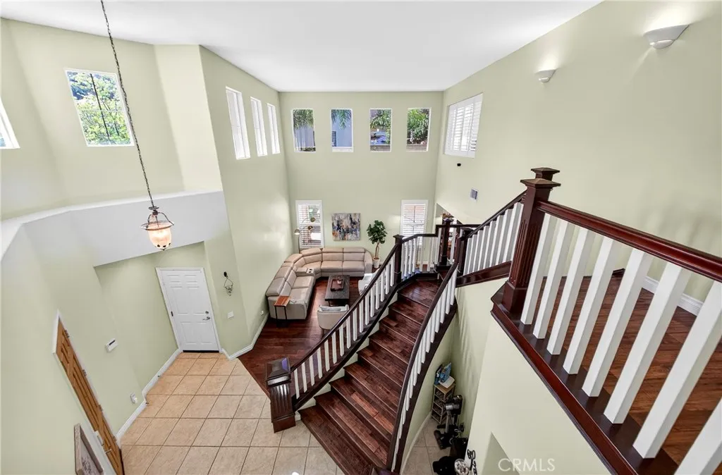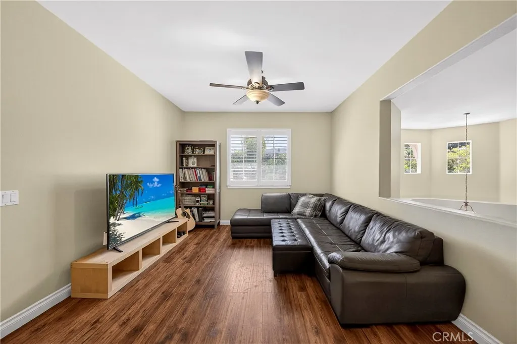 Resort-style Eagle Glen pool home with 3-car garage, flexible 6-bedroom potential, and a stunning rock pool & spa, perfect for luxury living and entertaining. From the moment you enter, you are greeted by soaring ceilings, a dramatic staircase, and an abundance of natural light that fills the spacious open floor plan. Designed for both everyday living and entertaining, the home features expansive living areas with beautiful wood flooring and seamless flow between the living room, dining area, family room, and kitchen. This beautiful home offers a bedroom and a full bathroom and an office on main level. The gourmet kitchen showcases rich wood cabinetry, granite countertops, stainless steel appliances, and a large center island with bar seating, opening to a warm and inviting family room with a fireplace. Spacious living room and formal dining room combo area. The luxurious primary suite offers a peaceful retreat with a spacious layout and a spa-inspired bathroom featuring dual vanities, a soaking tub, and a large walk-in shower, walk-in closet. Generously sized secondary bedrooms provide flexibility for family, guests, or a home office, with the potential for up to six bedrooms. Step outside into your private tropical oasis. The beautifully landscaped backyard features a resort-style rock pool surrounded by lush palm trees, natural stone accents, and multiple seating areas perfect for relaxing or entertaining. Additional highlights include a financed solar system for energy efficiency, NEWER HVAC SYSTEM (installed in 2024)and WATER HEATERS, and a desirable location with LOW