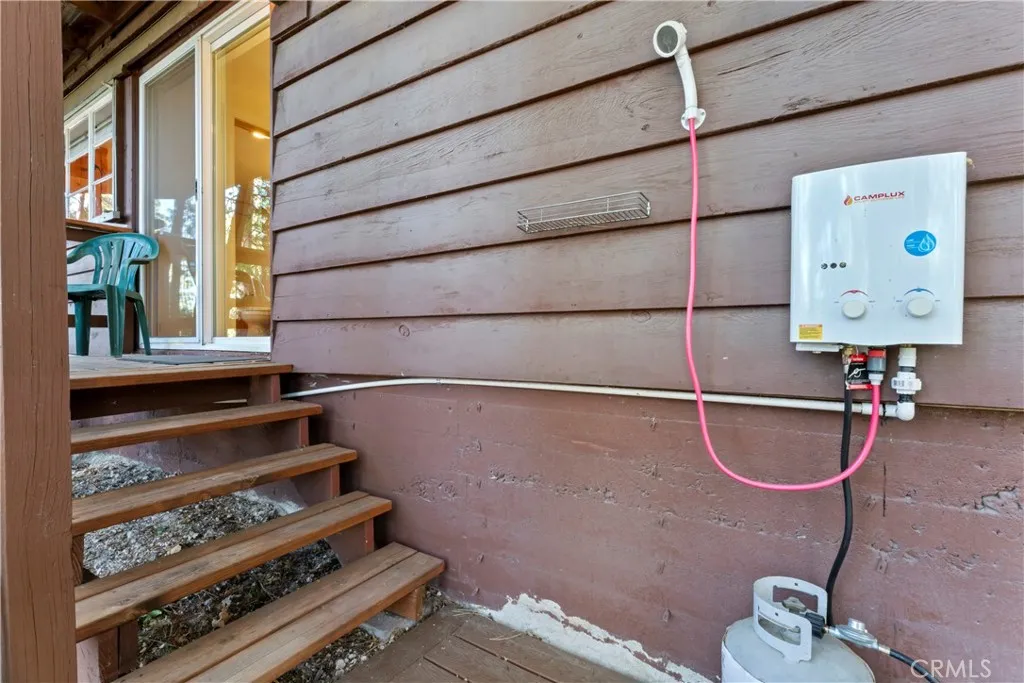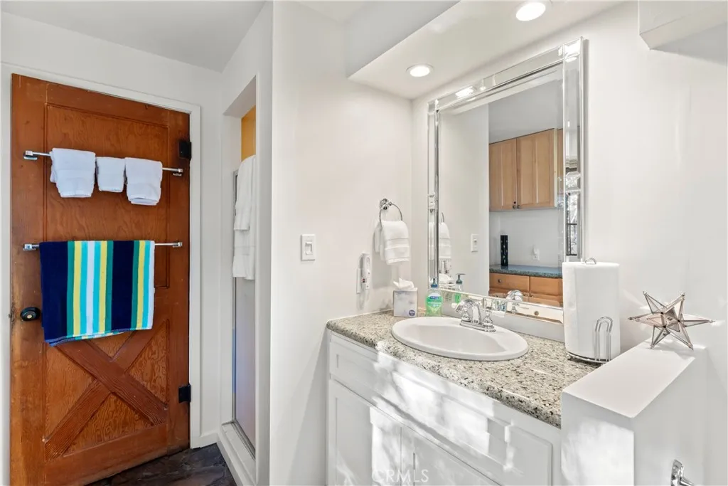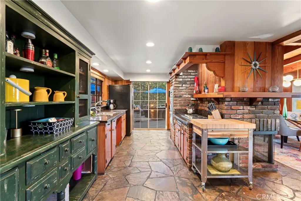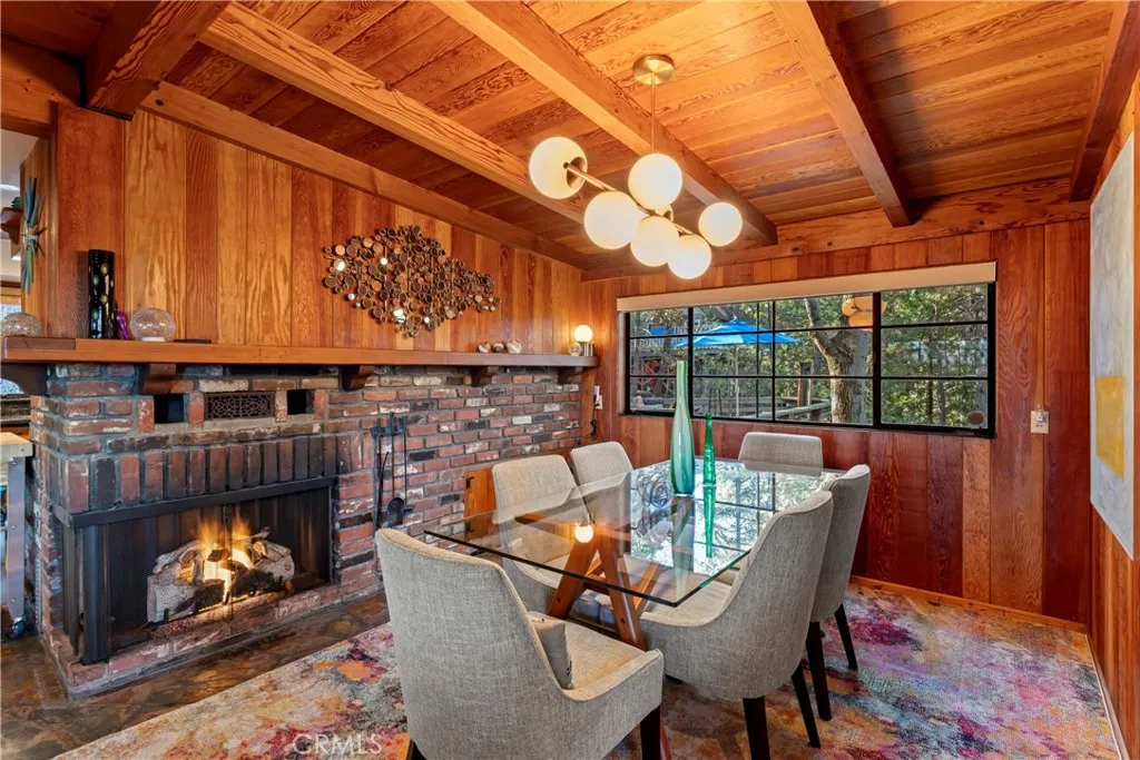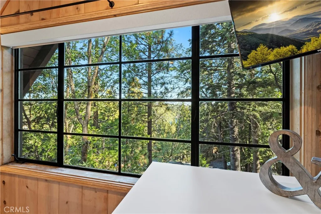 Turnkey Postcard Vintage Charmer located in Arrowhead Woods inclusive of Lake Rights with all the Bells and Whistles while simultaneously Boasting All of The Emotional Essence that the Lake Arrowhead Lifestyle has to offer including a Peek of the Lake! Main Mid-Level Features: Dutch Door Entry, Flagstone Flooring, Granite Kitchen Counters, Vintage Robert Shaw Wester Holly Stainless Steel Oven, Sportsman 4x4 Free Standing Butcher Block, 8 Foot Wood Beamed Ceilings, 3/4 Bath and Laundry Combo, Open Kitchen to Dining Area with Fireplace to Living Room with multiple access to Overflow Outdoor Entertaining Patios. Upper-Level Features: Expansive Open Clear Fir Staircase from Living Room to 3 Comfortable Cozy Bedrooms and Full Bathroom. Lowest Level Features: Spacious Primary Bedroom Ensuite with Brick Fireplace, Soaking Tub, with Access to fenced back yard area astro-turfed for the Pets. Other Features & Upgrades Include: Pex-Plumbing Conversion, Classic Steel Encasement Windows, Whole House Auto Natural Gas Generac Generator, Full Air Conditioning, Whole House Fan, Outdoor Shower, Propane Fire Pit, Monitored Security System, Multiple Cameras, Rear Storage Shed, Wood Enclosure Receptacle for Trash, Partial Sprinklers and Exterior Landscape Lighting.
