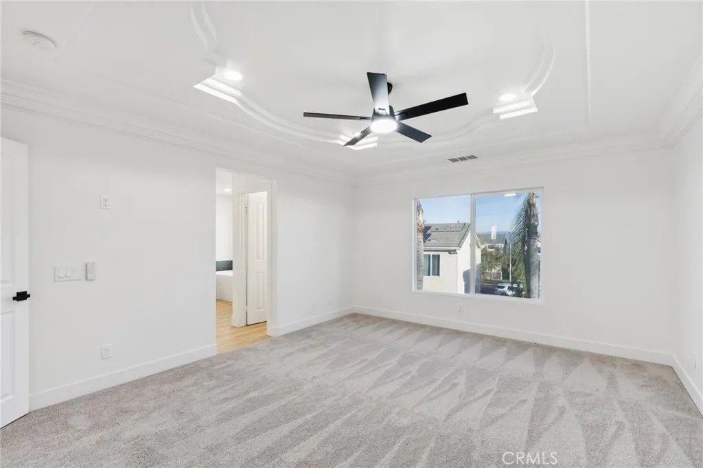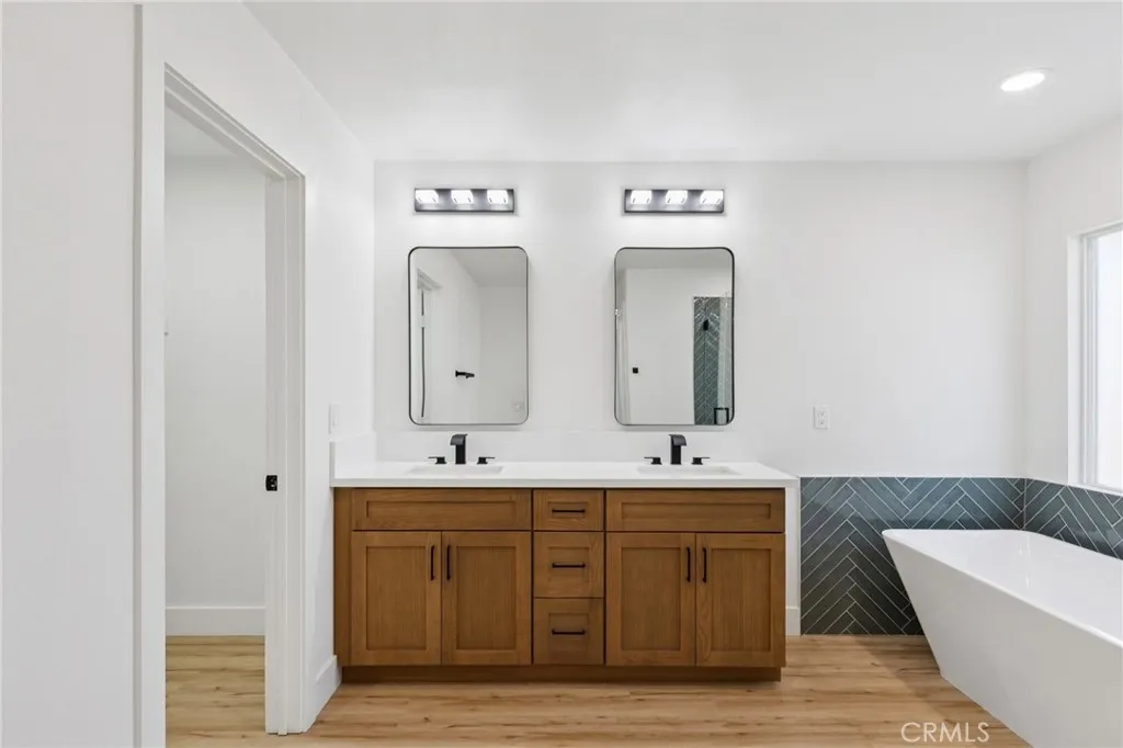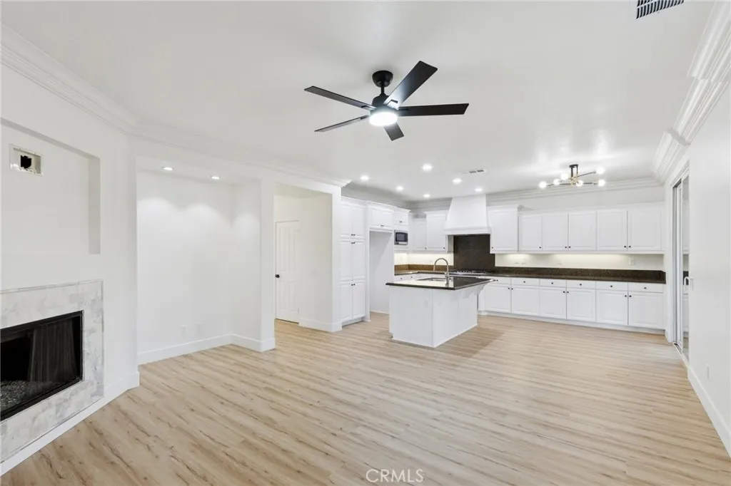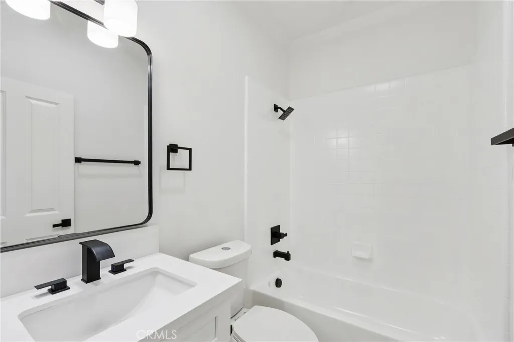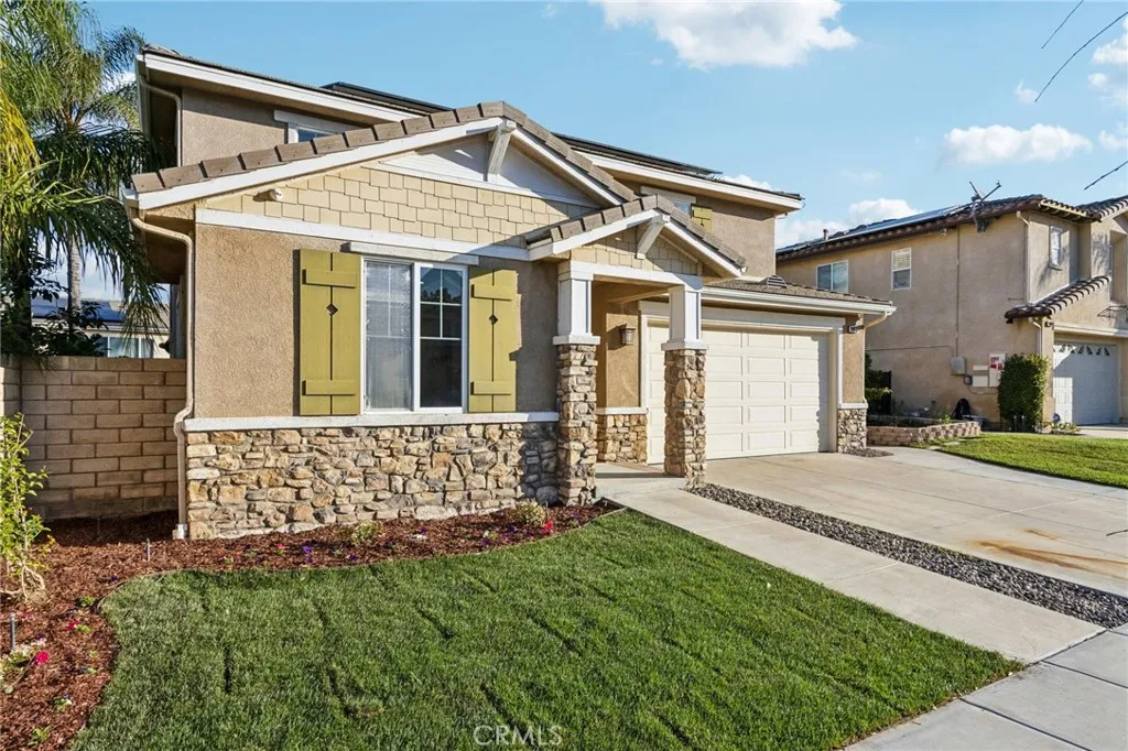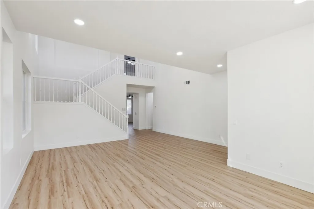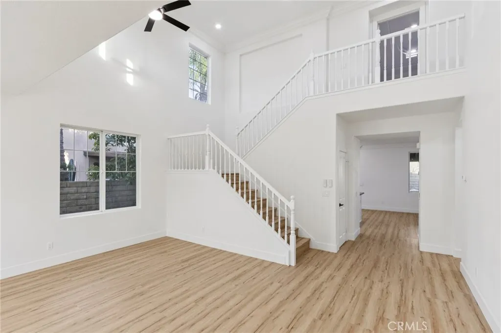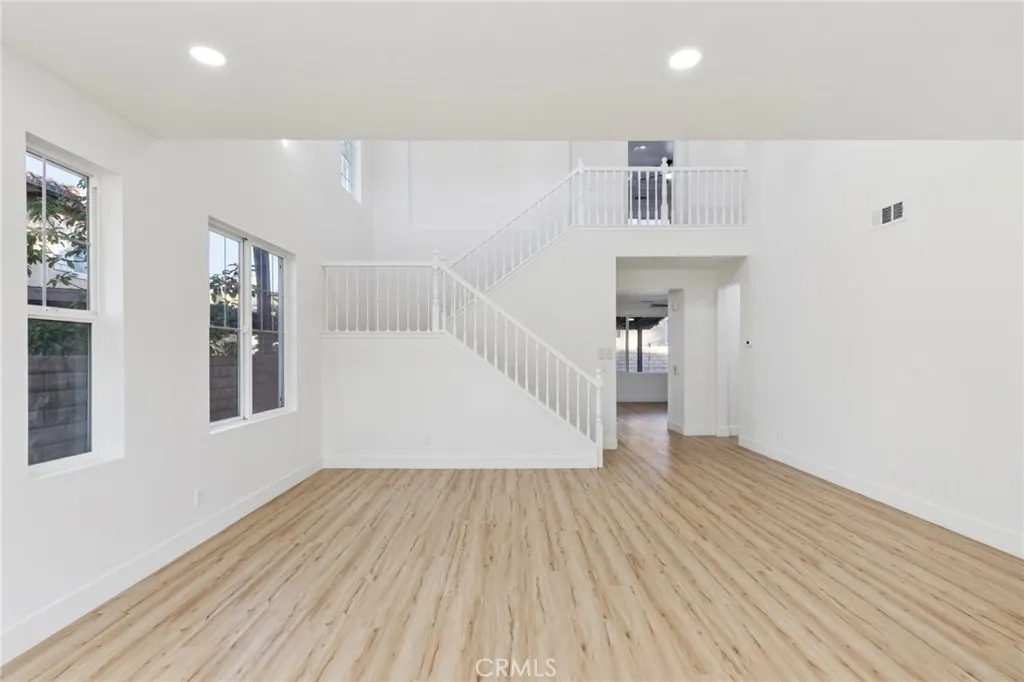 PRICE IMPROVEMENT!!!! Turnkey renovated two-story home located in the desirable community of Newhall. This spacious 4-bedroom, 3-bathroom home offers a functional floor plan with one bedroom and full bathroom conveniently located downstairs, perfect for guests or multi-generational living. Upon entry, youre welcomed by a bright and open family room featuring vaulted ceilings that create an airy and inviting space. The family room flows seamlessly into the kitchen and living area, making it ideal for everyday living and entertaining. The kitchen features a center island and easy access to the main living spaces. Recent upgrades throughout the home include new laminate flooring, new carpet, and a brand new HVAC system for year-round comfort. Upstairs, the primary suite offers a beautifully renovated bathroom complete with a new soaking tub, separate standing shower with updated fixtures, and a modern vanity. The backyard is designed for relaxation and entertaining, featuring a large covered patio with a fireplace and a low-maintenance yard. Located in the heart of Santa Clarita, this move-in ready home combines modern updates with comfortable living and is ready for its next owner to enjoy.