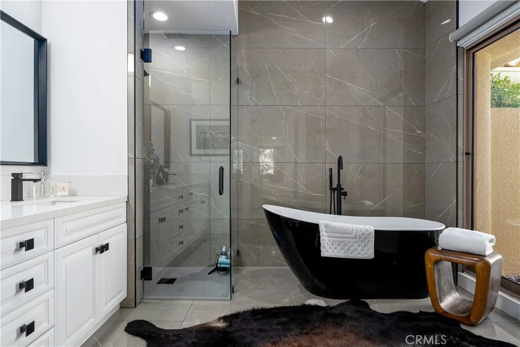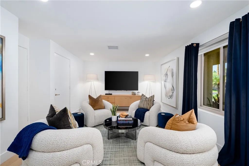 Discover unparalleled sophistication in this stunningly reimagined former model home, nestled within the prestigious Rancho Mirage Country Club. Spanning 3,250 sq. ft., this 3-bedroom, 3.5-bath masterpiece seamlessly blends timeless elegance with modern luxury. Showcasing rare red cedar tongue-and-groove vaulted ceilings in the entry, living room, stairwell, and primary suite, the home exudes warmth, character, and architectural charm. Every detail of this home has been thoughtfully designed and meticulously updated to create an inviting yet stylish retreat. The kitchen, a true chef's dream, boasts contemporary finishes, sleek cabinetry, an extended center island, and modern appliances. Perfect for entertaining or casual dining, this space effortlessly complements the open-concept floor plan. Wide plank white oak flooring graces the main living areas, while solid core oversized pocket doors connect each space seamlessly, flooding the home with natural light. No element has been overlooked in the home's extraordinary transformation. The bathrooms have been fully updated with modern fixtures and finishes, reflecting a refined design aesthetic. Fresh interior paint highlights a neutral, sophisticated color palette, while updated electrical systems, including can lighting, elevate functionality and ambiance throughout. Every room has been curated to balance style with comfort, making this home truly turnkey. Step outside and experience the ultimate in desert living. The backyard is a private oasis featuring a newly replastered pool and spa with updated tile, perfect for relaxat